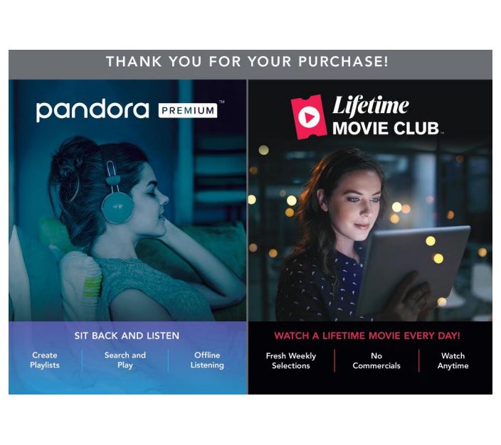 • Includes TV mount, hanging hardware, and voucher