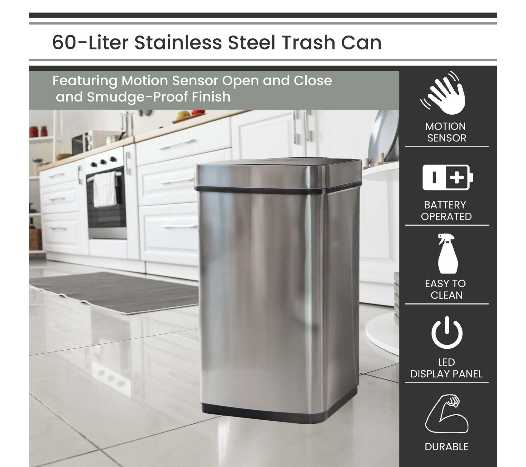 Hanover 60-L / 16-Gal Stainless Steel Trash Canw/ Sensor Lid