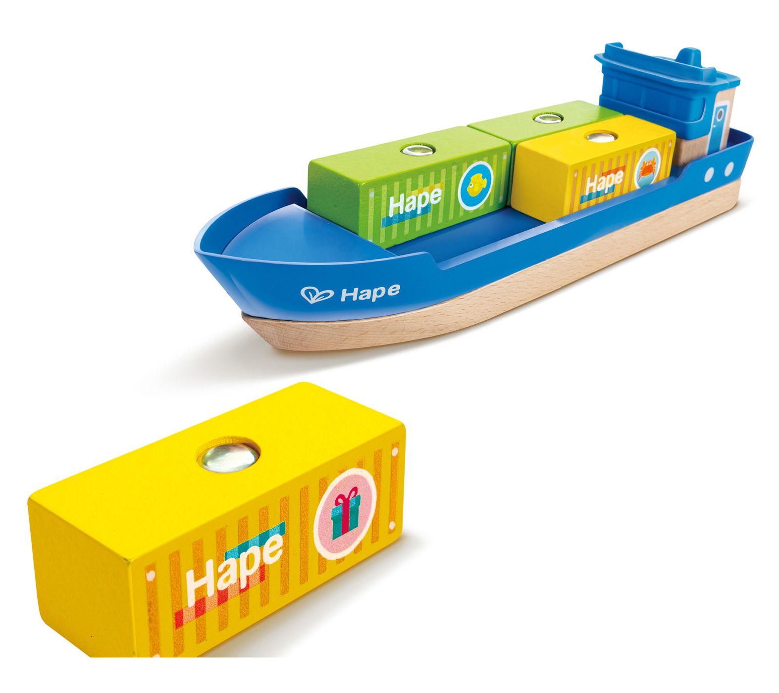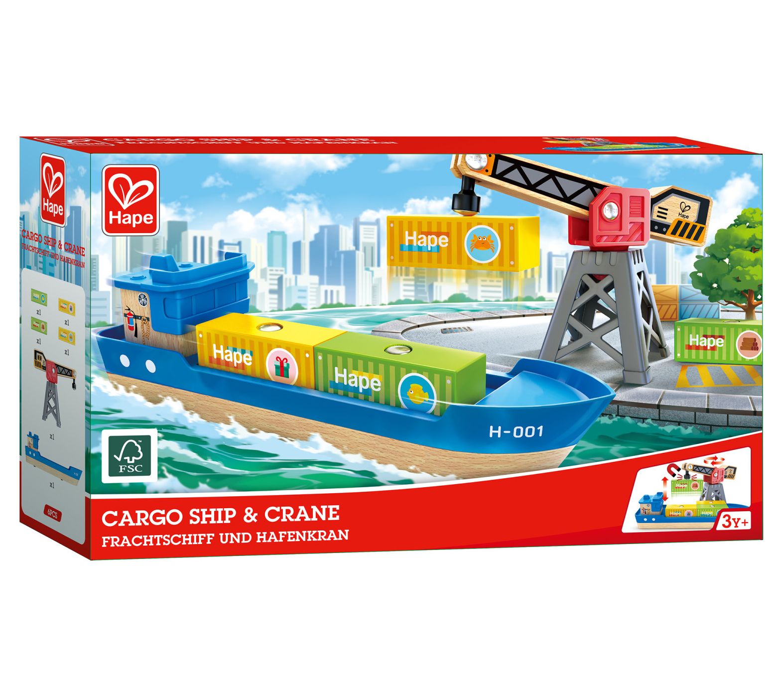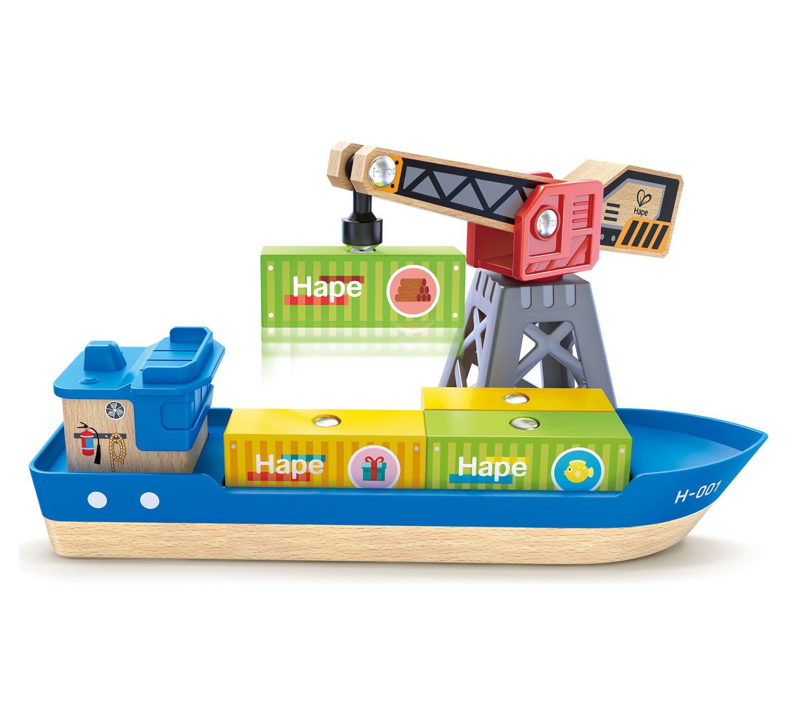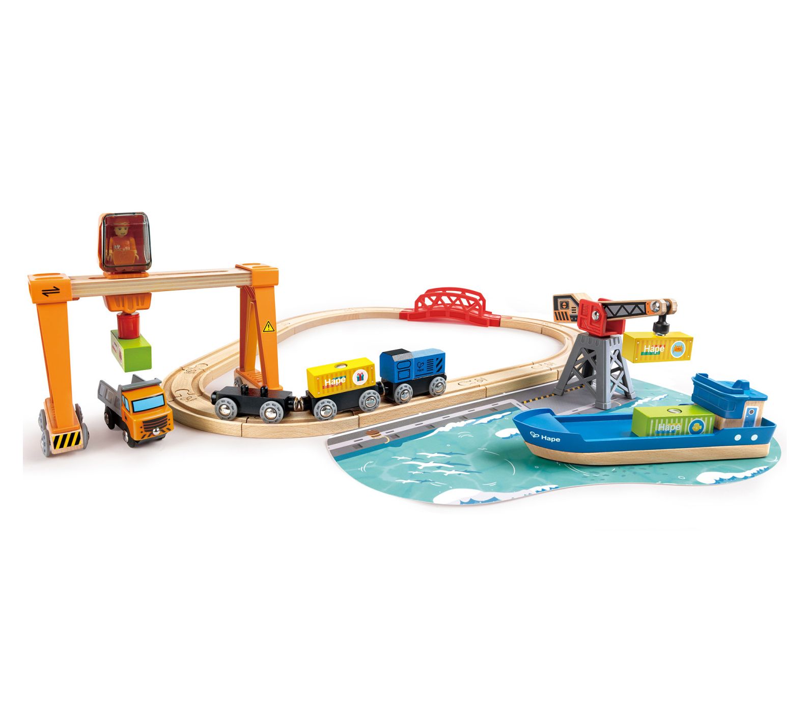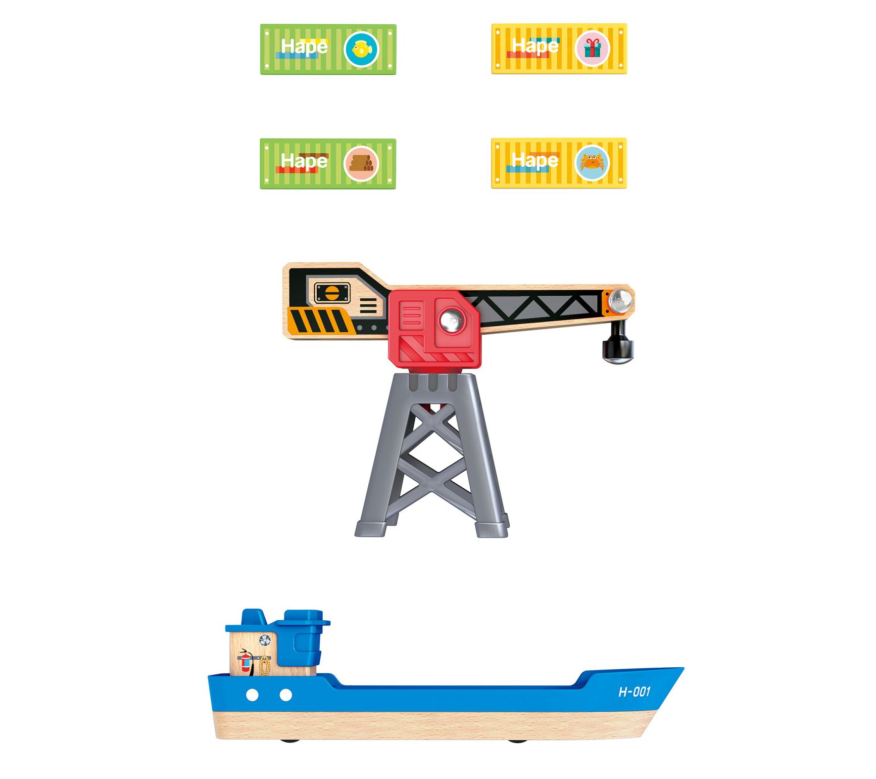 Hape: Cargo Ship & Crane - 6 pc Train Playset