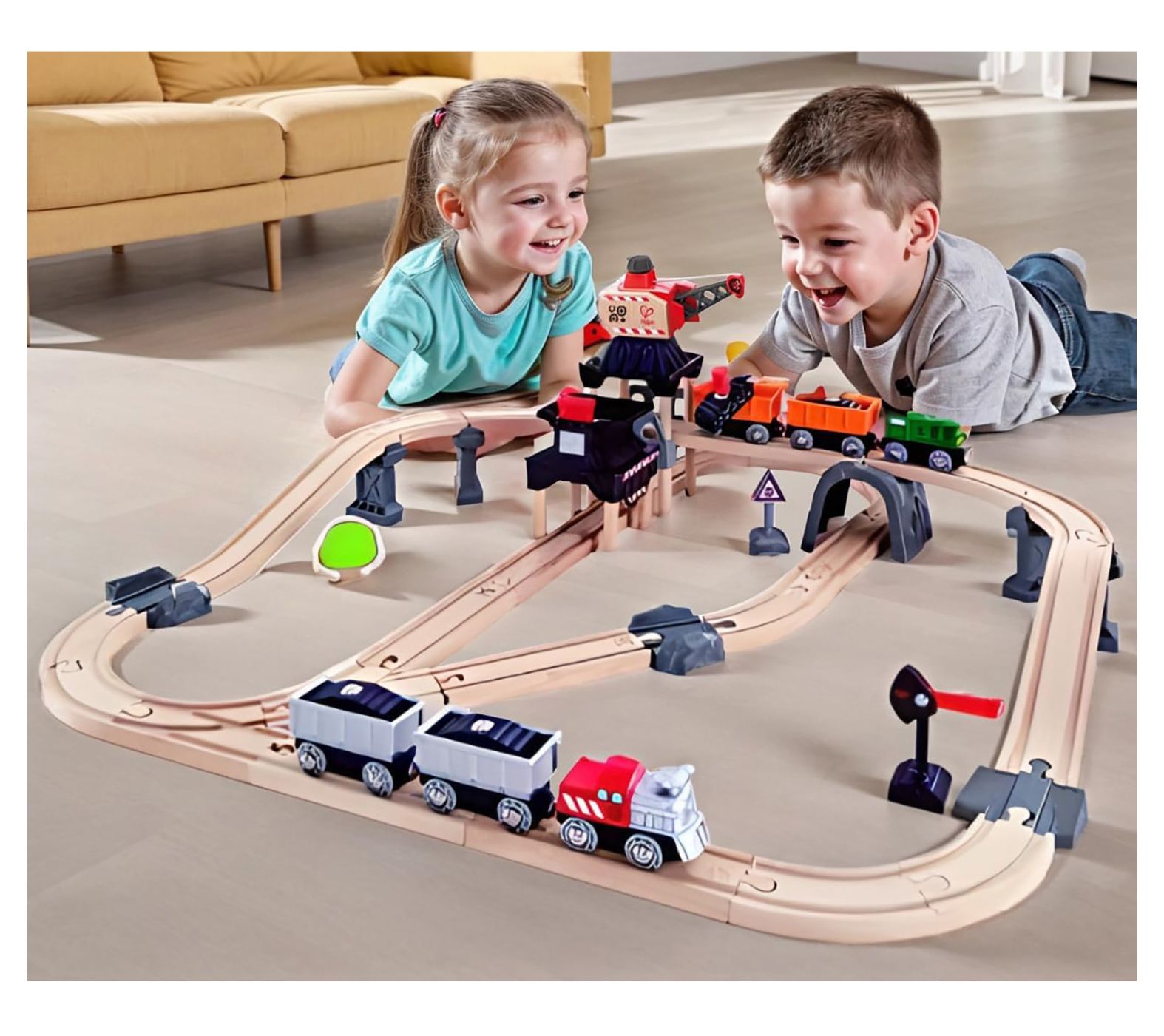 • Includes six trains, two trees, one crane, two traffic signs, one railway crossing arm, tunnel, piers, and realistic track joints