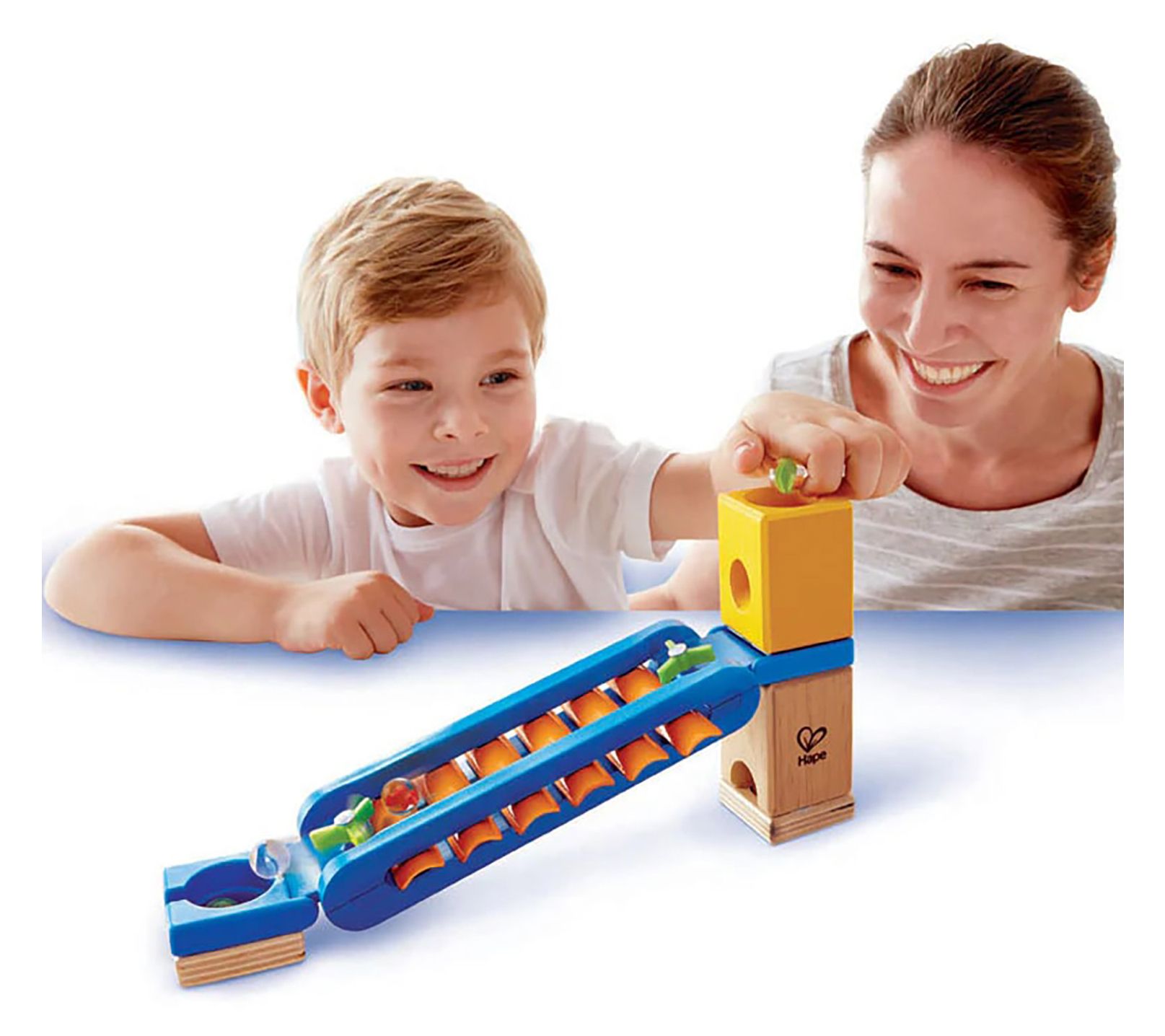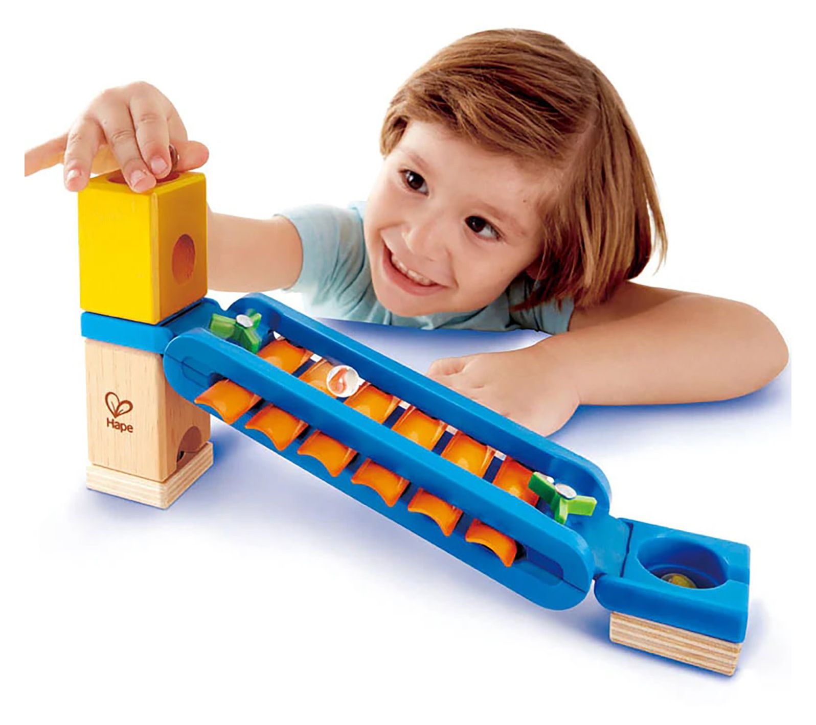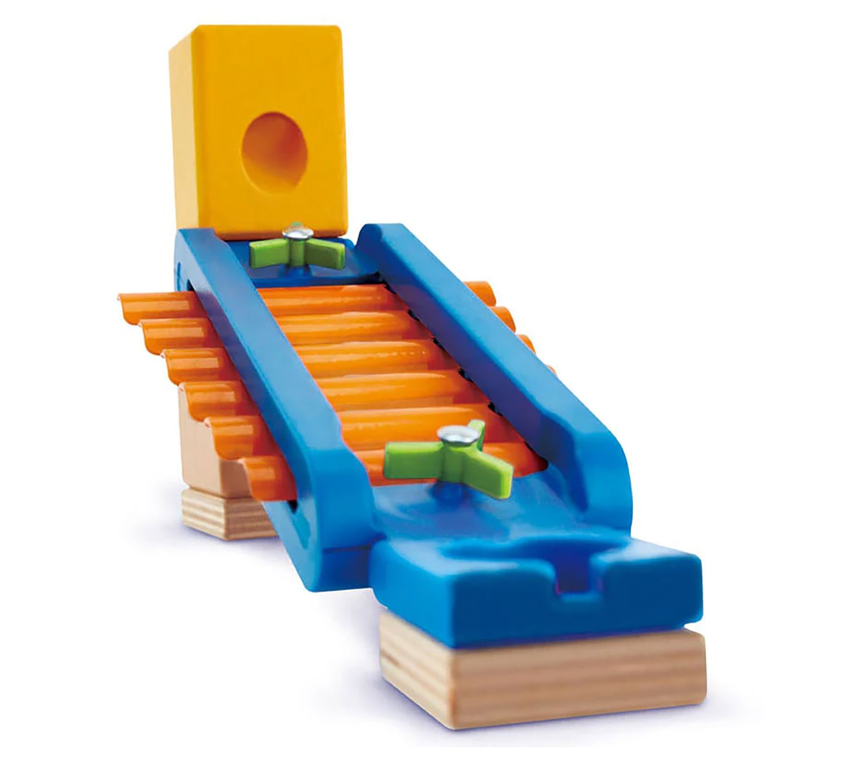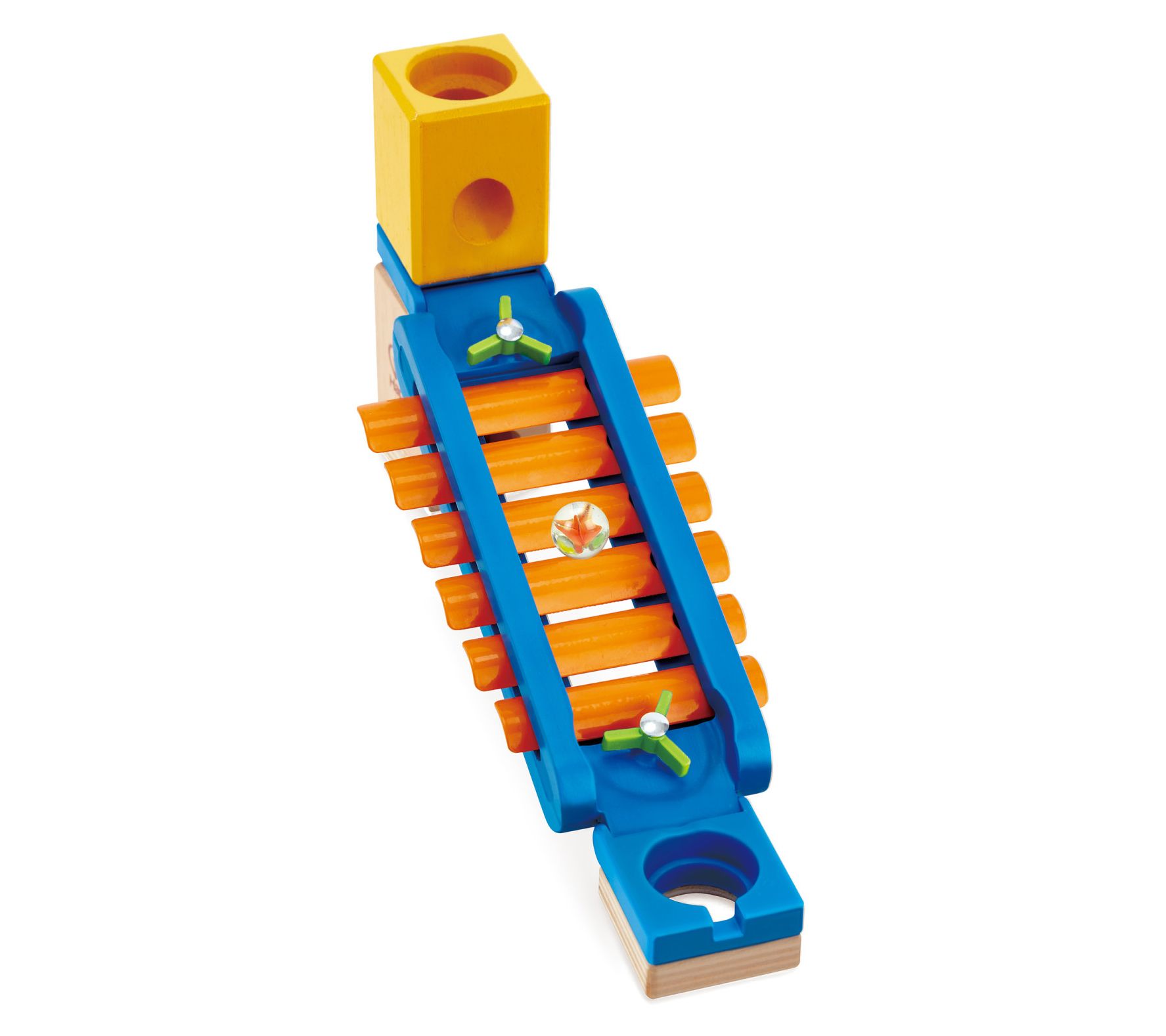 Bring the excitement of sound to any playroom with this Quadrilla Sonic Playground accessory set. Kids can build unique marble runs, add the xylophone rail for melodic fun, and watch as each marble creates a symphony of notes along the way. It's a delightful way to combine music, creativity, and hands-on engineering. From Hape.