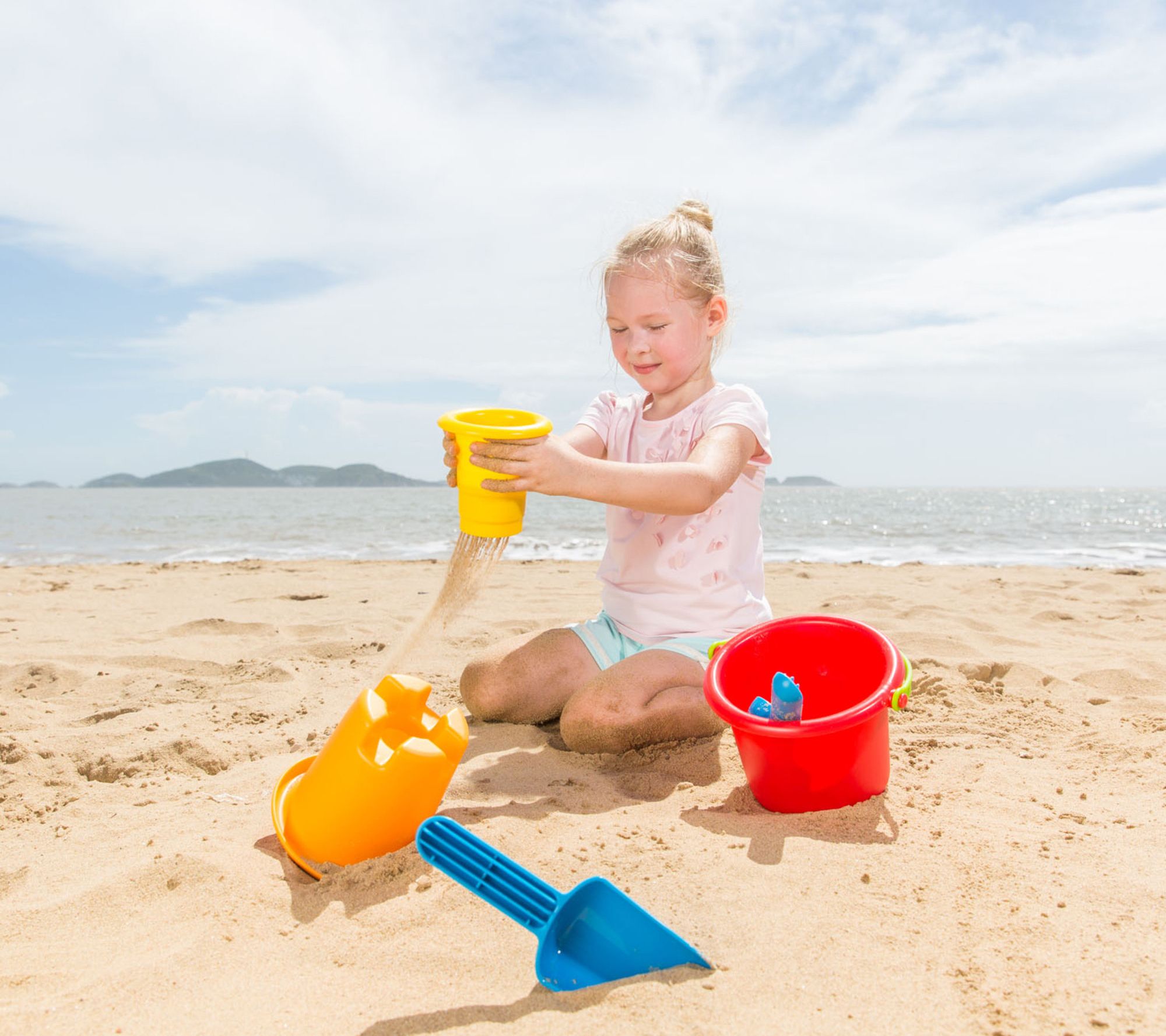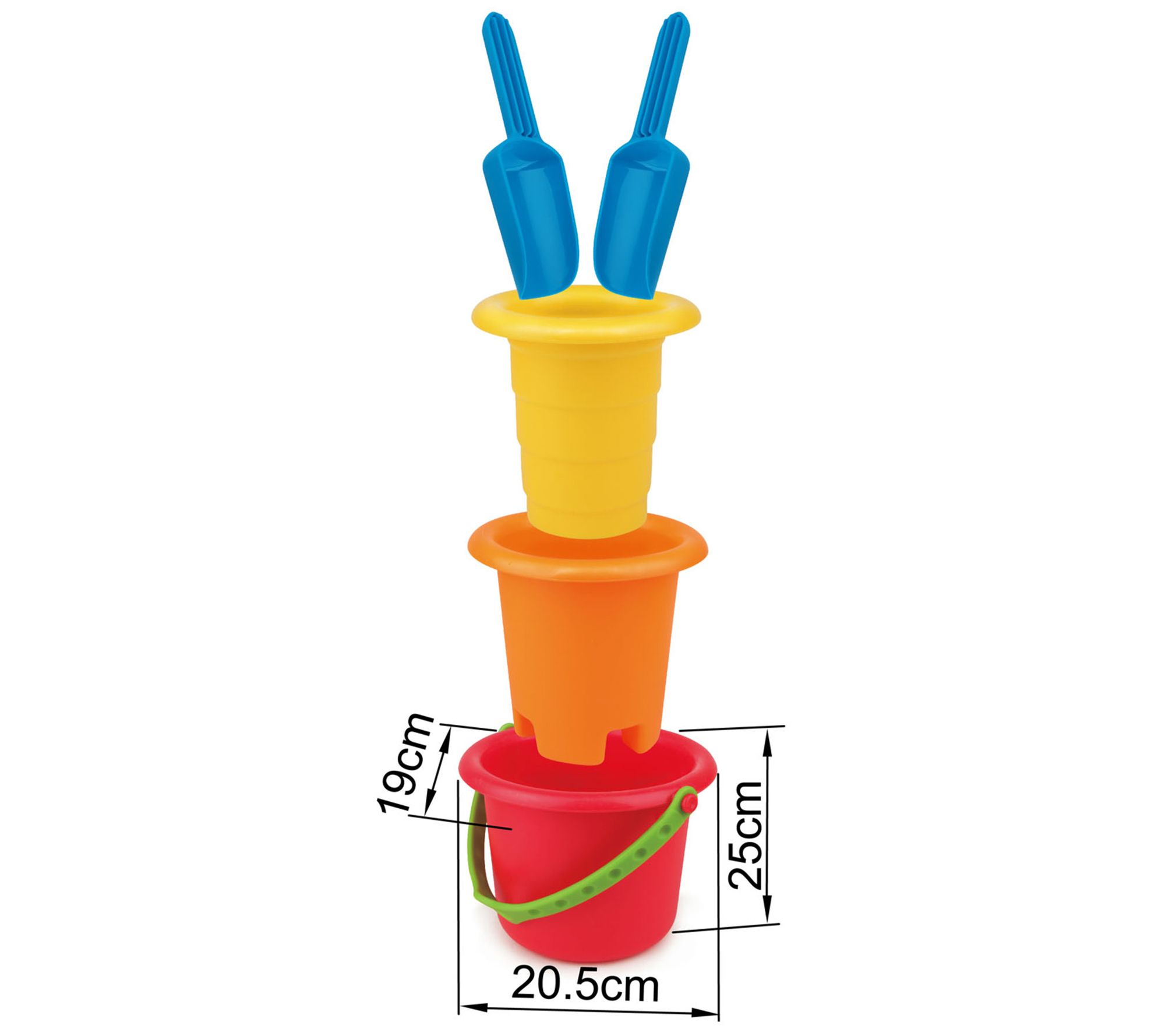 Bring the beach home with this durable 5-in-1 set, perfect for little ones eager to dig, build, and explore in the sand and water. This comprehensive set includes three buckets and two shovels, designed for easy storage and portability, ensuring your child's playtime is both fun and convenient. With everything needed for hours of imaginative fun, this set makes outdoor play a breeze. From Hape.