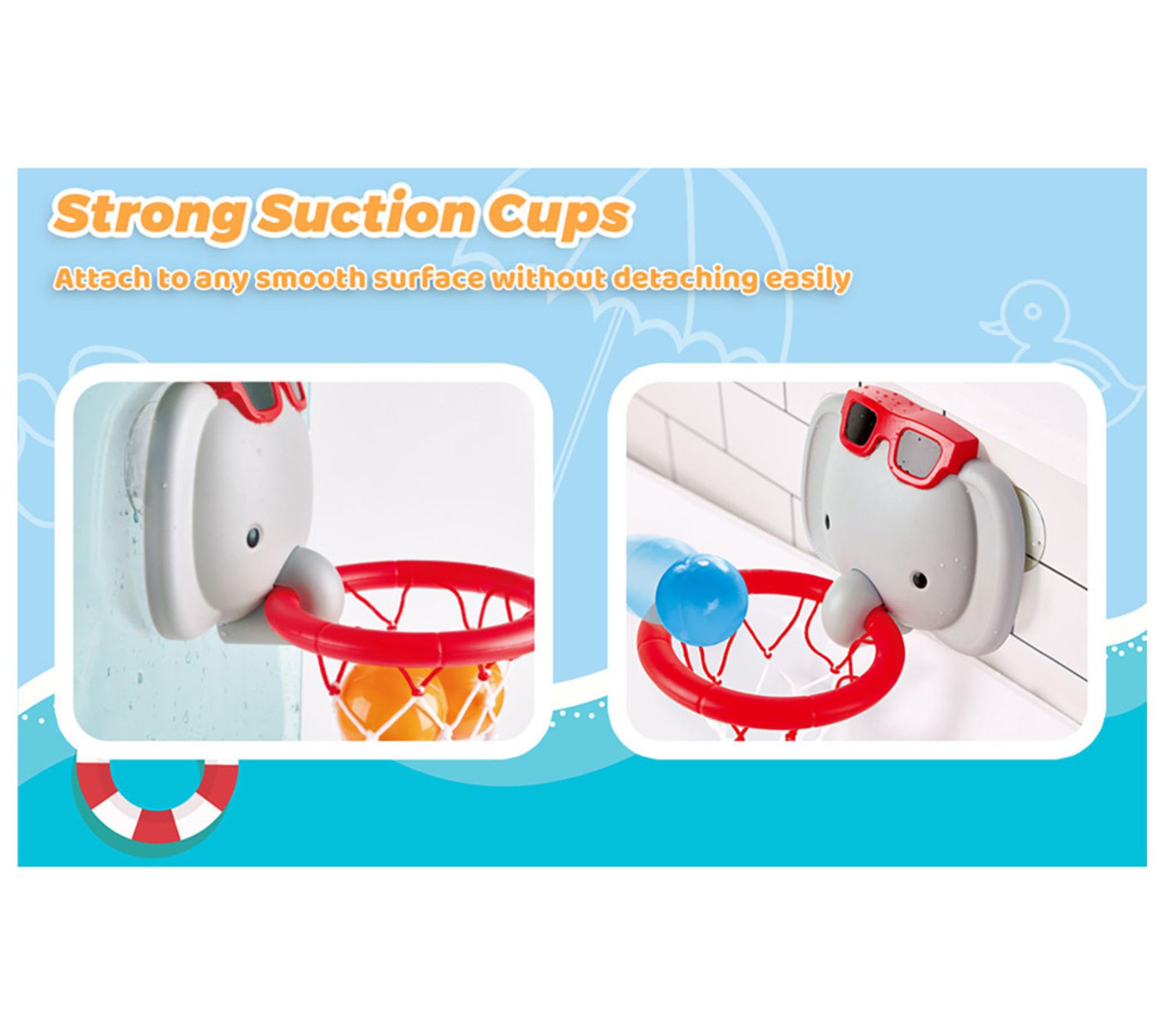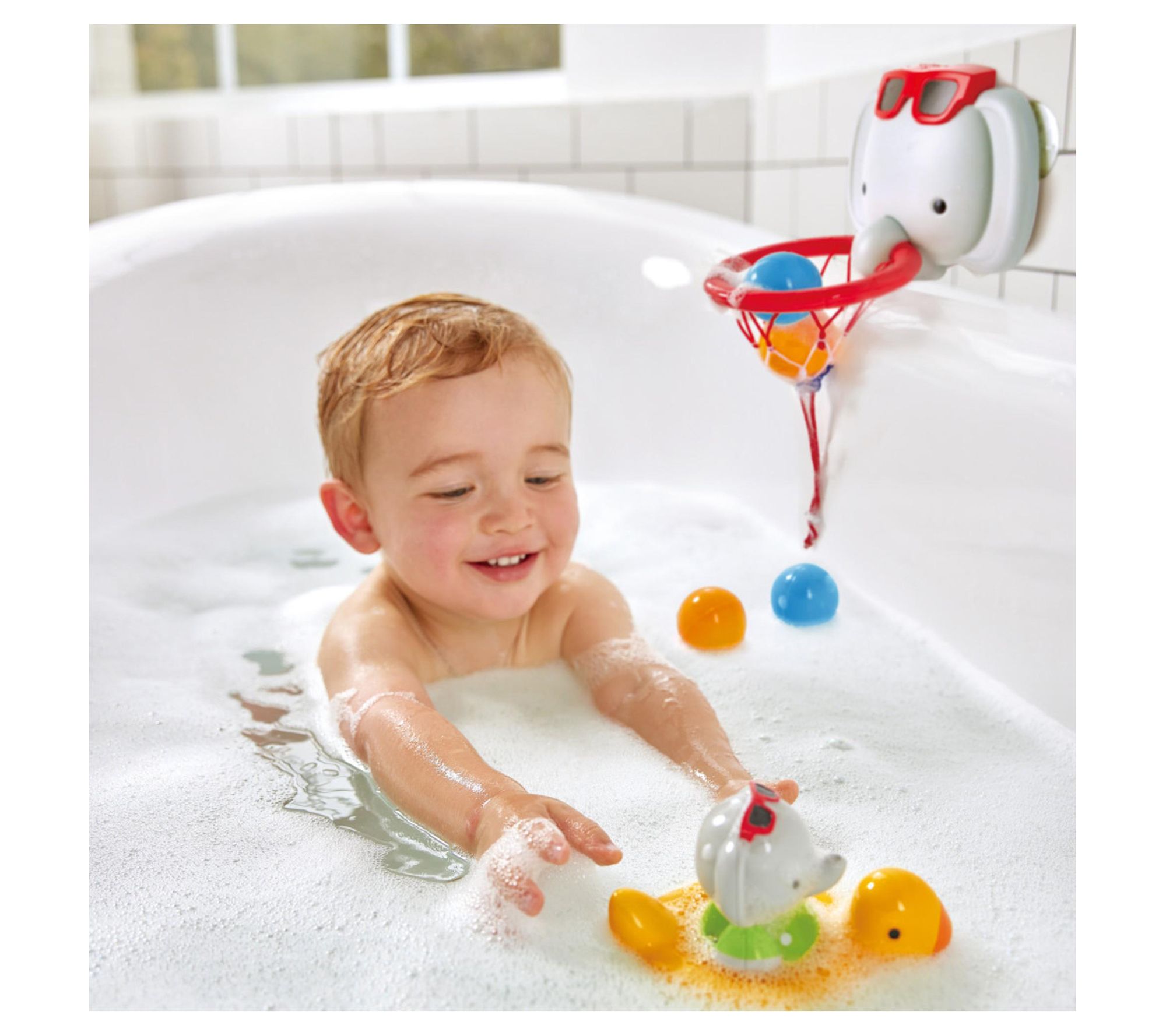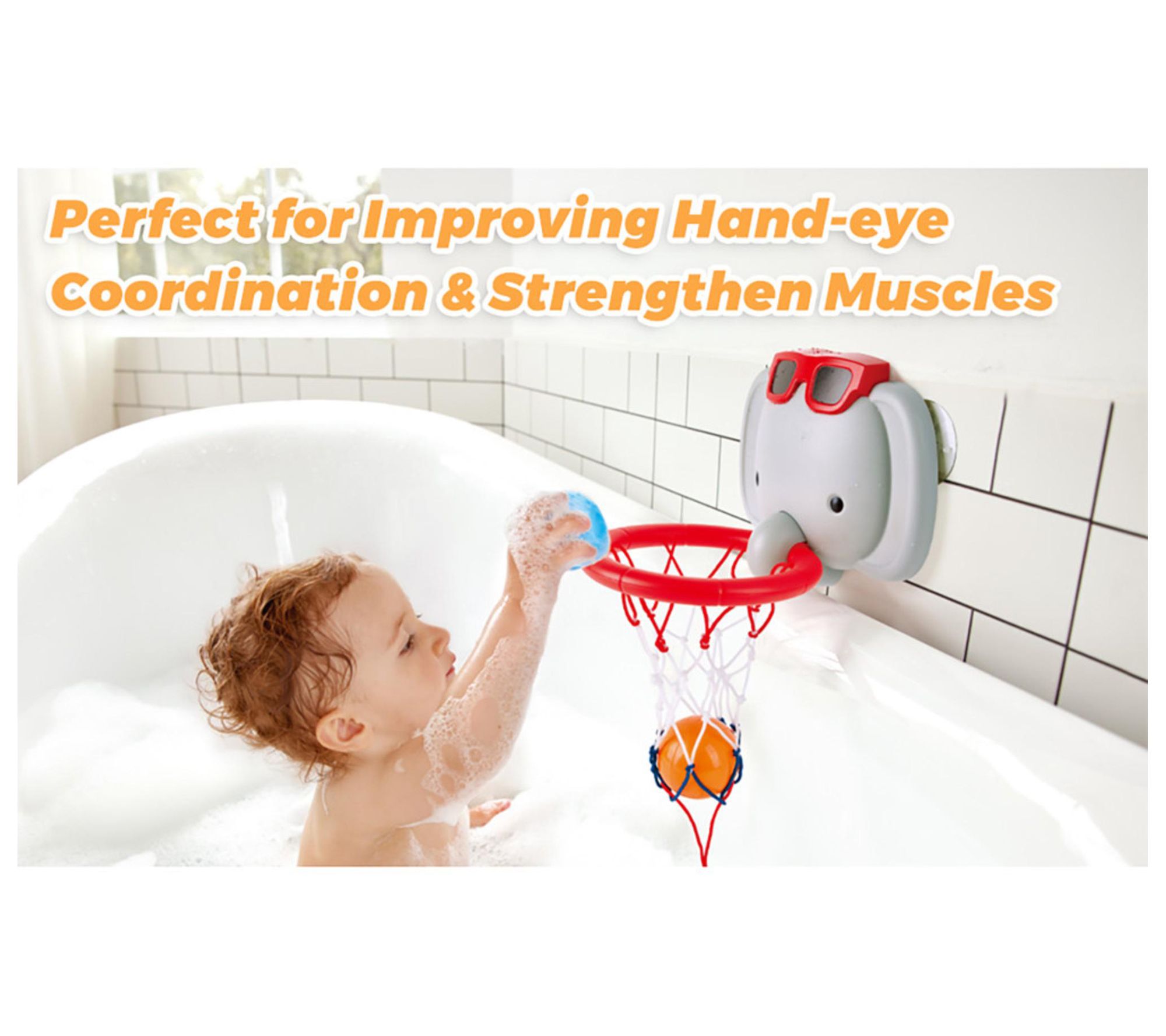Transform bathtime into an exciting sports adventure with the Elephant Pal bathtub game. This adorable companion turns your bathroom into a basketball court where your little one can shoot hoops and score big. From Hape.