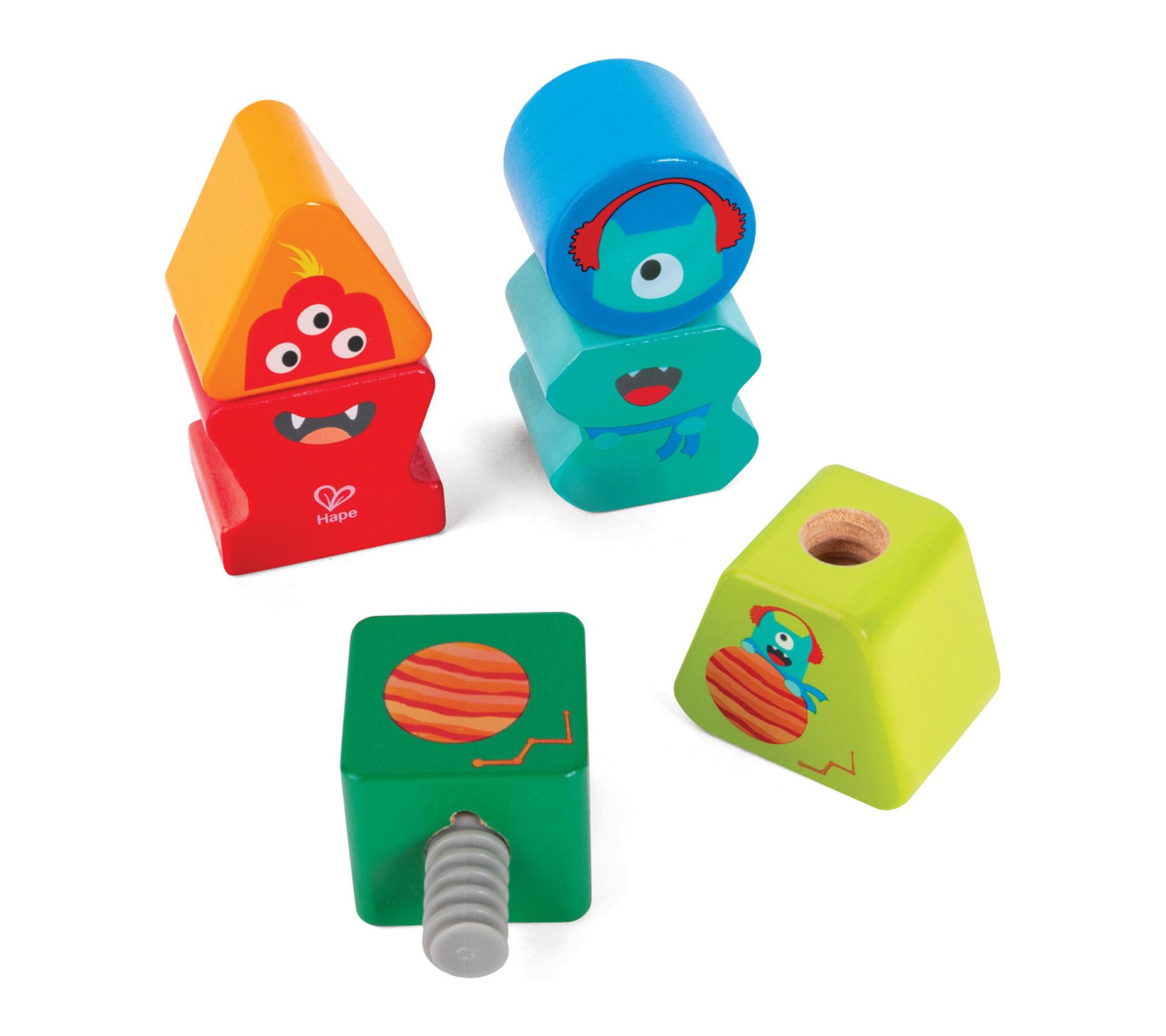 Bring home a set of building block buddies designed to excite young imaginations -- these wooden blocks invite little hands to mix and match colorful heads for creative play. Watch as children explore combinations, invent fun characters, and develop essential skills with every delightful swap. From Hape.