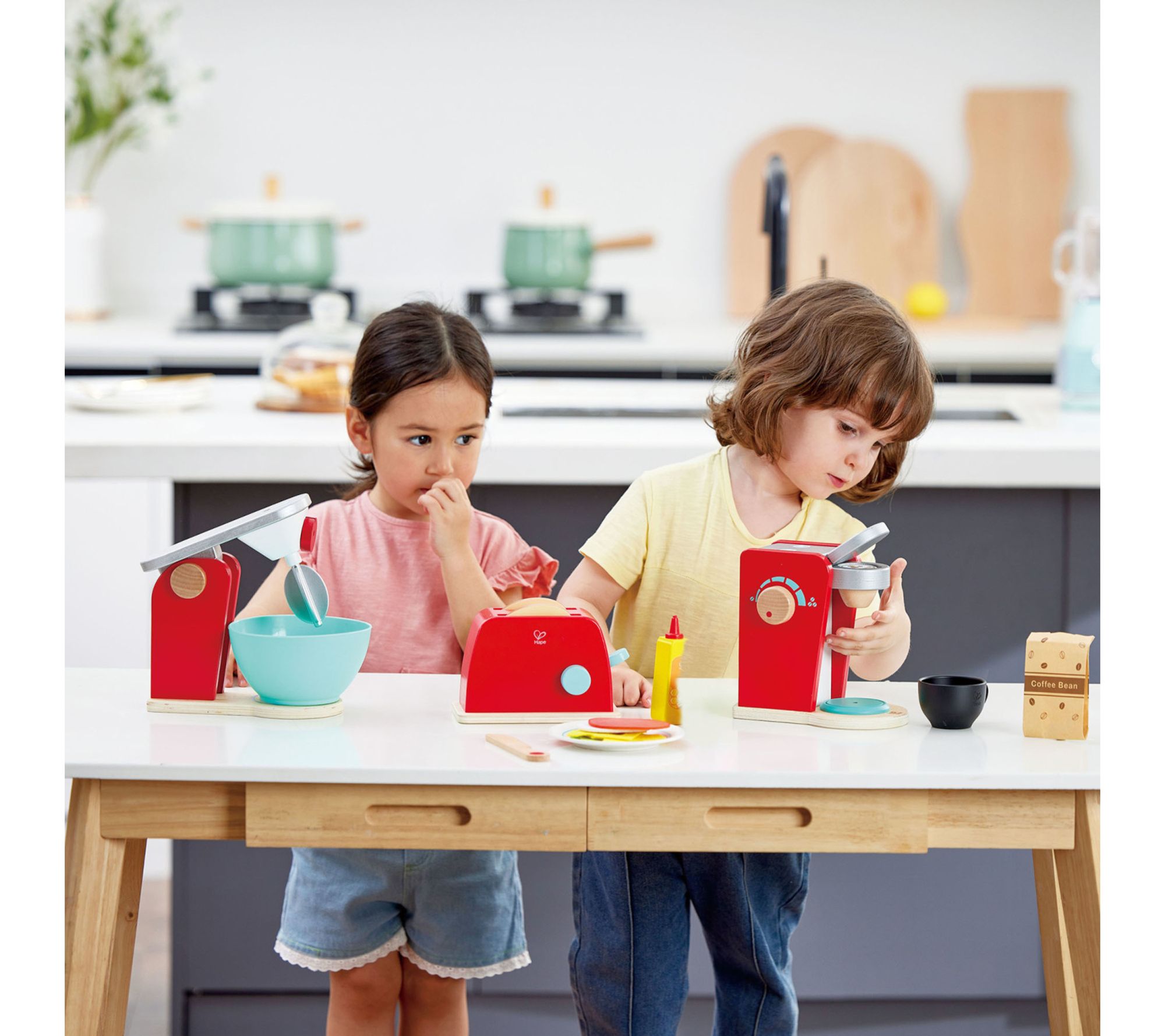 Start the day off right with the Hape cafe coffee machine toy set! This interactive toy features realistic sound effects to mimic the experience of a real coffee machine, making it a delightful addition to any child's playtime. Encourage imaginative play and role-playing as kids create their own cafe scenarios. From Hape.