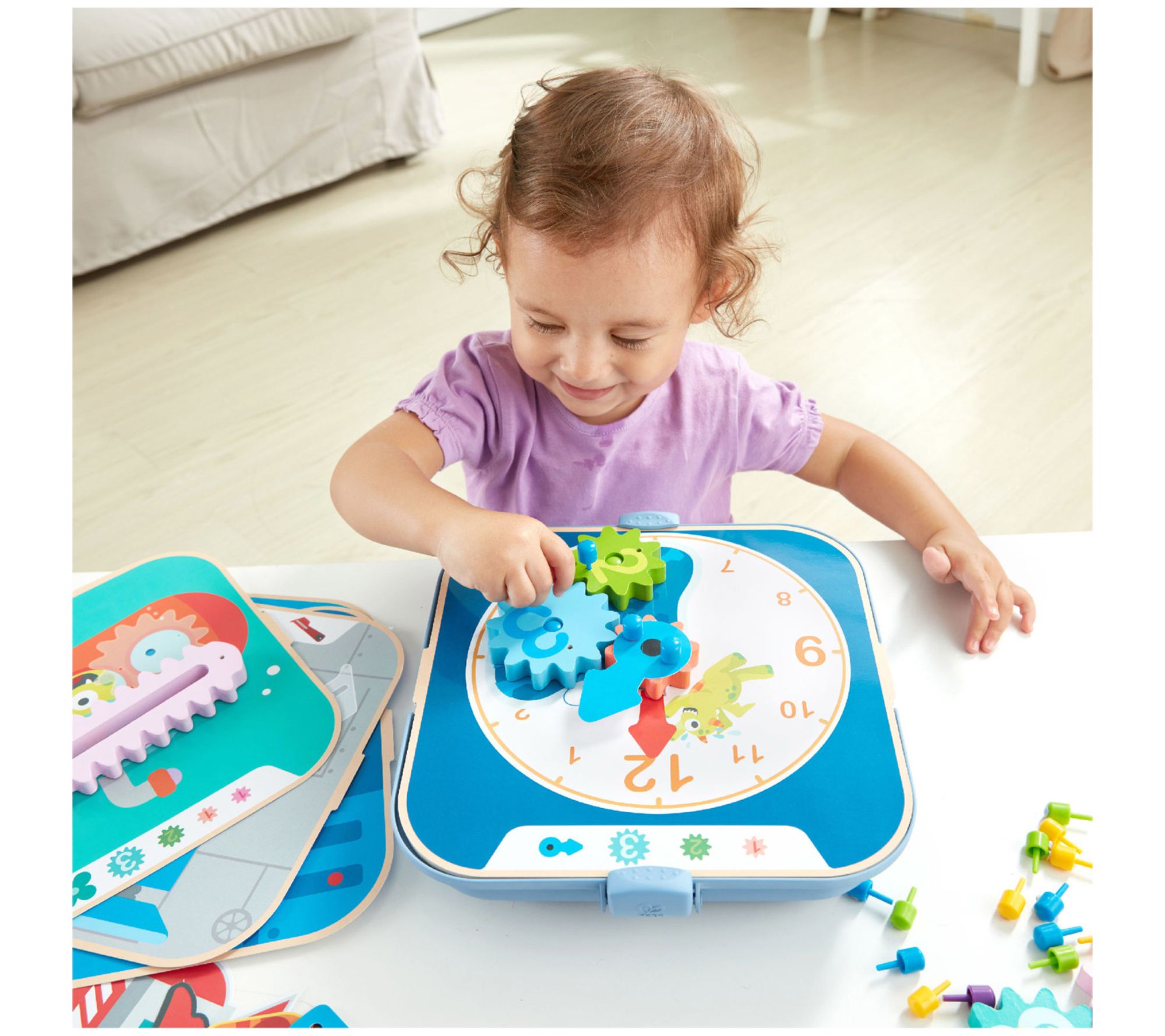 Unleash your child's creativity with the Hape Cogworks Experimental Playset. This interactive STEM toy invites young engineers to explore the magic of spinning gears and cogs. With six engaging backgrounds, kids can animate scenes like a rocket launch or a robot dance. Perfect for sparking imagination and learning about engineering concepts. From Hape.