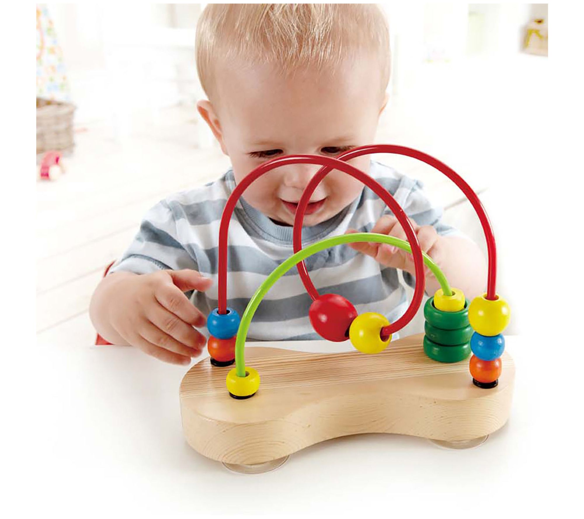 Bring a world of wonder and whimsy right to your little one's fingertips with this wooden bead maze. The colorful, engaging toy is designed to captivate your child's imagination while encouraging dexterity, hand-eye coordination, and creativity. With its sturdy suction cups and playful design, it's perfect for providing hours of joyful exploration. From Hape.