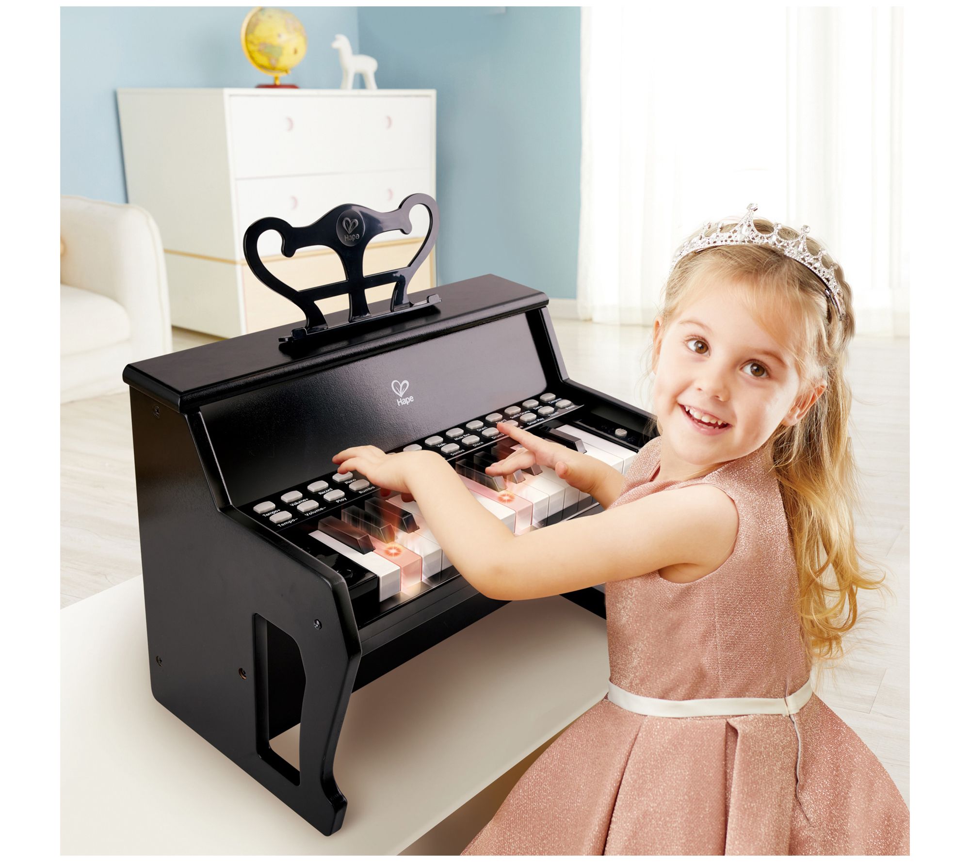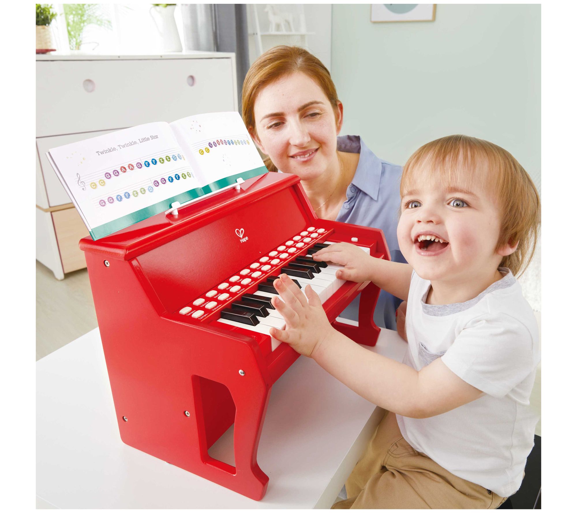 Nurture your child's love of music and encourage creativity as they learn and play on the Learn With Lights electronic piano. From Hape International, Inc.