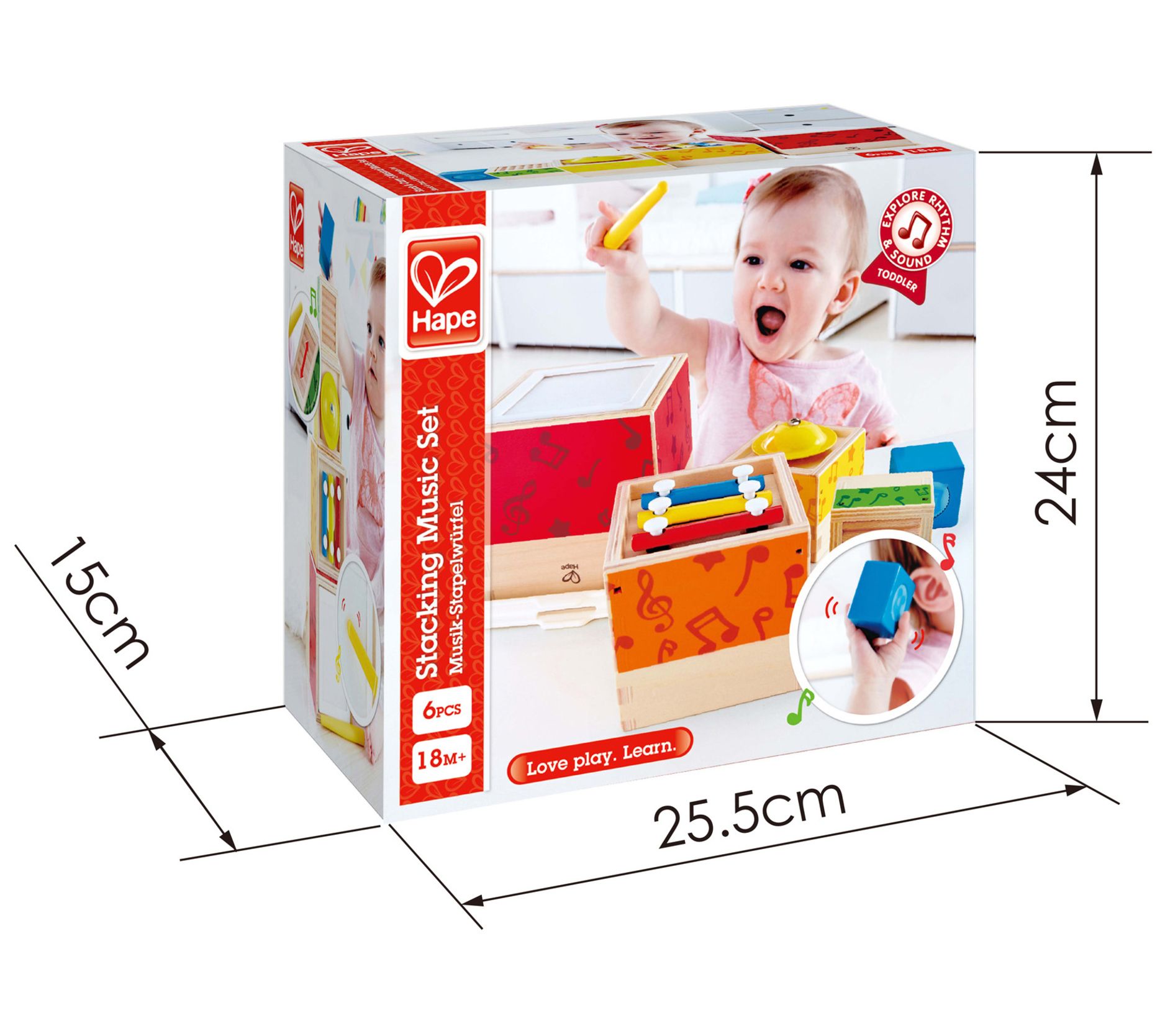 • Includes drum block, xylophone block, rattle block, scratch board block, mini gong block, and baton
