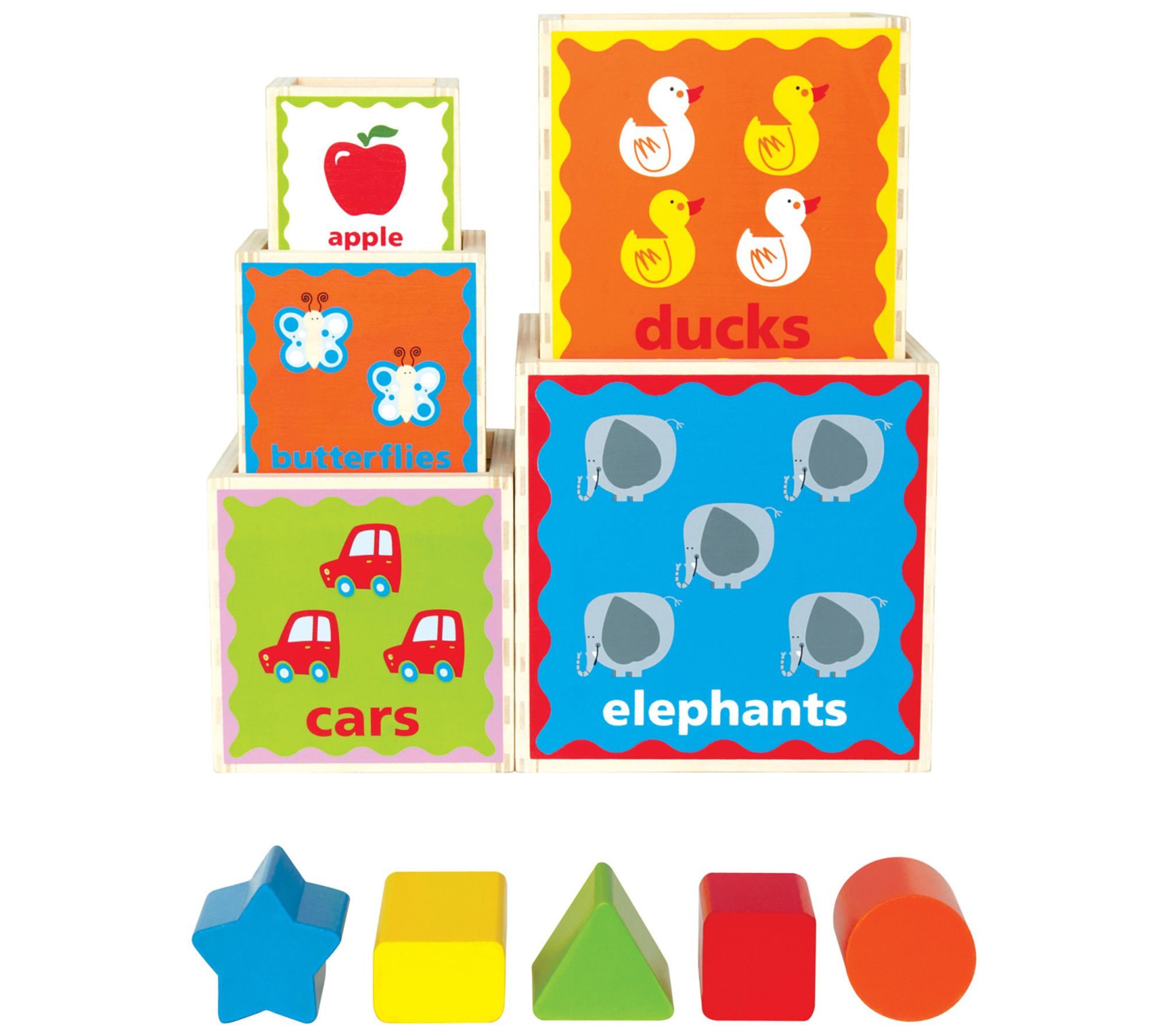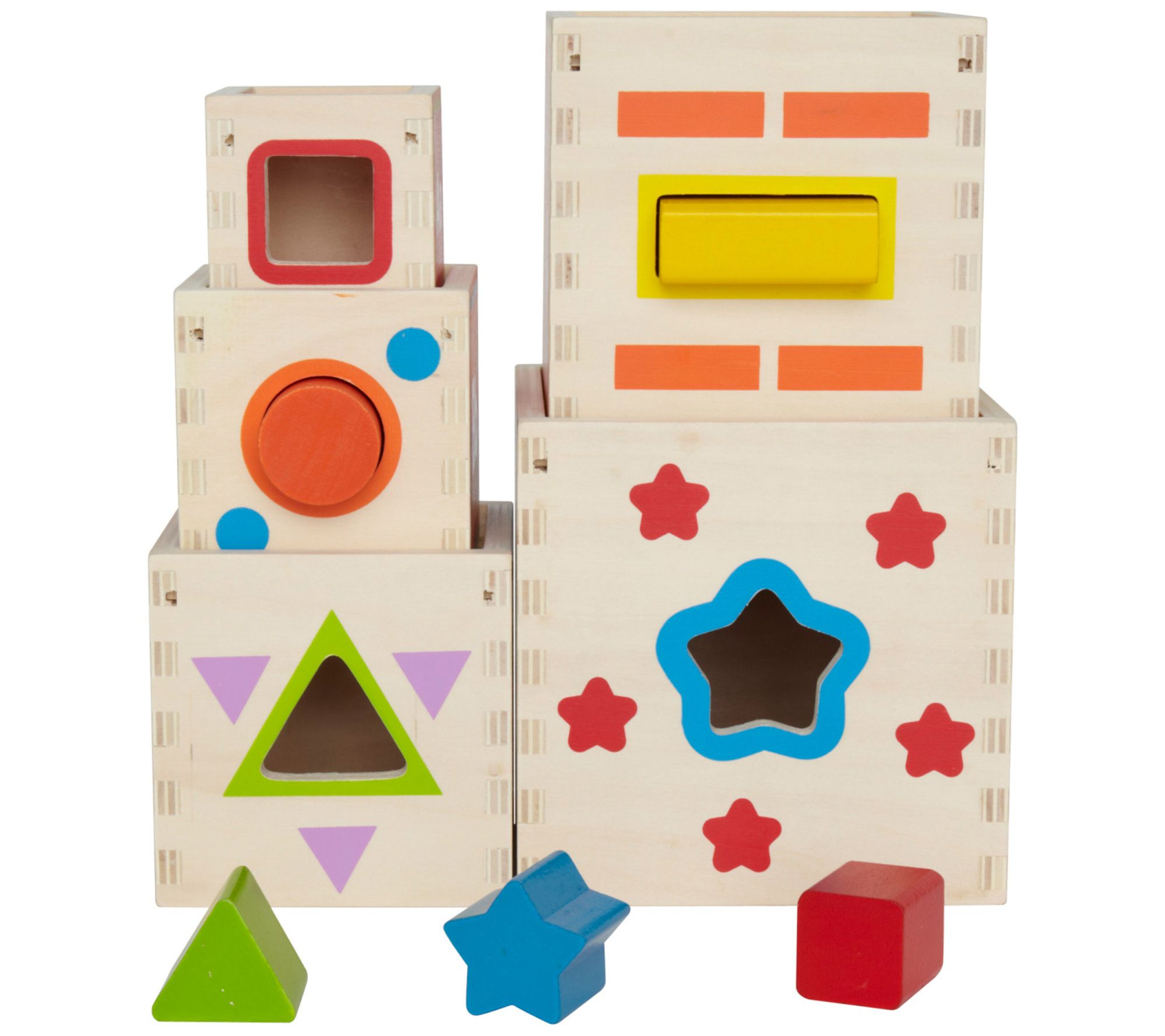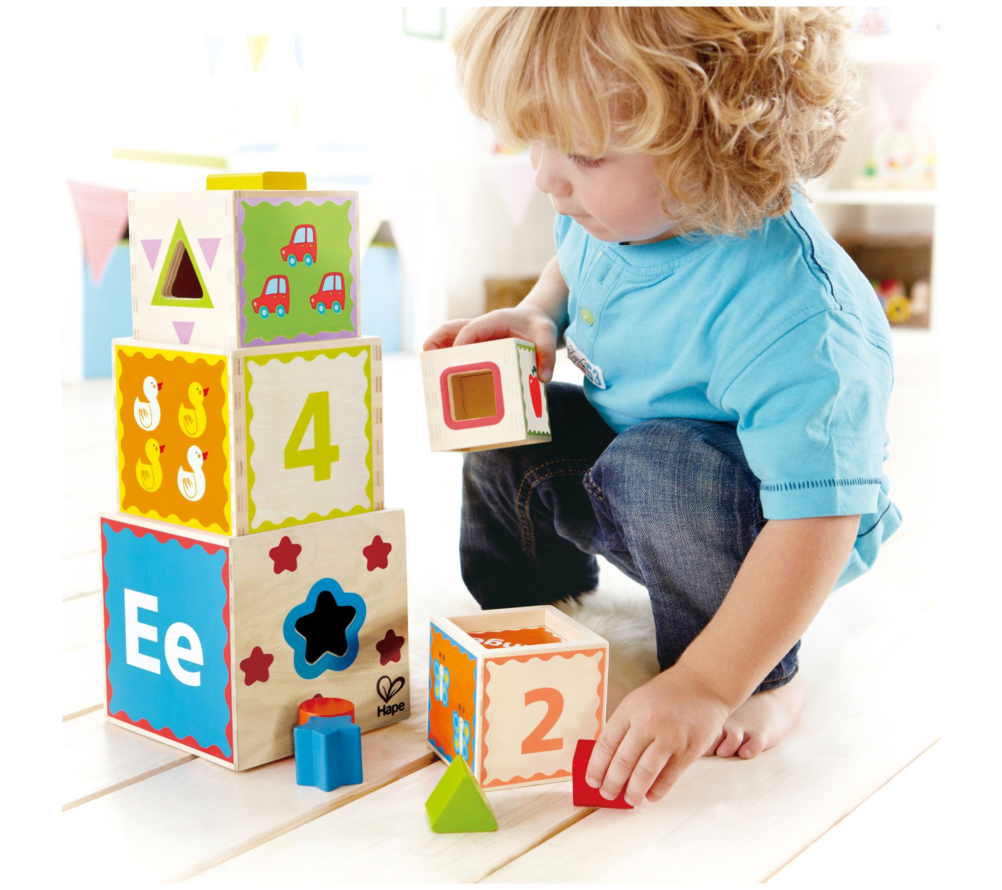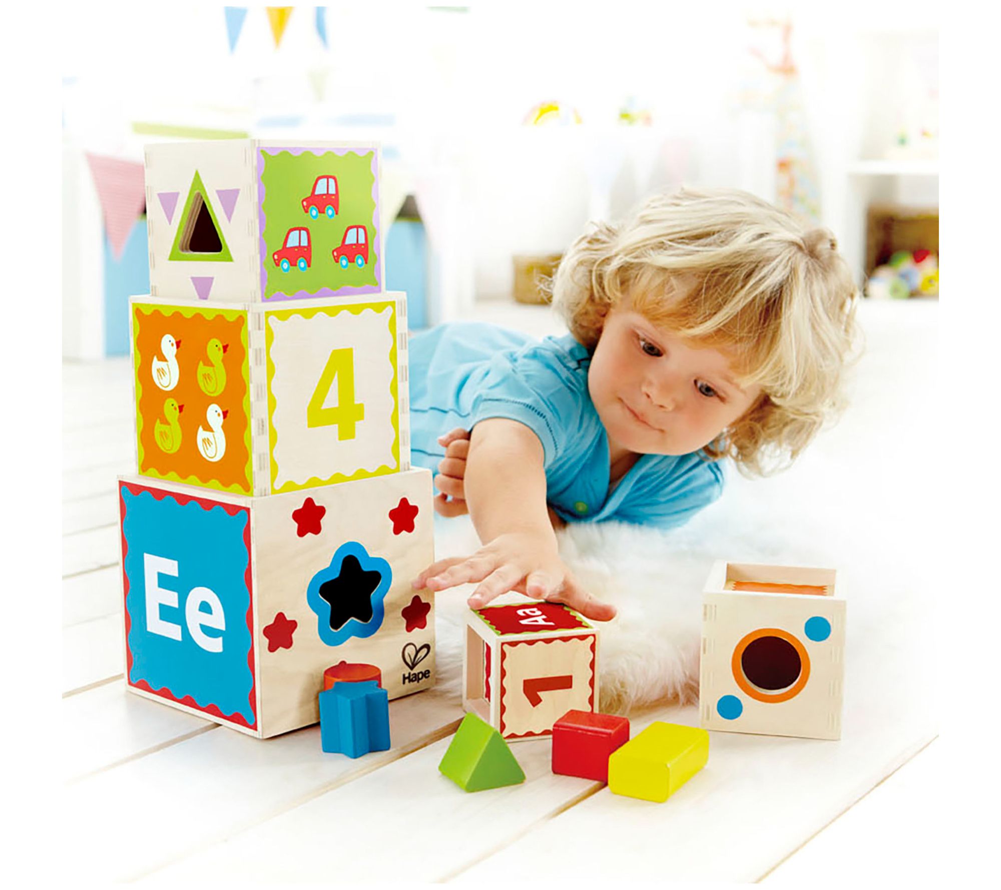 Hape Pyramid of Play 5 Wooden Nesting Blocks &Boxes