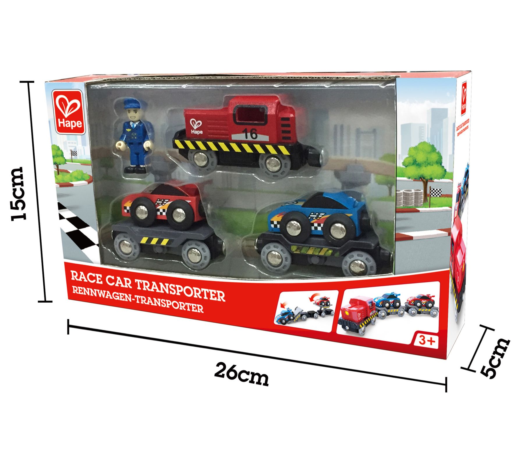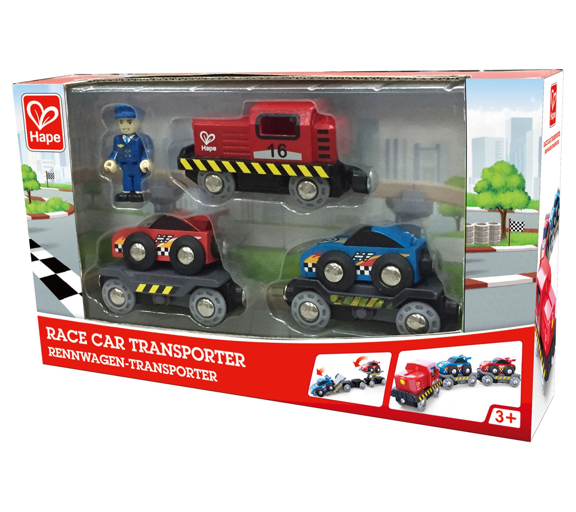 Hape Race Car Transporter - 6 Pc Set
