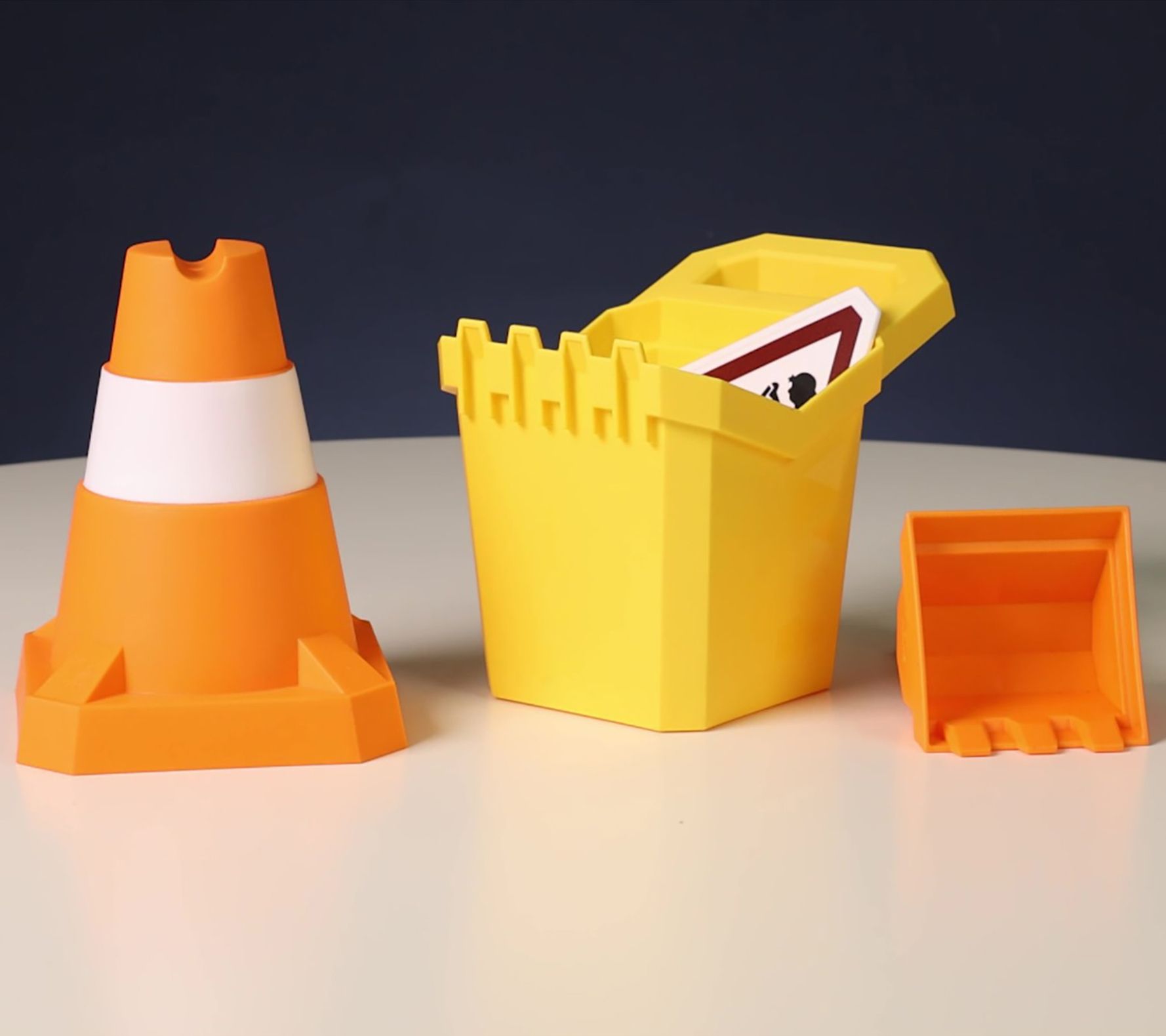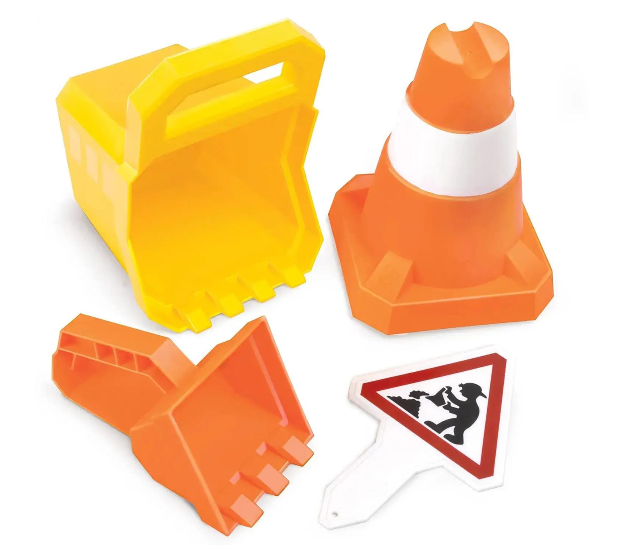 • Includes digger bucket, bulldozer, safety cone, and indicator
