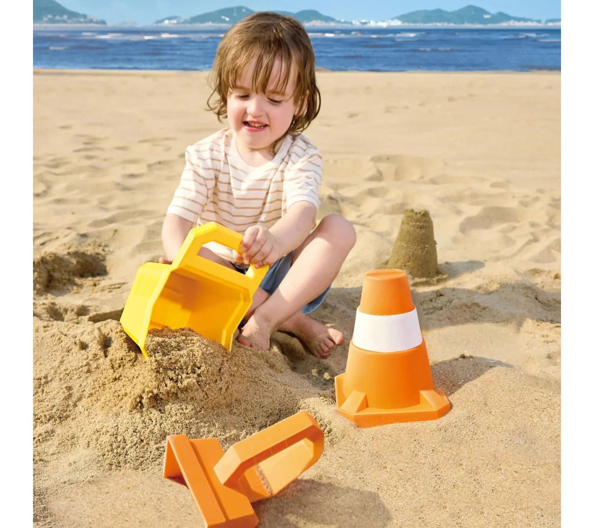 Have hours of fun at the beach or in the garden with the Hape sand construction beach toy set. This four-piece set includes tools modeled on real construction equipment, perfect for digging, moving, and bulldozing sand. Encourage creativity and teamwork with these durable, easy-to-grip toys. From Hape.