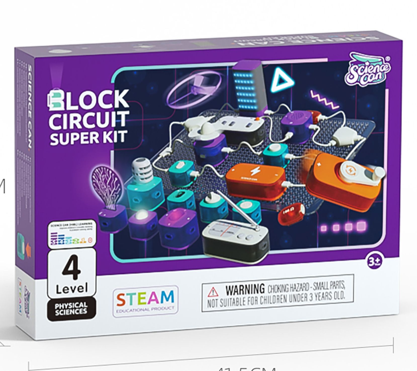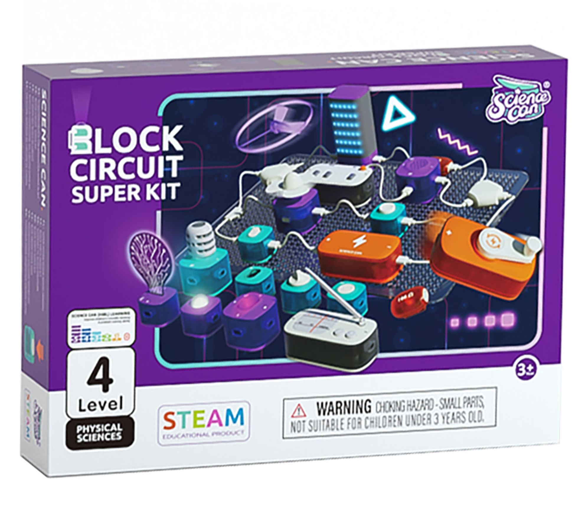 Engage your little scientist's curiosity with the Hape Science Can Block Circuit Super Kit. This kit offers endless learning as children experiment with building different circuits using modular blocks. They can explore electrical concepts through visual and audio outcomes by combining modules to create new circuit scenes. With 80 ways to build, fun and education go hand in hand. From Hape.