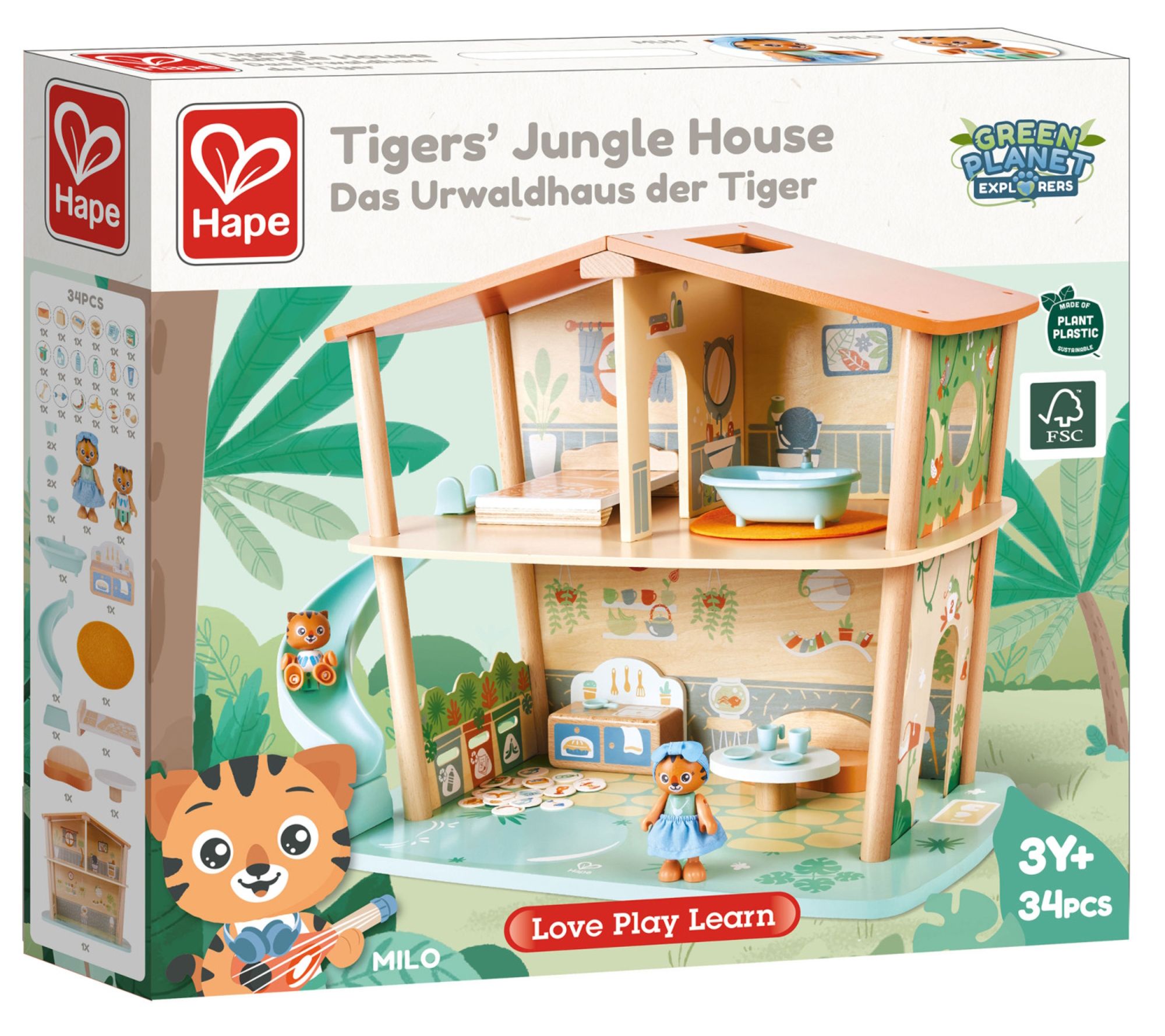 Hape Tigers' Jungle House Wooden Toy Set - 34pc