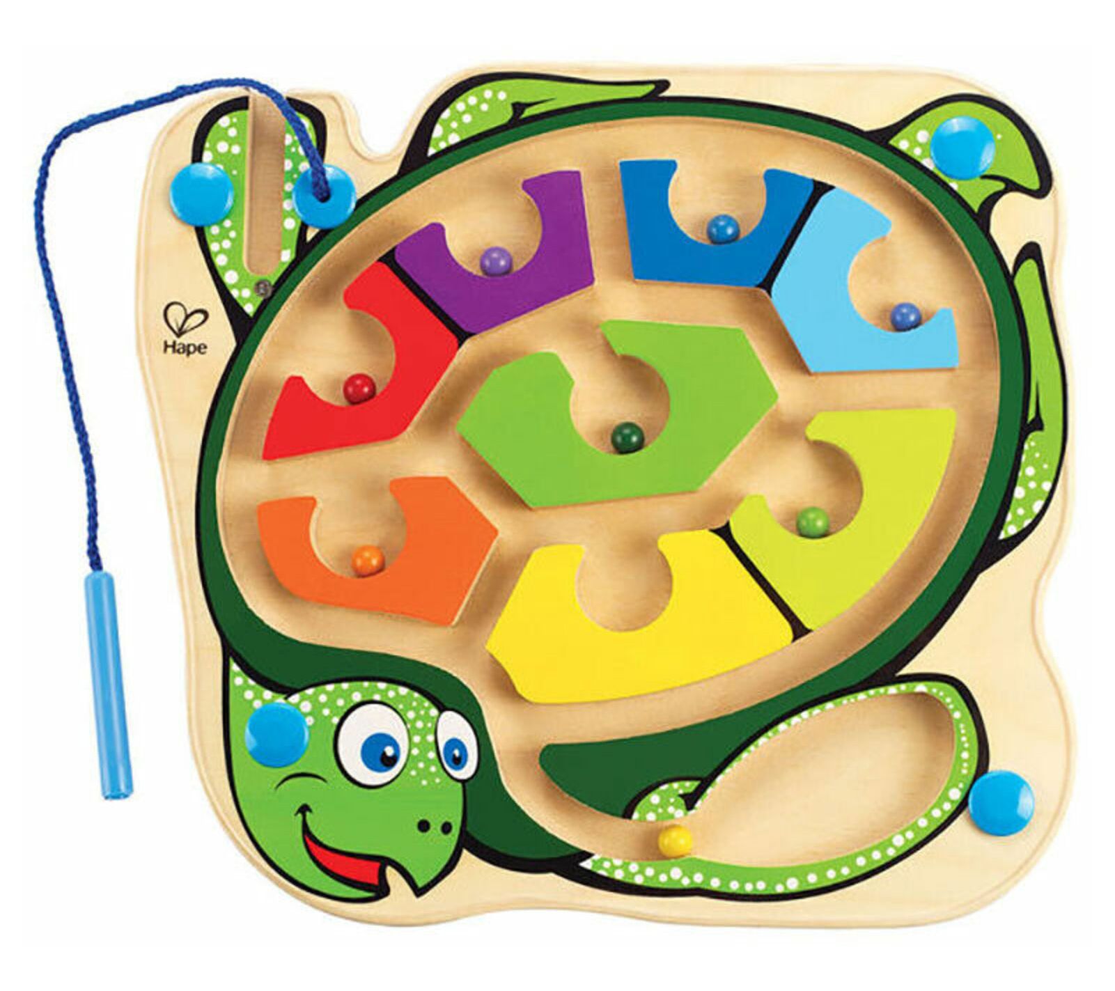 Spark creativity and fun with the Totally Amazing bead maze. This engaging toy features a magnetic wand that guides marbles through a vibrant, sea turtle-themed maze, providing hours of screen-free play. Designed for durability, it's perfect for young explorers. From Hape.