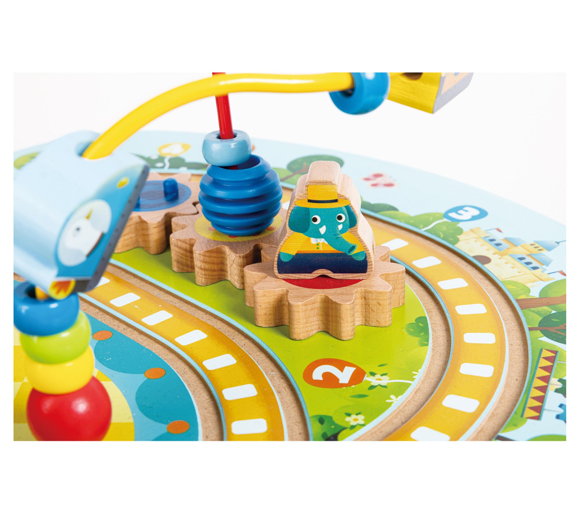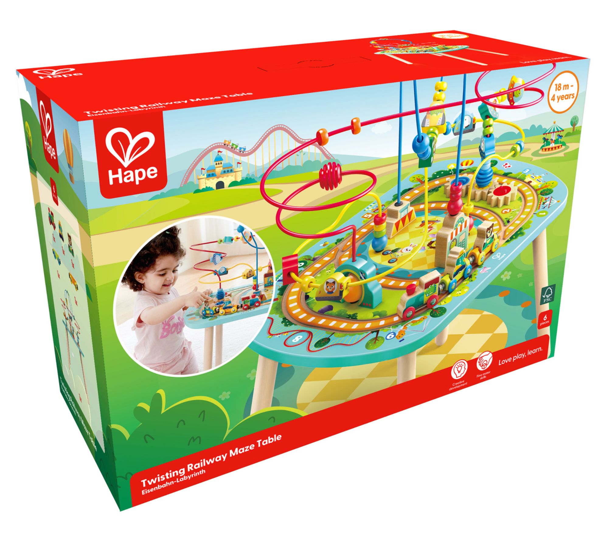Unleash the thrill of mazes with the Hape twisting railway maze table! Your child will love navigating through twists and turns, discovering endless fun along the way. Encouraging independent exploration, this maze table lets children manipulate beads and trains, developing their fine motor skills and understanding the toy's potential. The included animals and carriages add to the adventure. From Hape.
