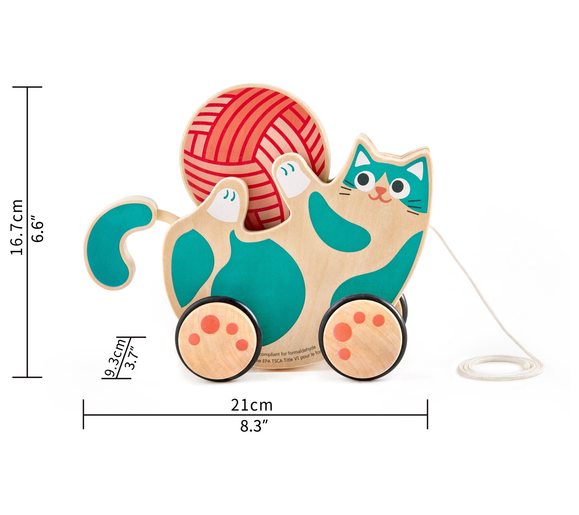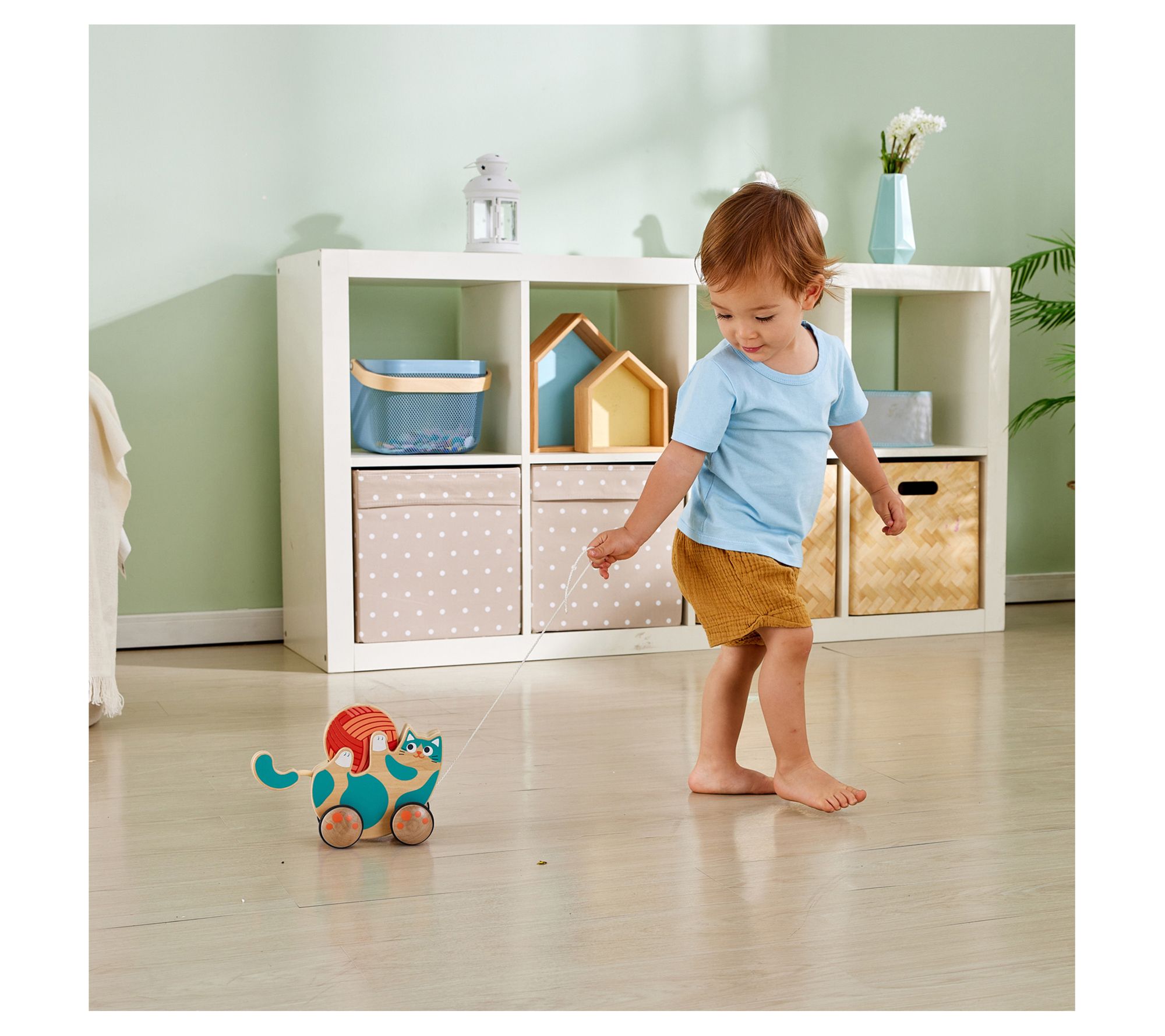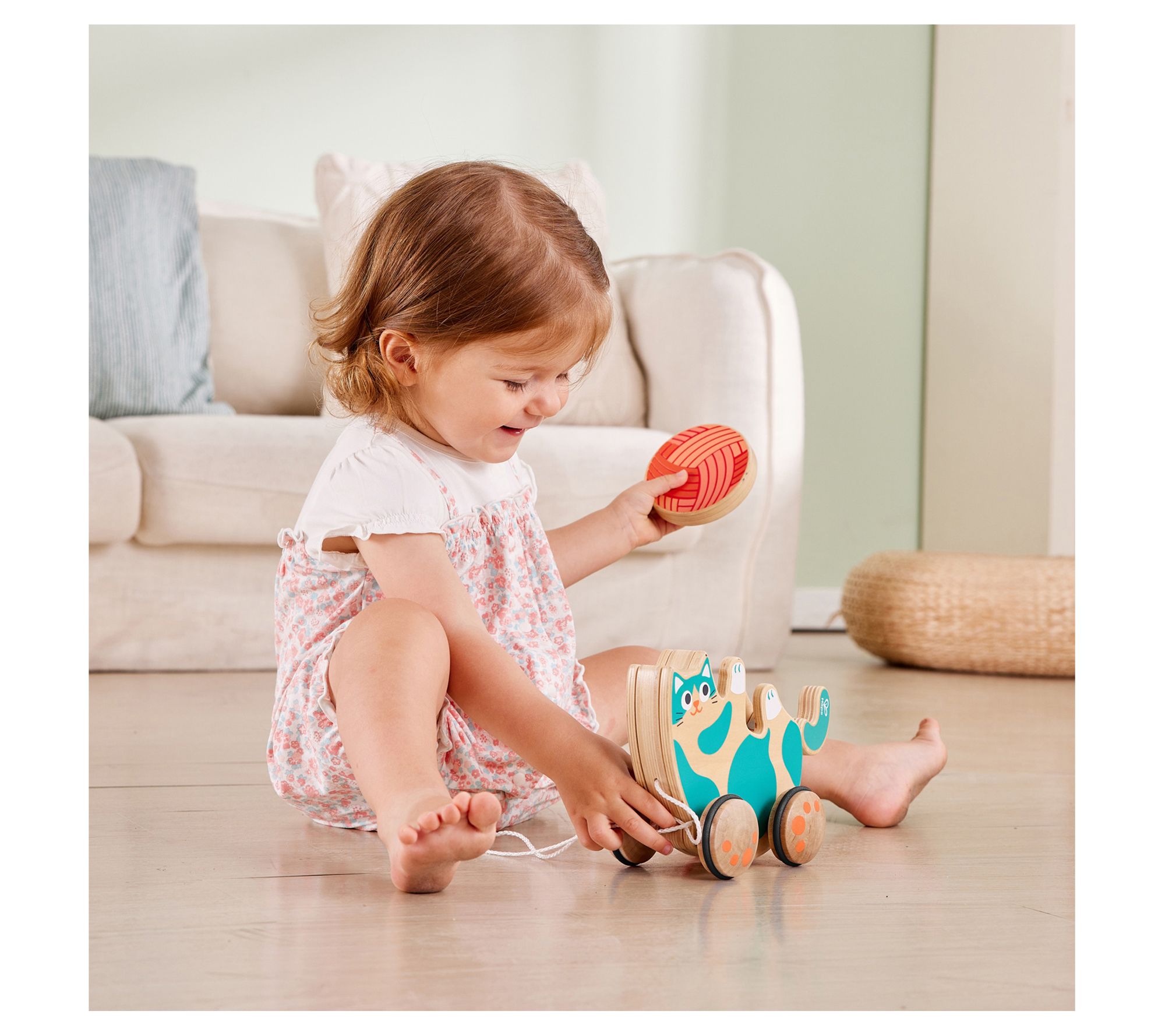 Delight your toddler with the Roll & Rattle Kitten, a beautifully crafted wooden toy that encourages walking and exploration. Watch as your little one pulls this adorable cat across the floor, its tail wagging and the wool ball rattle turning in its paws, offering endless fun and engagement. Designed with love and care, this toy is a charming companion for little walkers. From Hape.