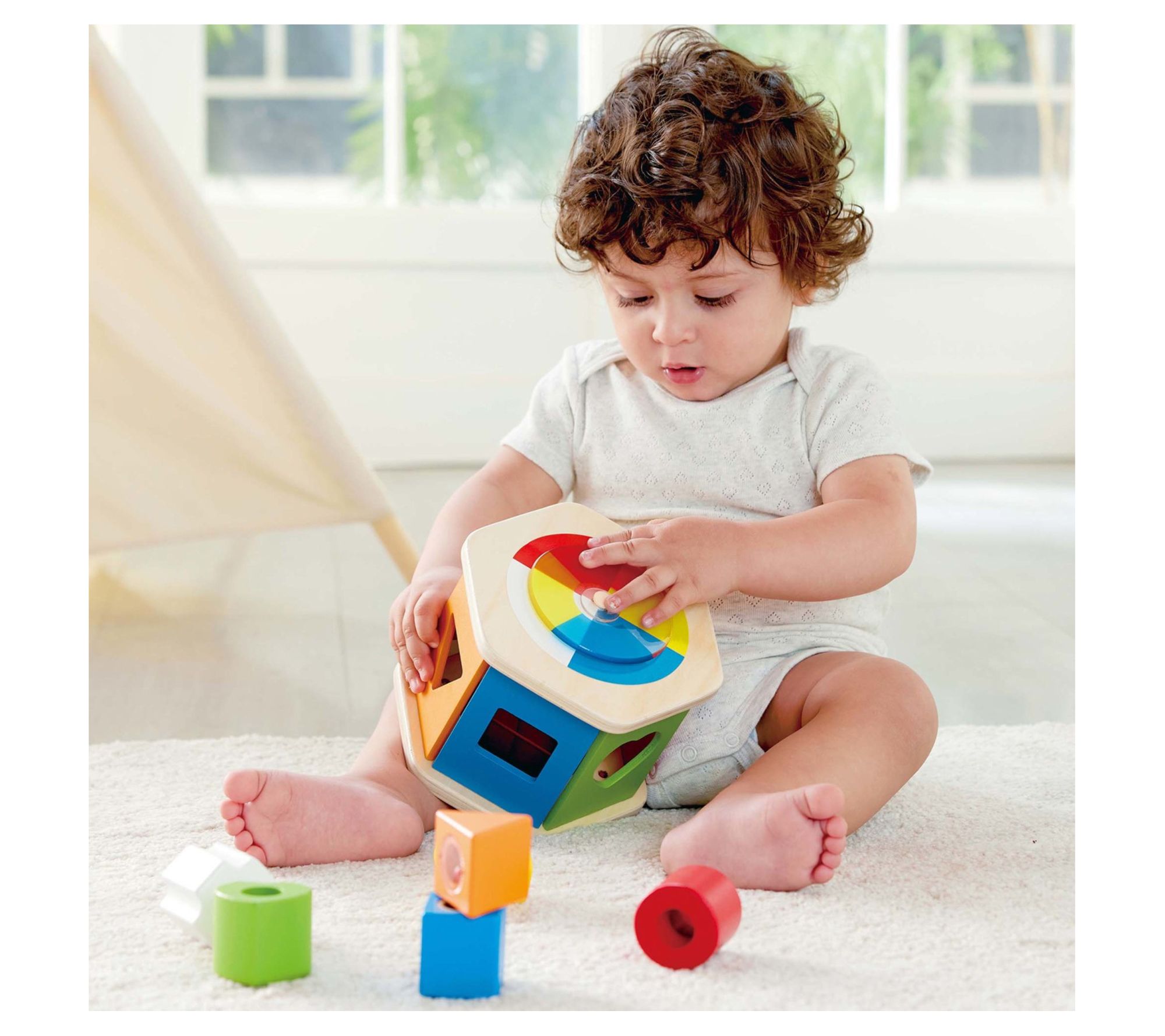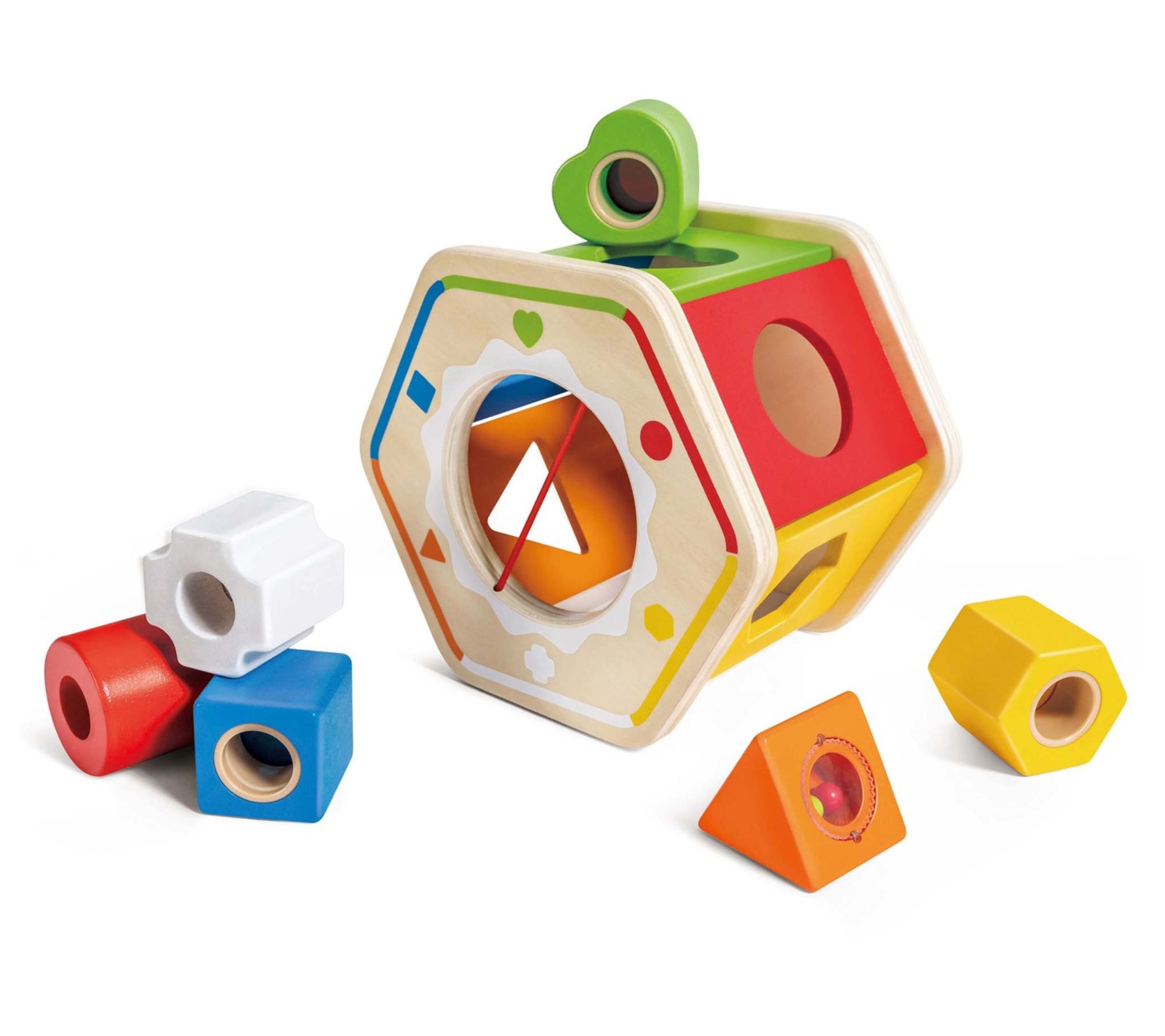 Introduce your little one to the vibrant world of colors and shapes with the Hape wooden rainbow sorting play toy. This engaging toy encourages hands-on learning and creativity, helping children develop cognitive skills as they match each shape to its corresponding slot. From Hape.