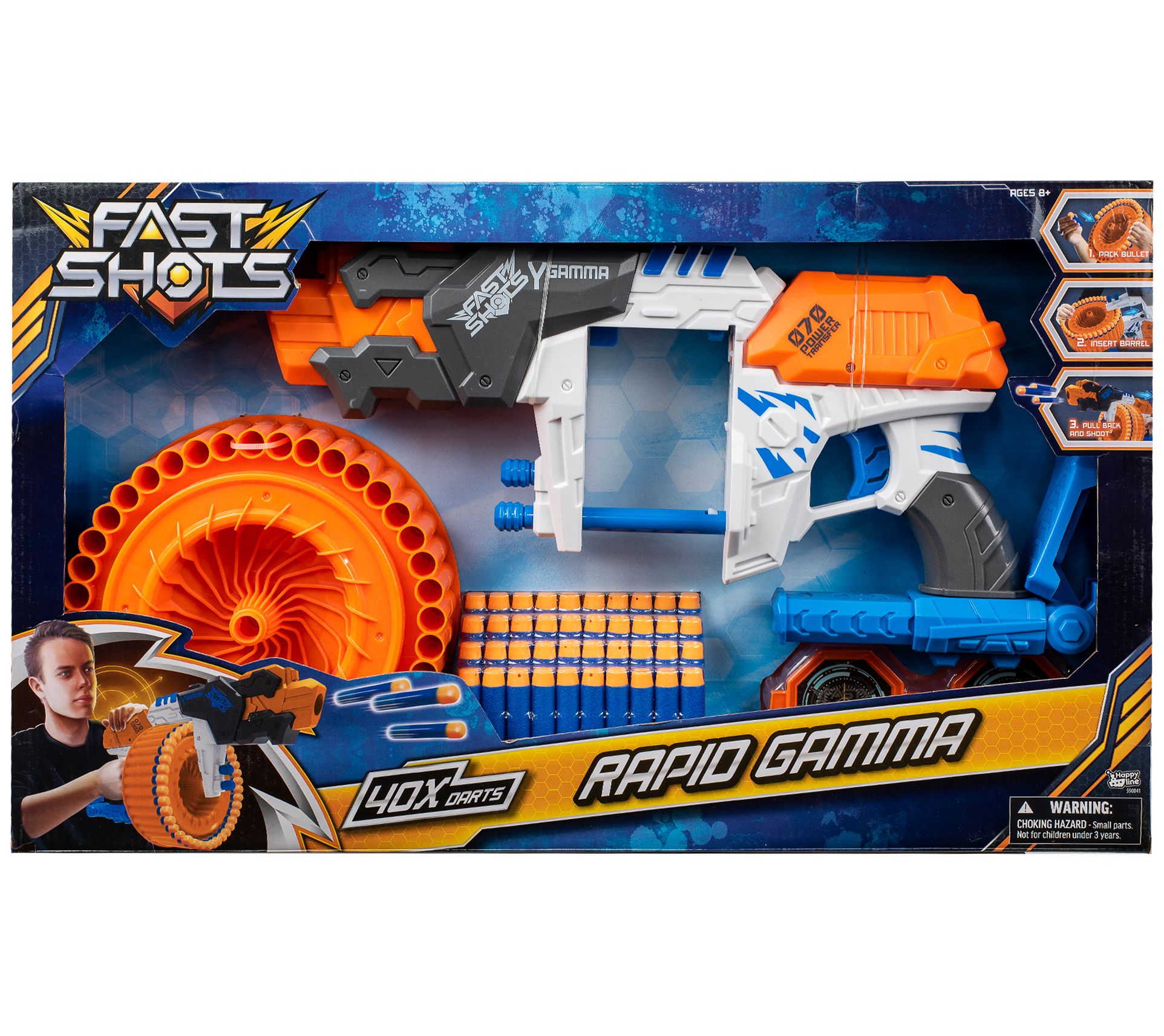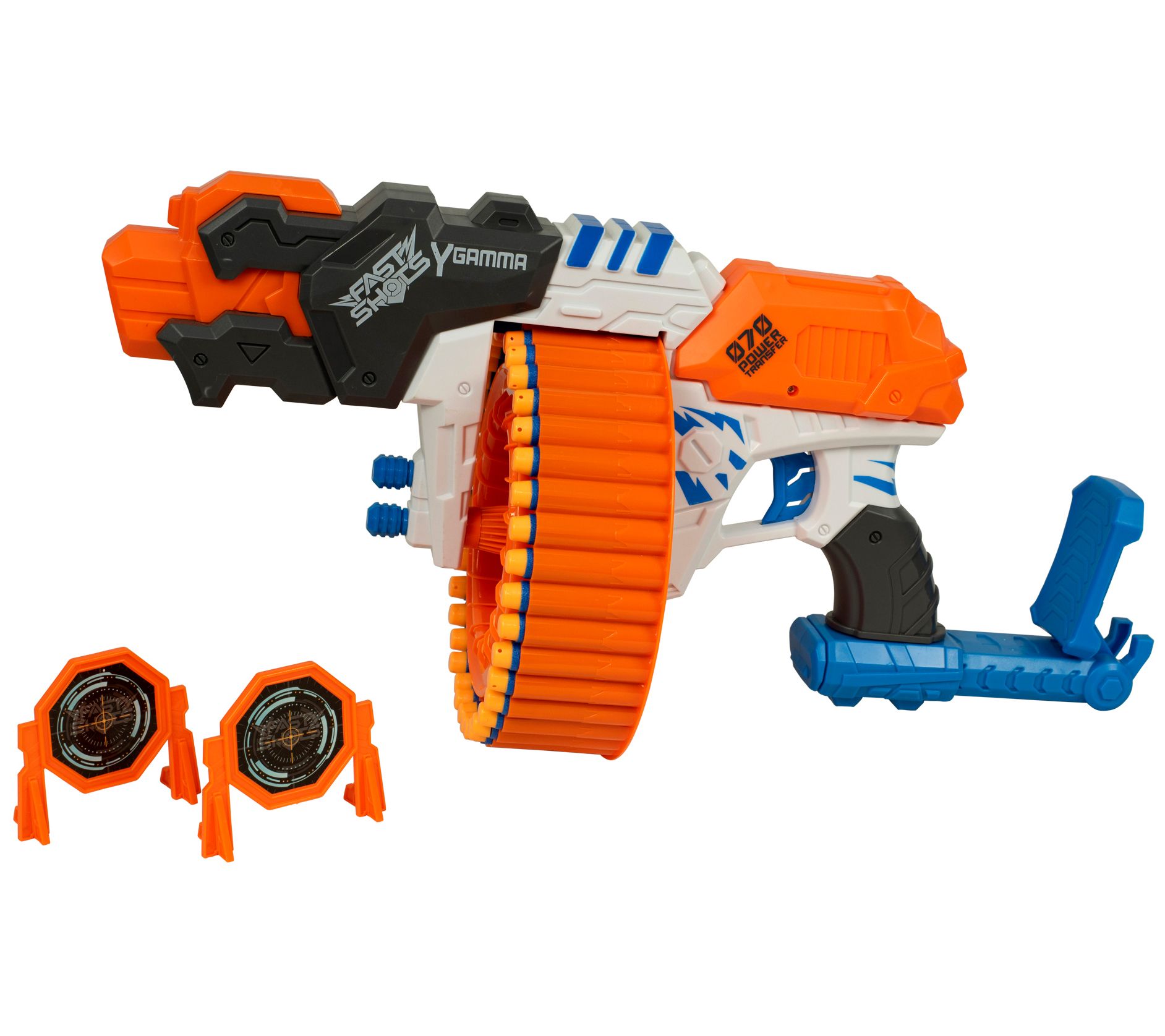 • Includes Rapid Gamma launcher, 40 foam darts, and two targets