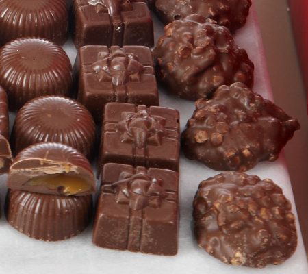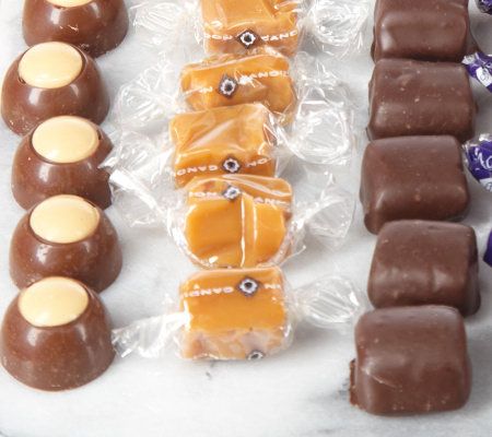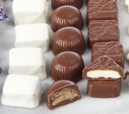 Filling up the main hatbox are 3 lbs of chocolates in ten different yummy varieties. In the middle hatbox are 2 lbs of caramels, including four different mouthwatering flavors. And, topping the selection is one full lb of peanut butter buckeyes. Gift packaged and finished with a bow, the assortment is ready for presenting to the one you love. From Harry London.