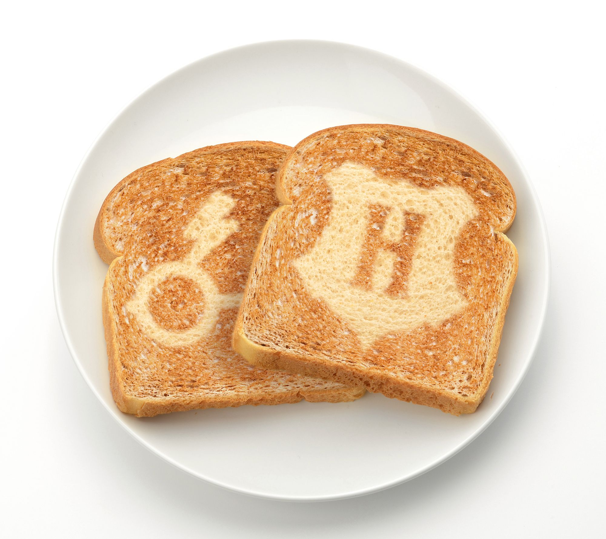 • Toasts an image of the Hogwarts crest and Harry's glasses