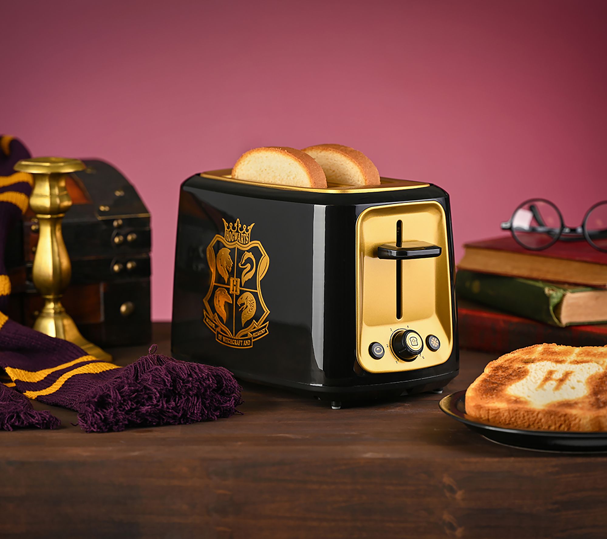 Bring a touch of magic to your mornings with the Harry Potter two-slice toaster. This enchanting appliance imprints a Hogwarts crest or Harry's glasses onto your toast, adding fun and flair to breakfast time. With adjustable browning control and extra-wide slots, it’s perfect for any kitchen wizard.