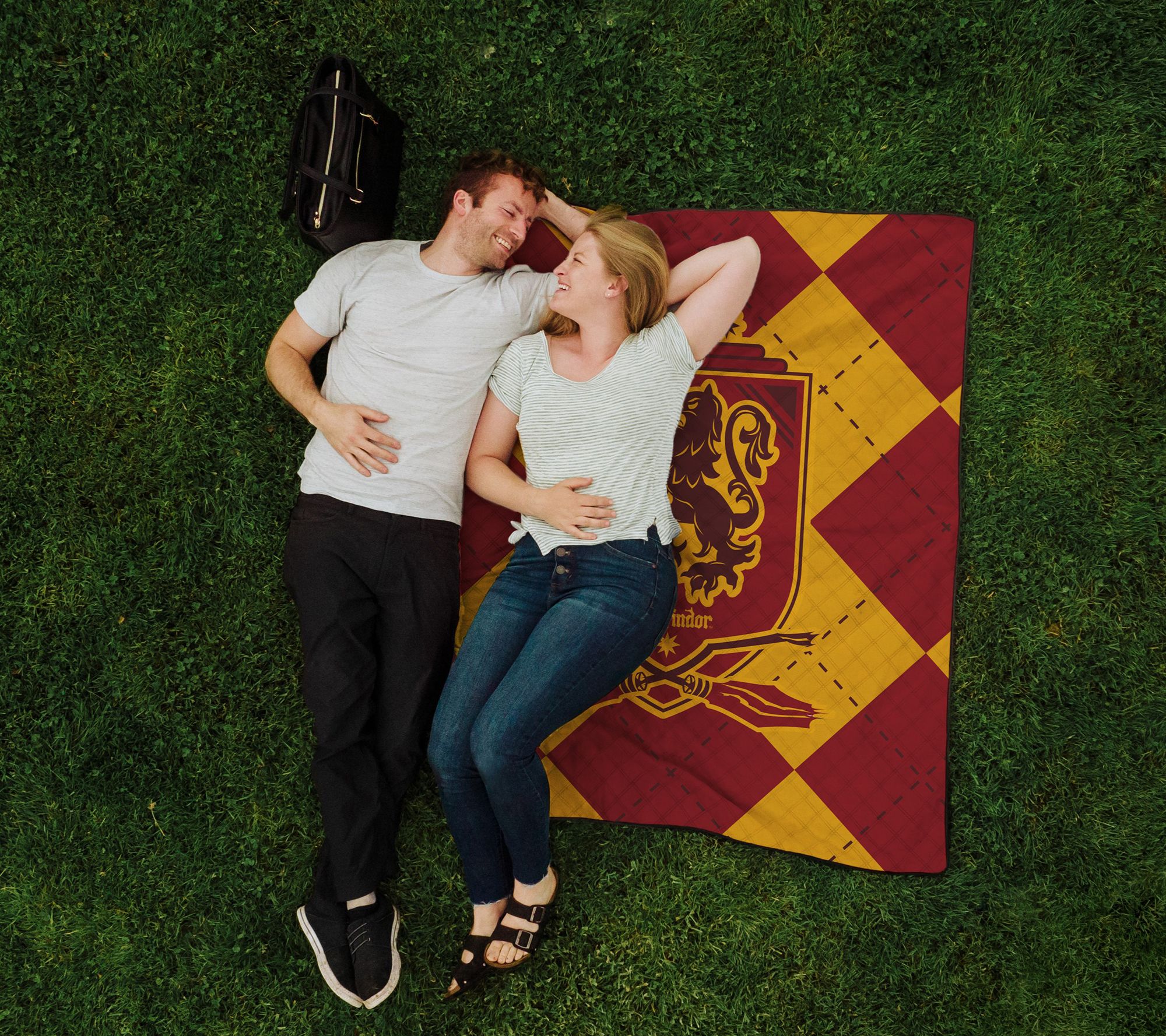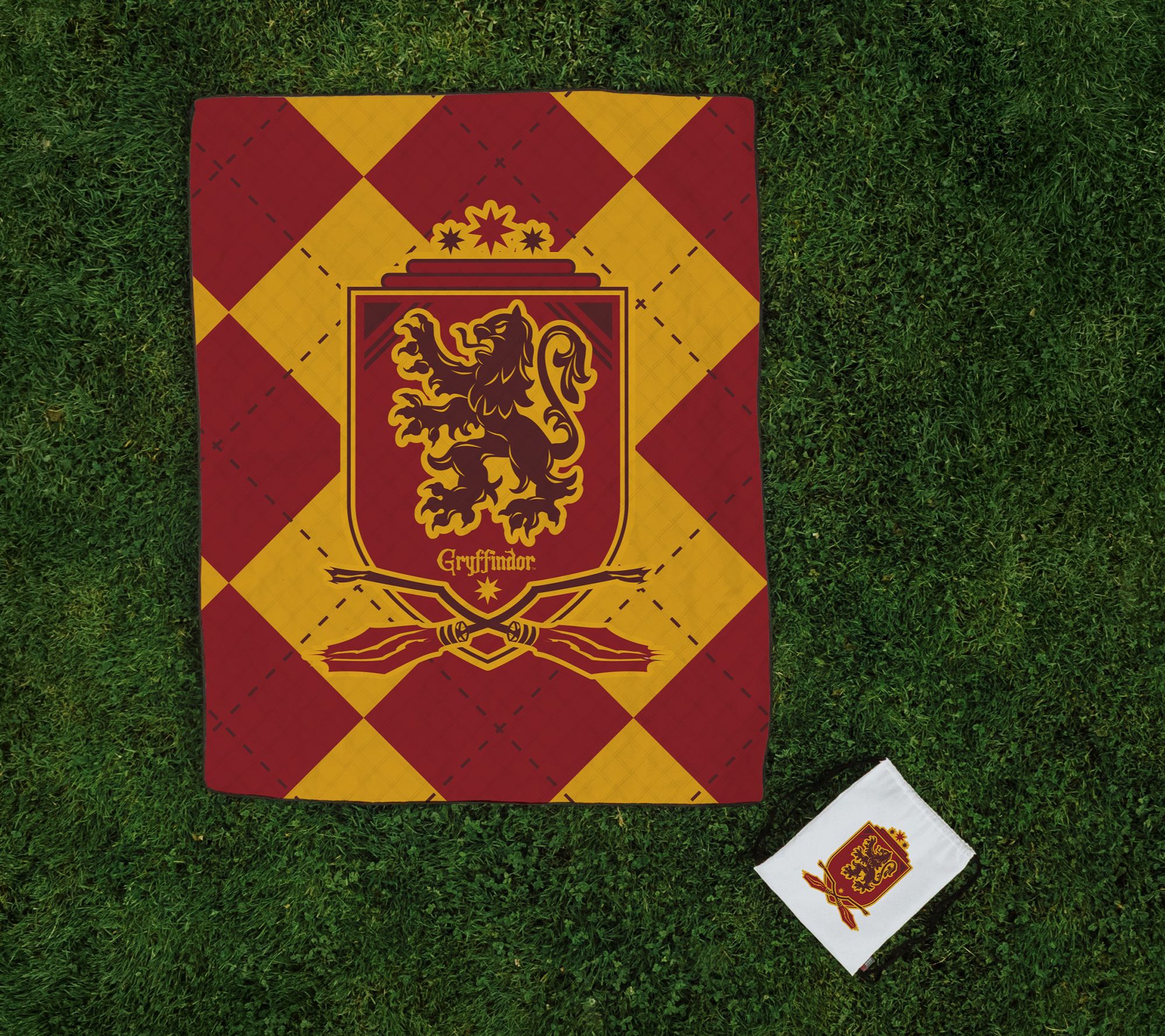 Make your outdoor adventures magical with the Gryffindor picnic blanket. This lightweight, water-friendly blanket is perfect for any fan, featuring a beloved Hogwarts design and tucked into a matching drawstring bag for easy transport. From picnics to beach days, this machine-washable polar fleece necessity provides warmth and comfort wherever you go. From Oniva.