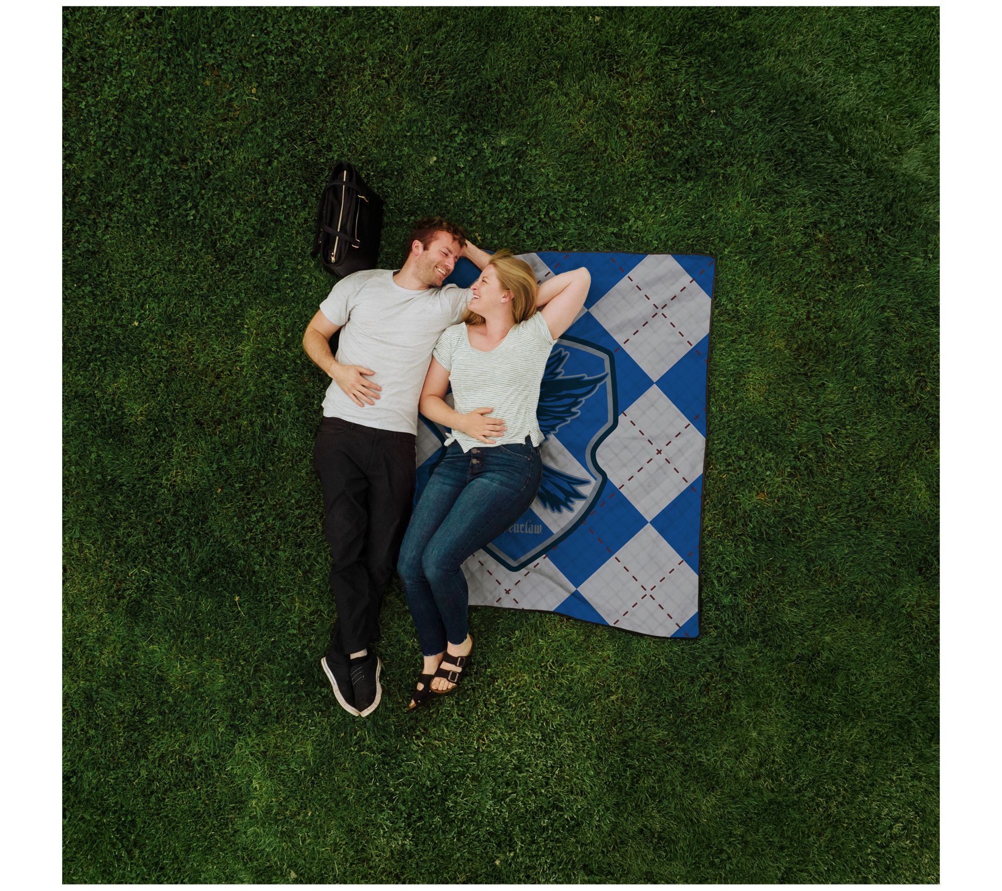 Enjoy magical moments outdoors with the Ravenclaw picnic blanket. This water-friendly, ultra-light picnic blanket comes with a matching drawstring backpack, making it perfect for any adventure. Whether you're lounging in the park or enjoying a beach day, this machine-washable polar fleece blanket offers warmth and comfort. From Oniva.