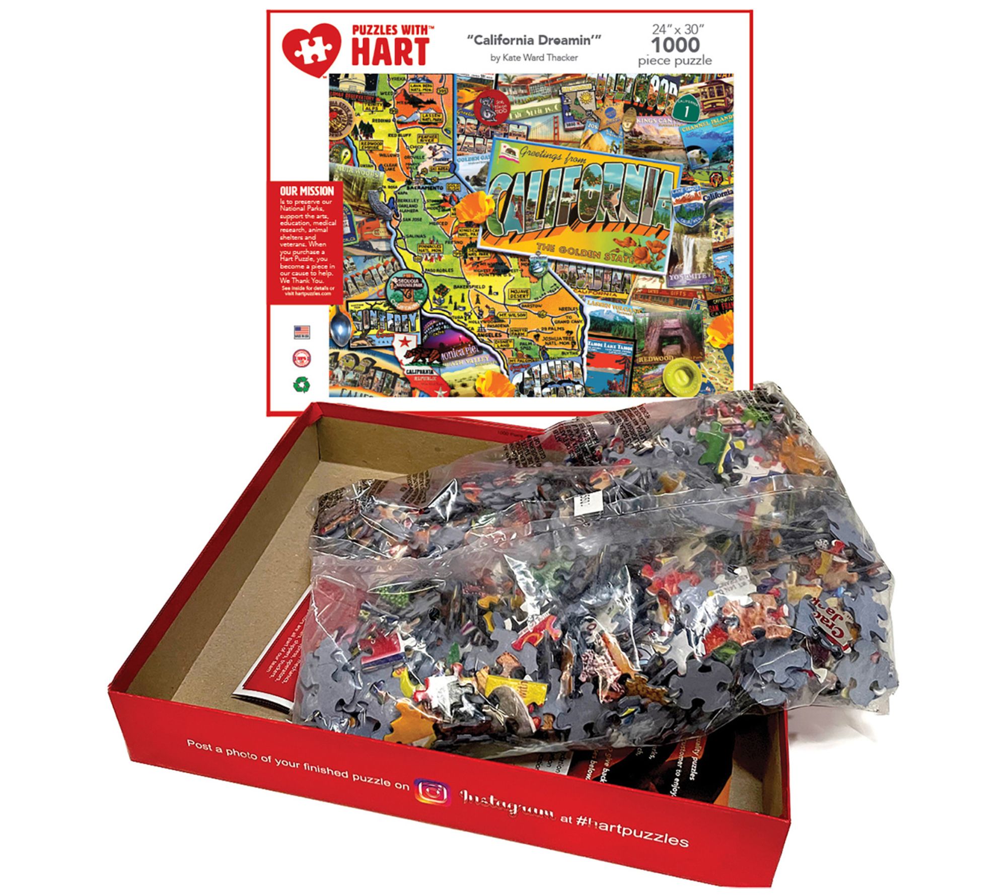 Dream of your next adventure or cherish your favorite animals with the Hart Puzzles 1,000-piece puzzle collection. The puzzle features a detailed and artistic scene by a renowned artist, making hours of enjoyment a certainty. From Hart Puzzles.