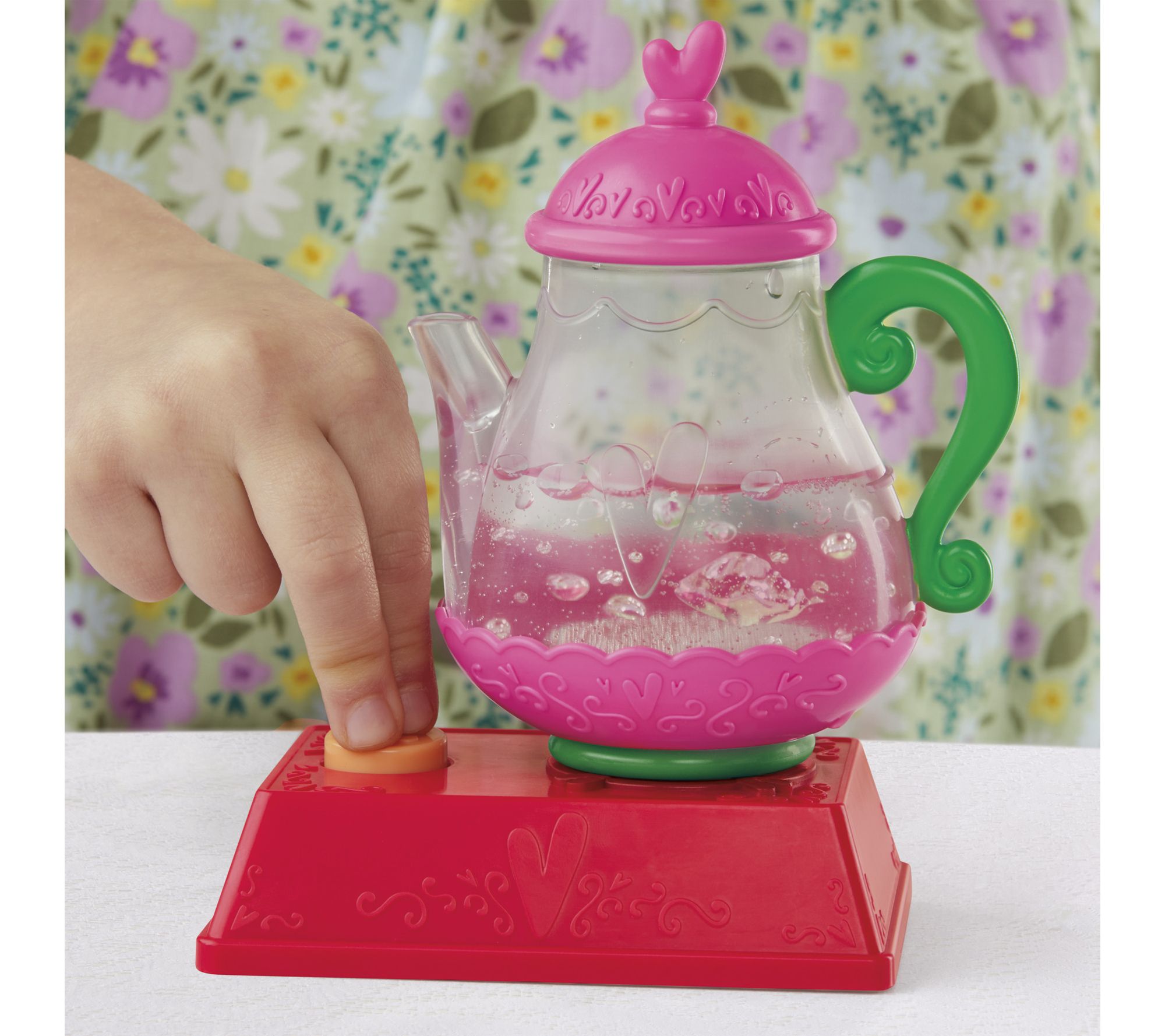 • Accessories create pretend tea party fun with bubbling effect and drink-and-wet feature