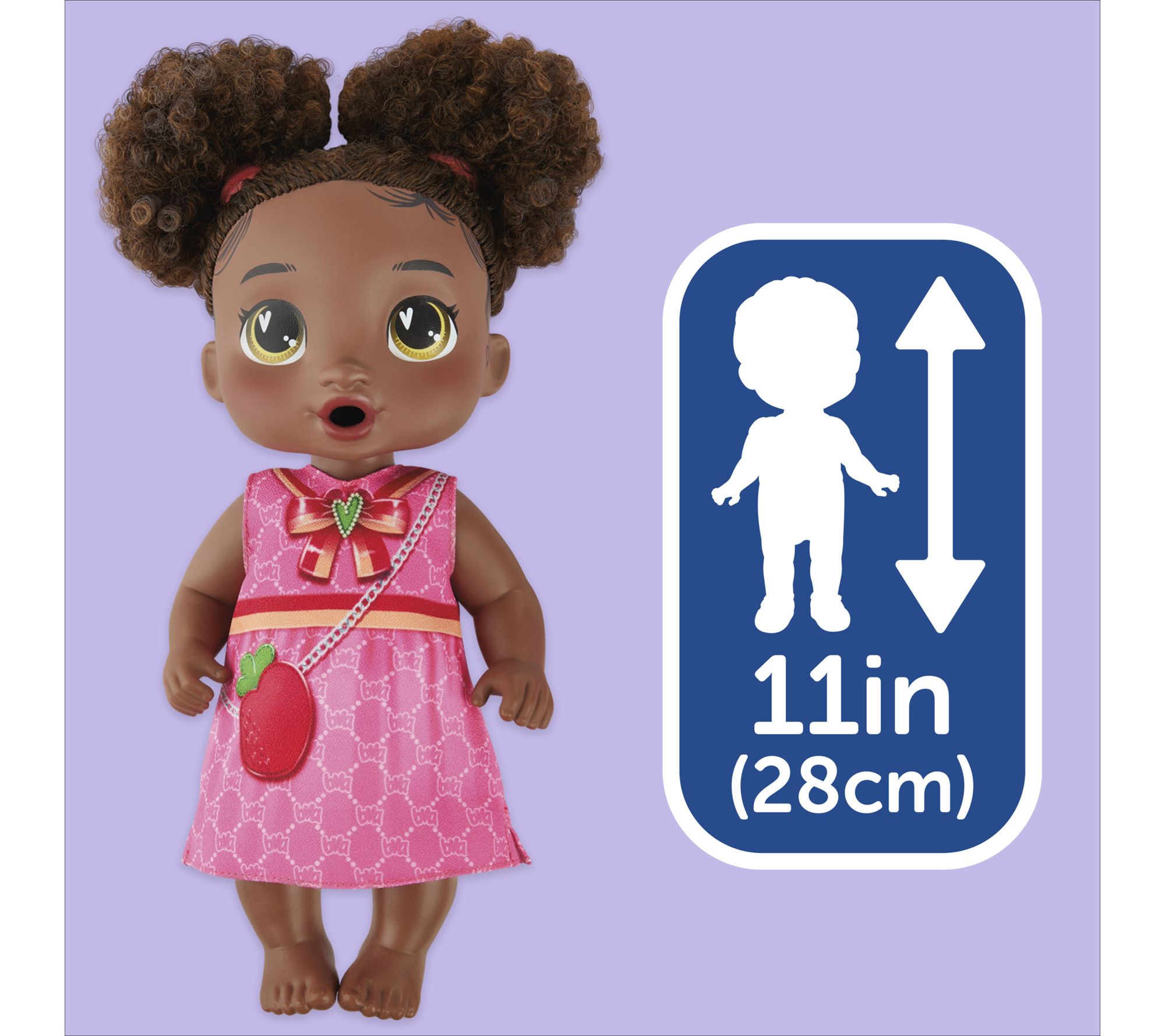 • 11-inch doll features poseable arms and legs, hard body, and removable doll clothes