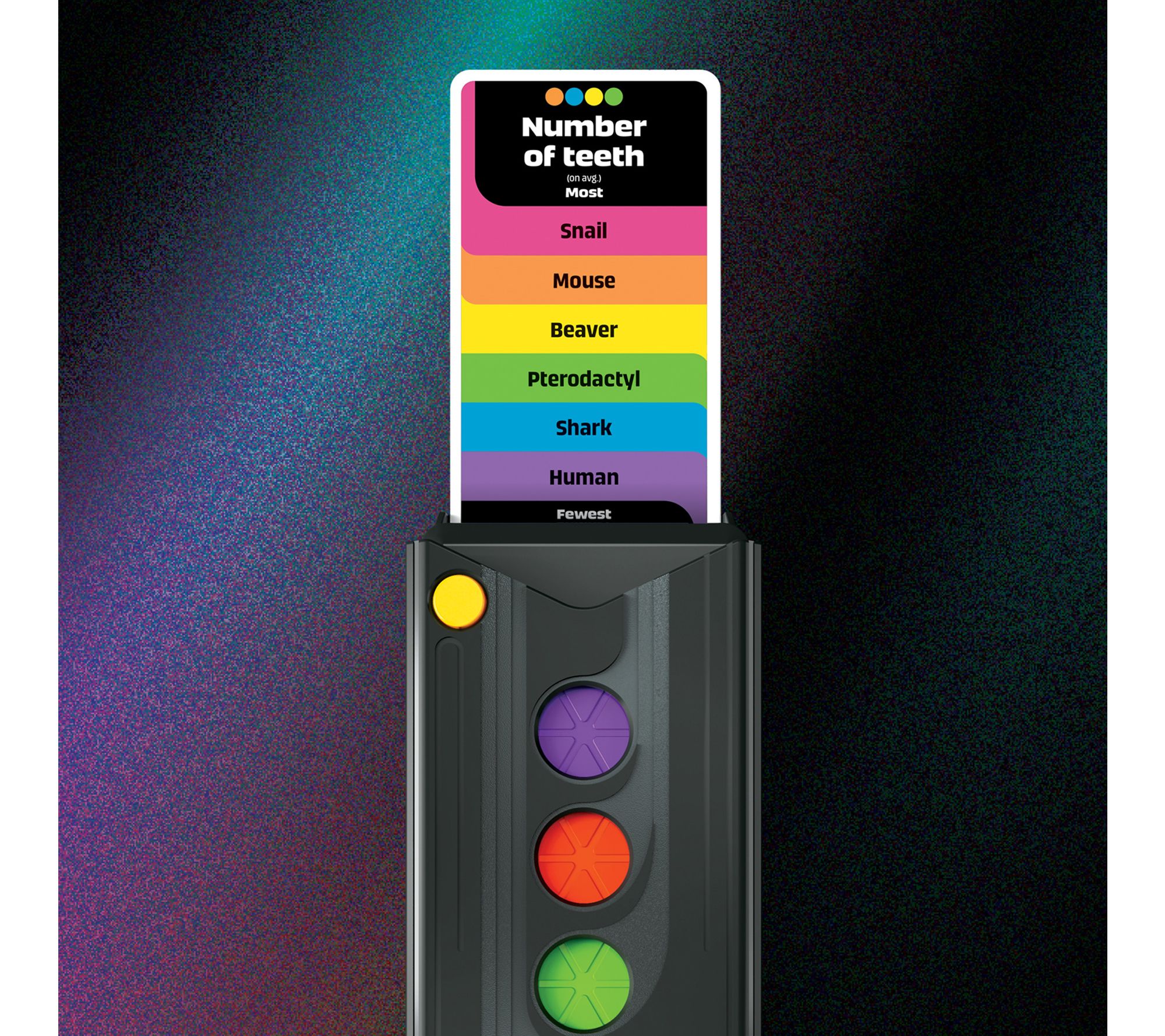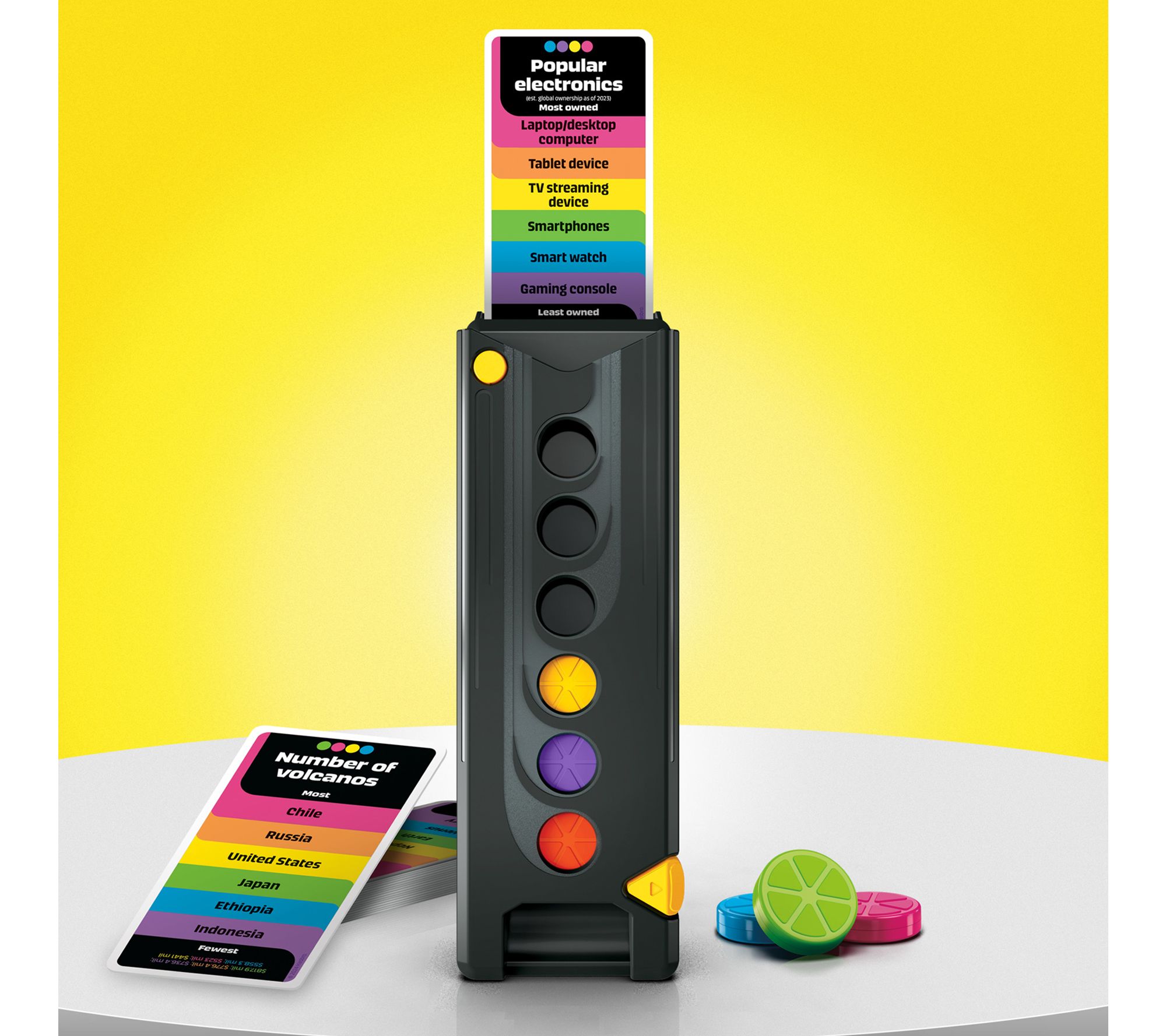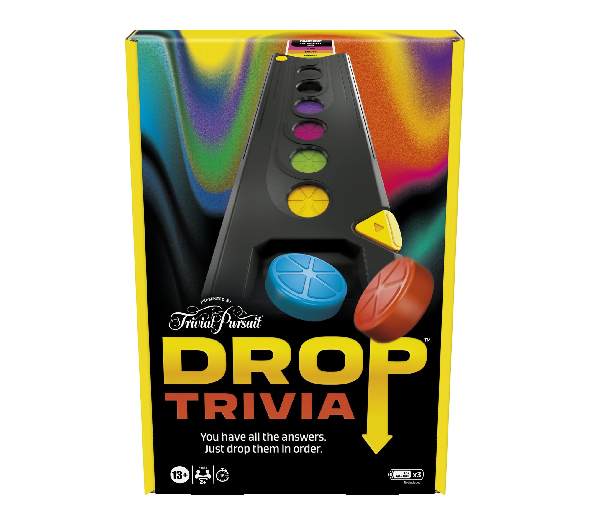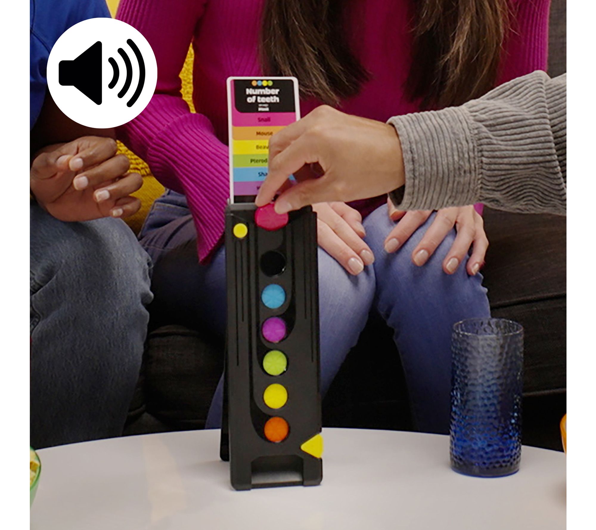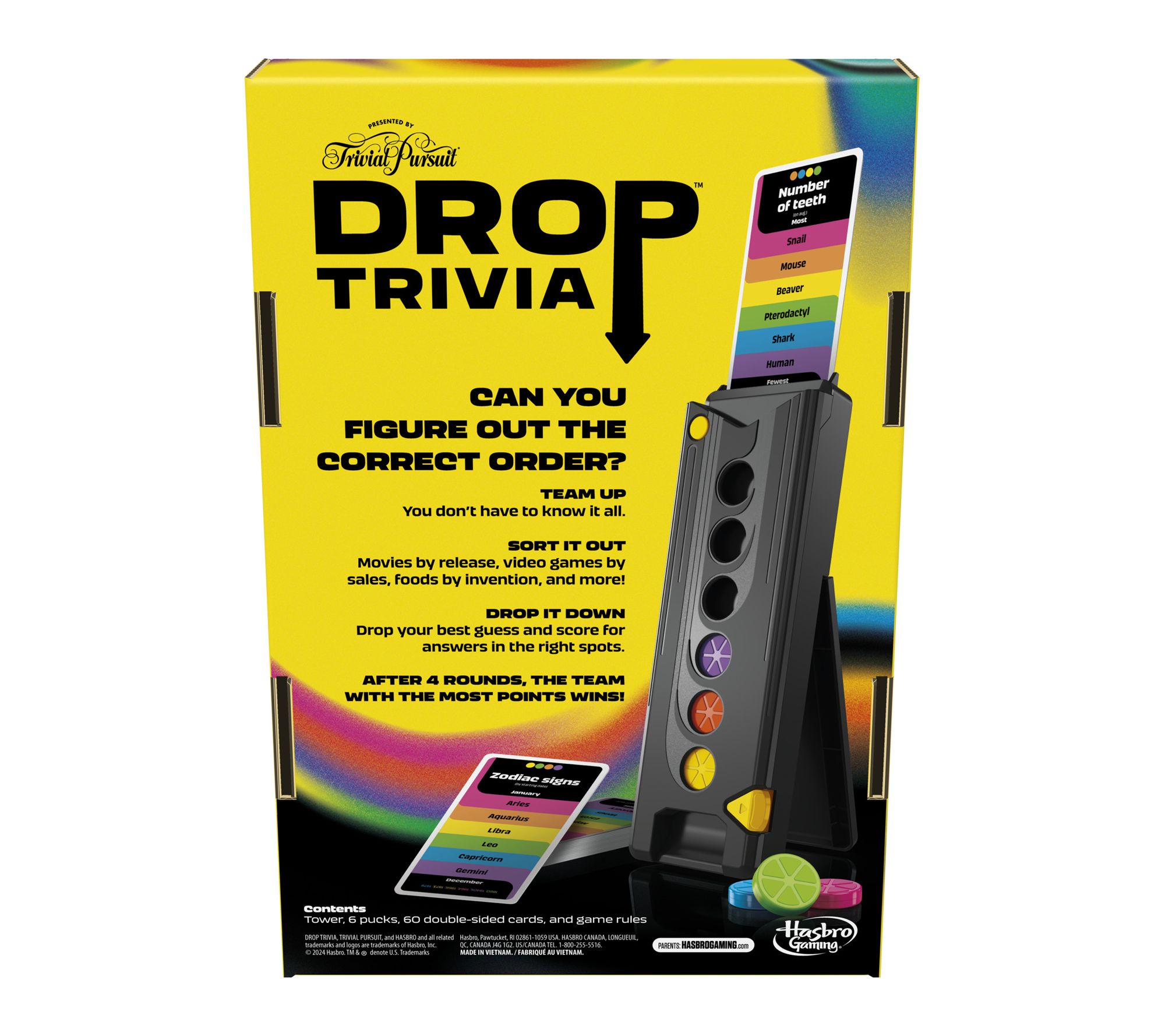 Bring the excitement of a game show to your next gathering with this fast-paced trivia board game! Groups of friends or family will love teaming up to drop pucks and test their knowledge by ranking the answers, all while the interactive tower keeps score and adds to the fun with lively sounds and voice prompts. Experience endless laughter and brain-teasing moments together. From Hasbro.