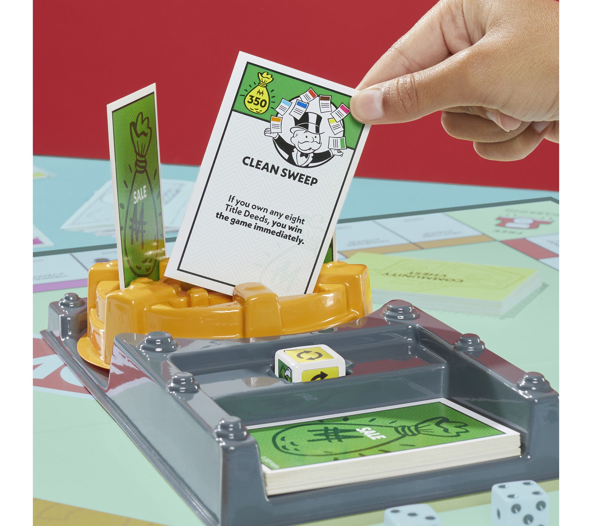 Shake up family game night and add a mischievous twist to the classic Monopoly experience with this dynamic board game expansion set! Jump into the action as Free Parking becomes a jackpot, every space is up for grabs, and Jail transforms into the most sought-after spot, making playtime shorter and bursting with surprises for everyone around the table. From Hasbro.