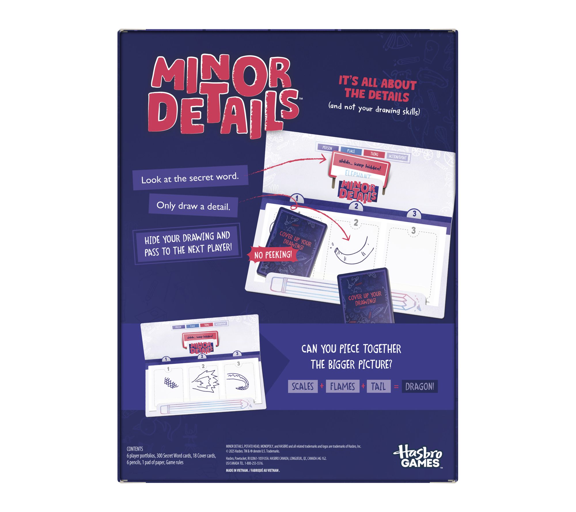 Get everyone laughing with this hilarious party board game where drawing skills don't matter -- just your attention to detail! Take turns sketching clues, passing your work, and trying to guess the Secret Word from a mash-up of memorable, quirky details. Fast, unpredictable, and big on laughs, this travel-friendly drawing game is a perfect pick for game nights, vacations, and lively gatherings. From Hasbro.