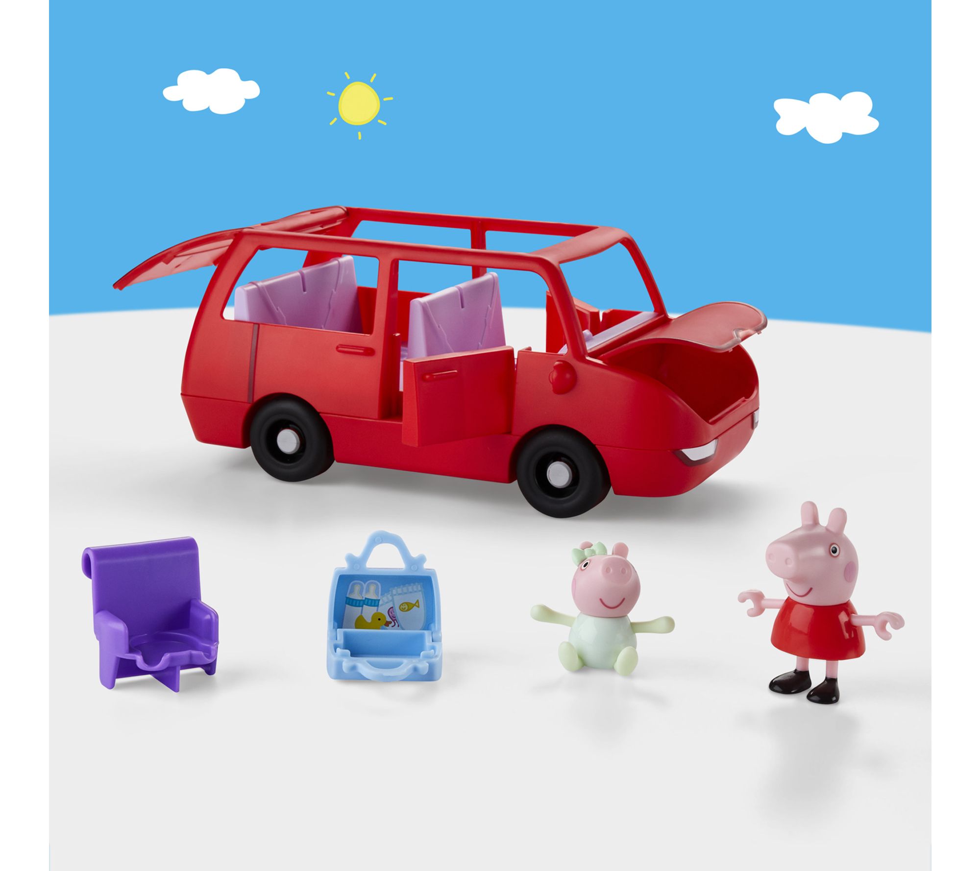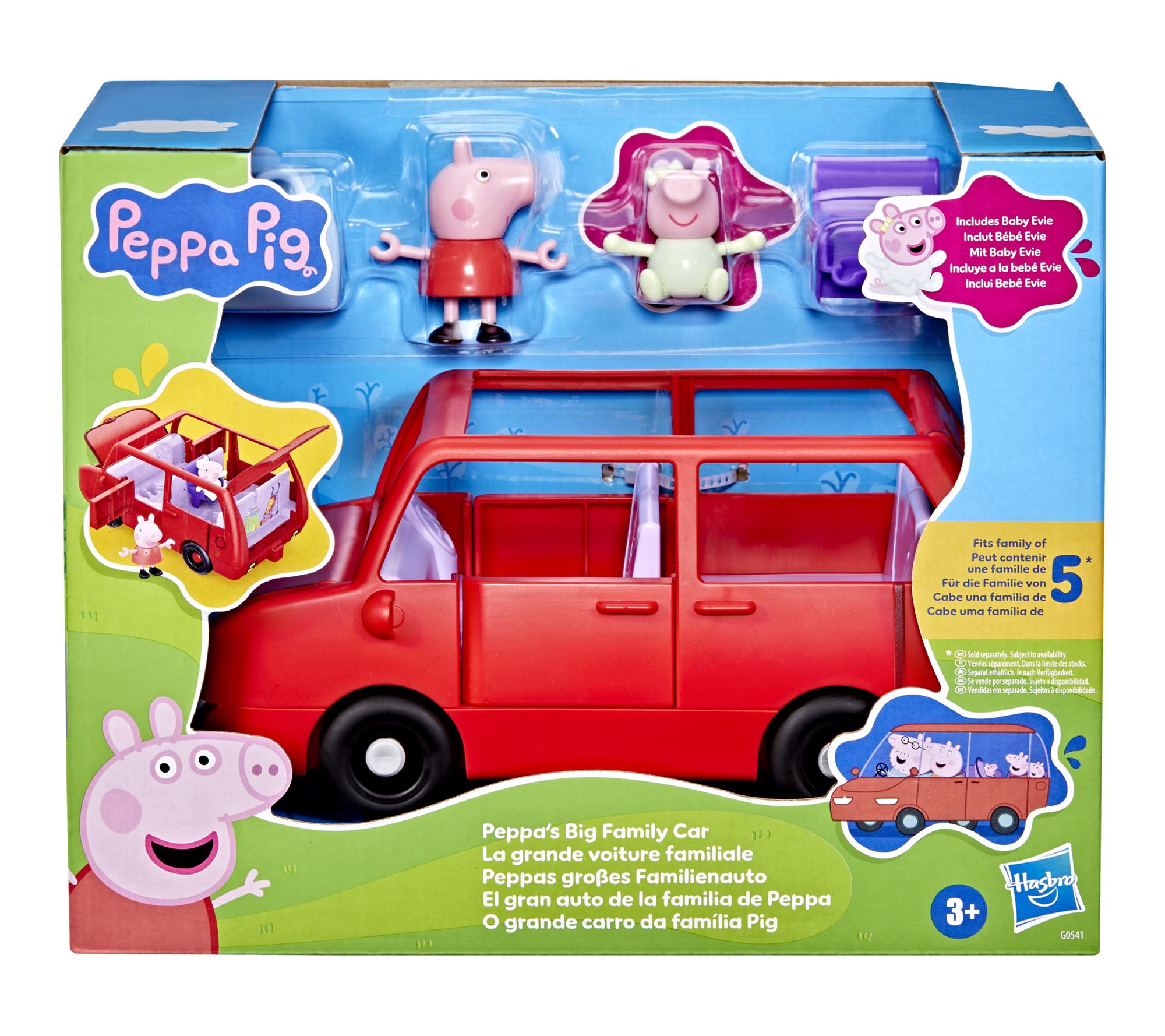 Make every playtime a road trip with this Peppa Pig Big Family Car playset, where little ones can imagine family adventures packed with surprises, from loading the suitcase in the trunk to opening the car's doors and bonnet for playful discoveries. With Peppa and Baby Evie figures included, kids will love arranging them in the spacious vehicle, inviting the whole Pig family along for fun-filled journeys around the living room or playroom. From Hasbro.
