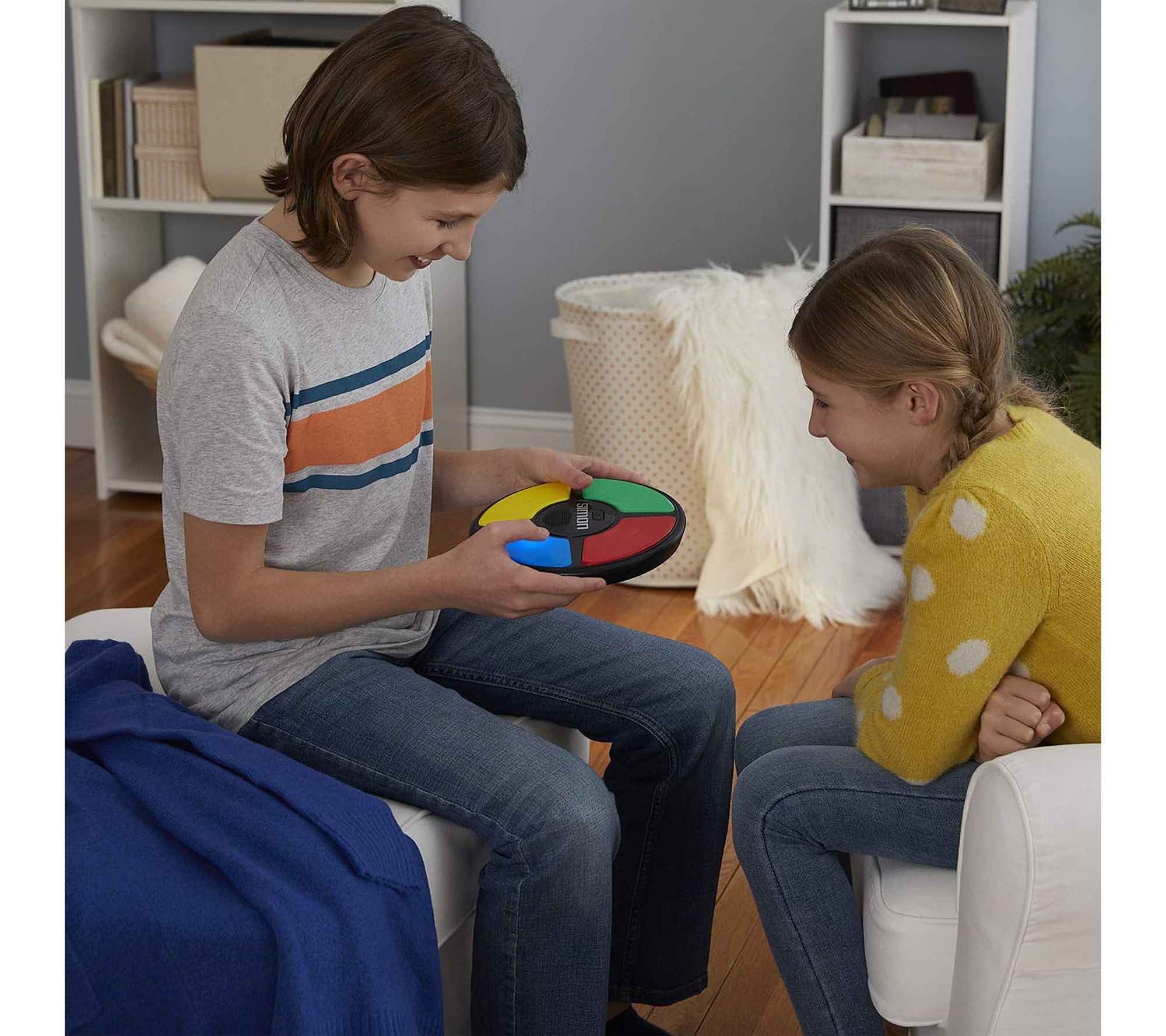 Whether it's Family Game Night, a rainy afternoon, or a road trip, classic Simon brings fast-paced fun to the table. With lights and sounds building suspense, players test their memory skills by following ever-challenging color patterns -- try to beat your own score or go head-to-head with friends for endless entertainment. From Hasbro.