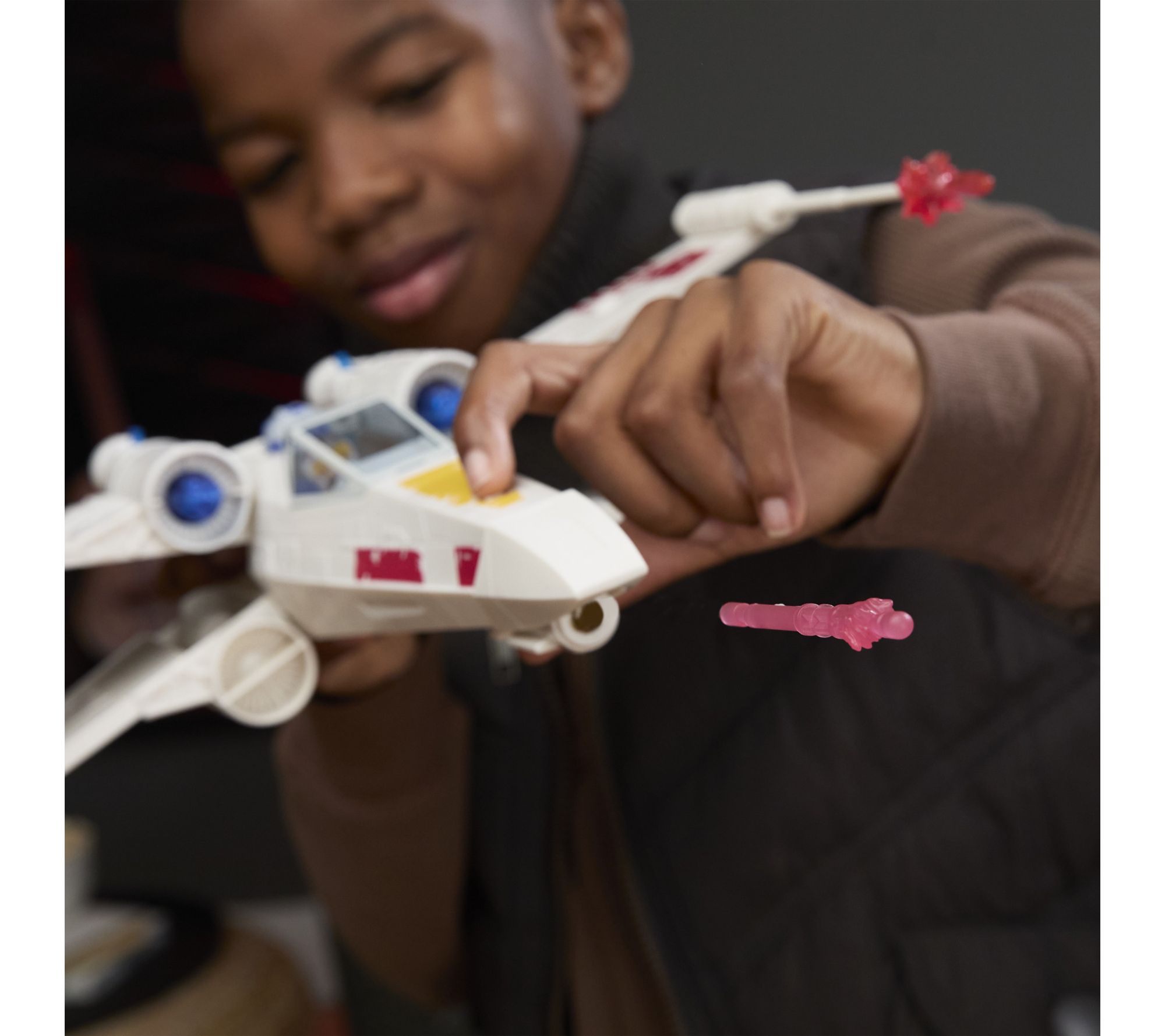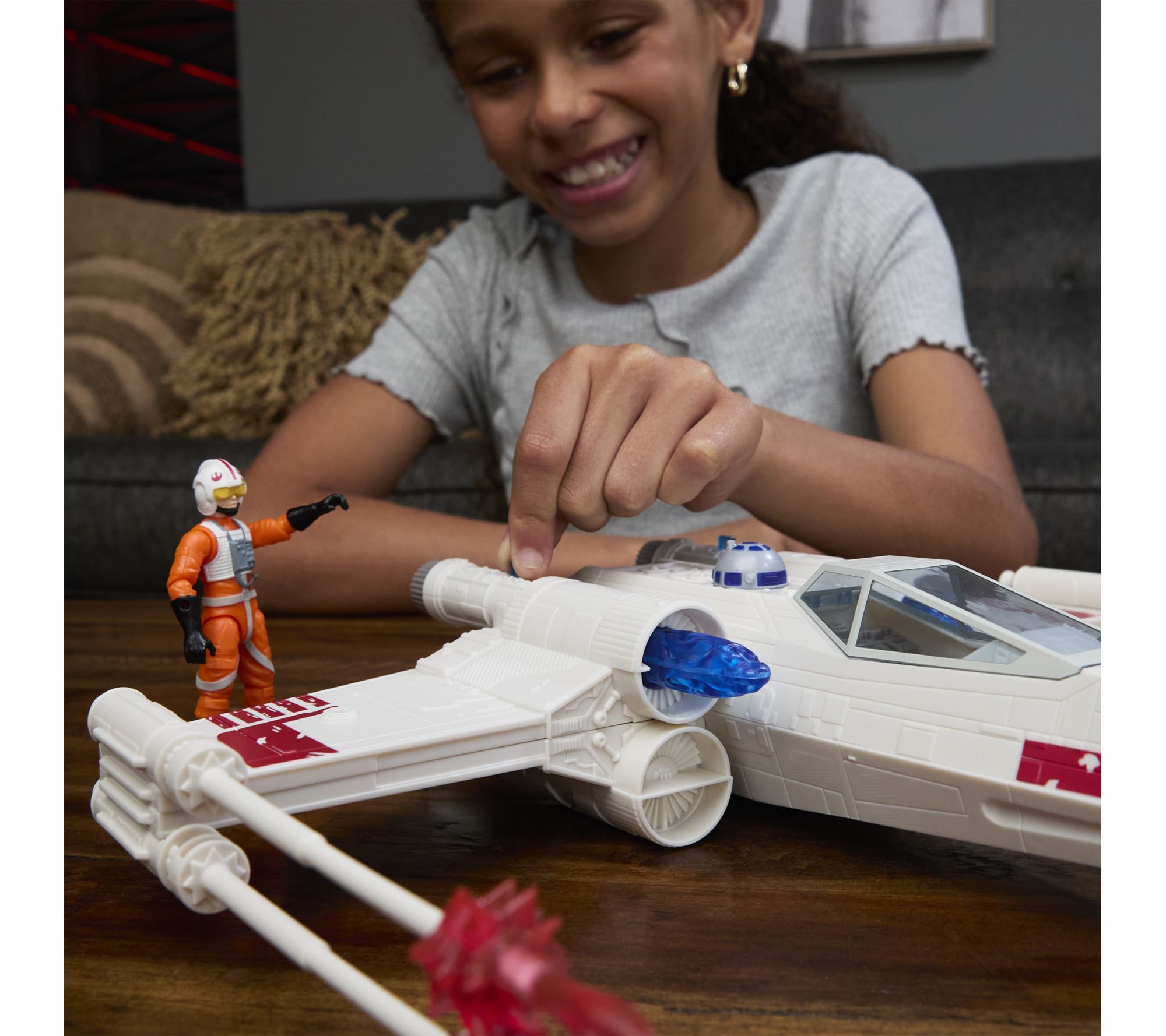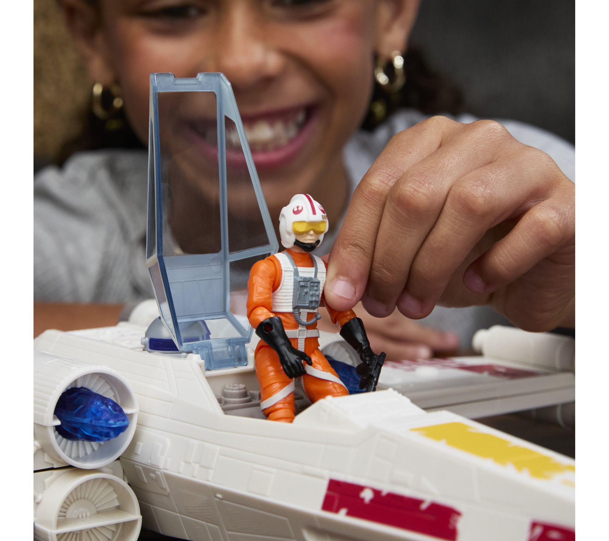Host intergalactic missions with this action-packed playset that brings legendary Star Wars scenes to life. Take command of the X-wing with Luke Skywalker in the cockpit, launch red projectiles, and reveal the Force blast effects as you battle the Empire. Let imaginations soar as fans relive epic moments or create new adventures. From Hasbro.