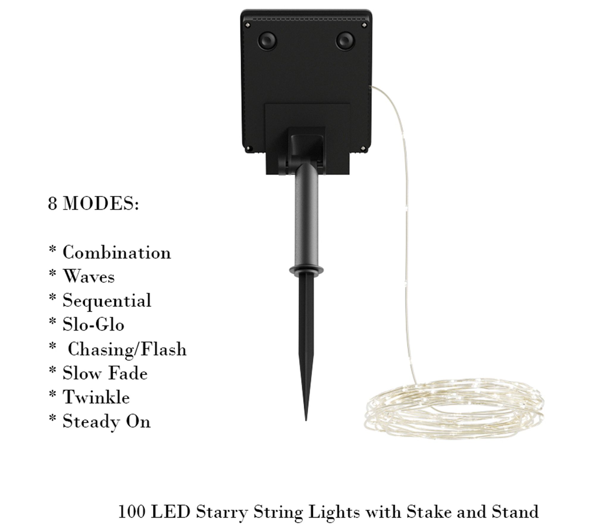 8 light modes: Combination, Waves, Sequential, Slo-Glo, Chasing/Flash, Slow Fade, Twinkle, and Steady On
