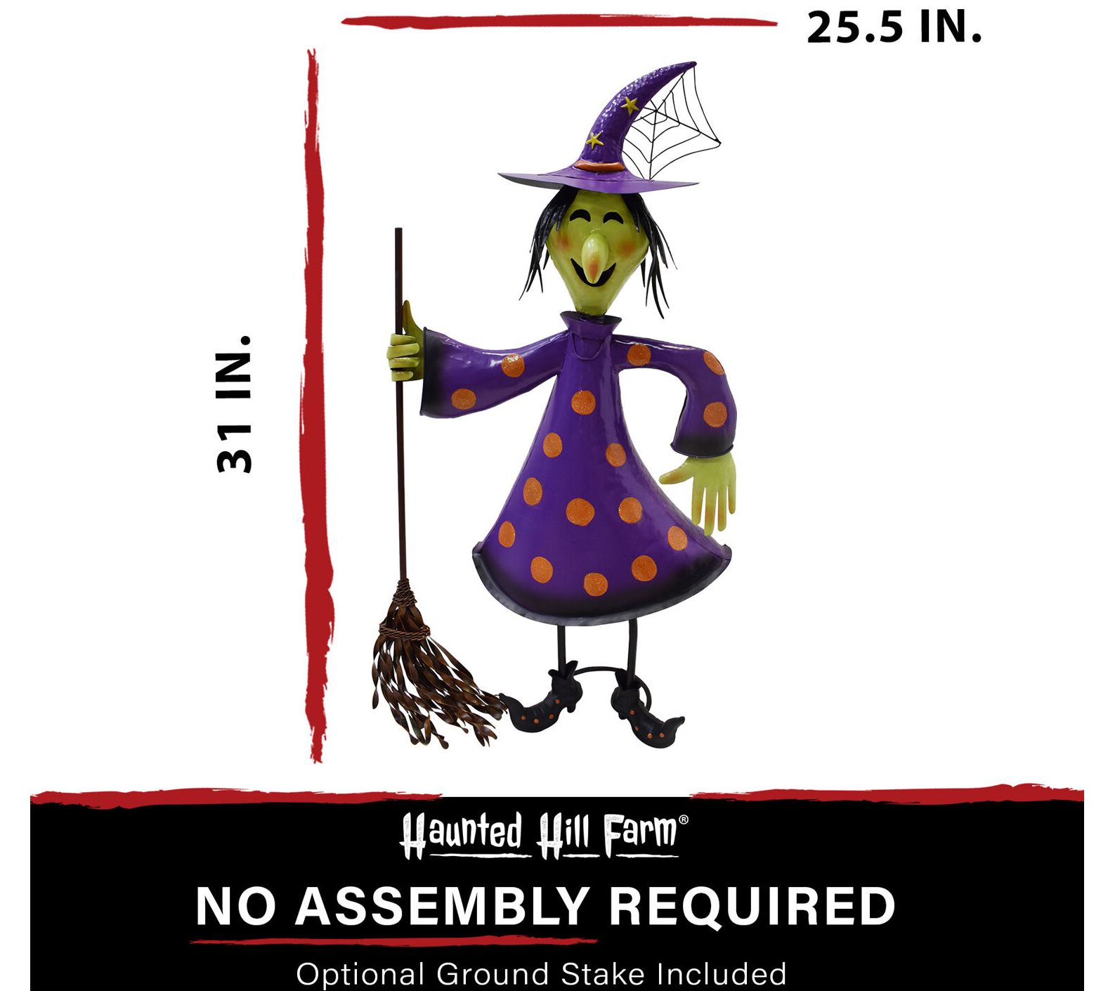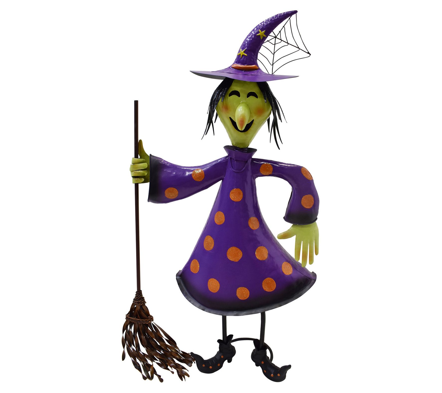 Haunted Hill Farm 31'H Iron Polka-Dot Witch Holding Broom