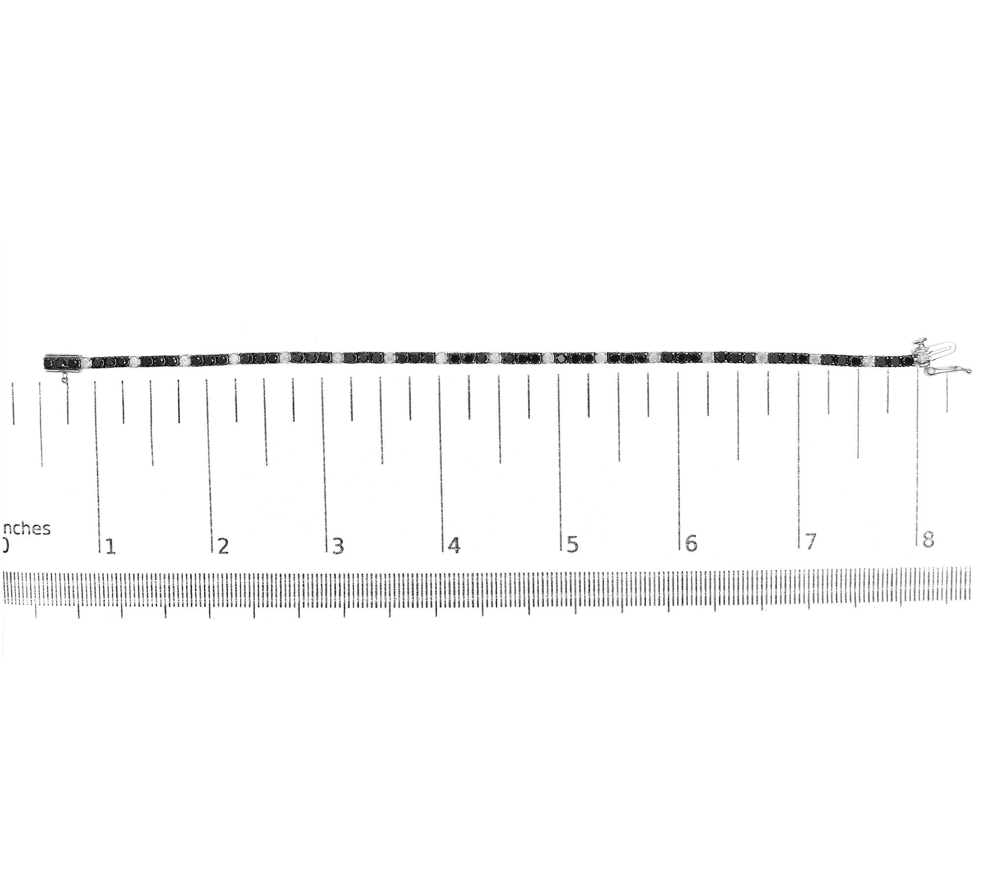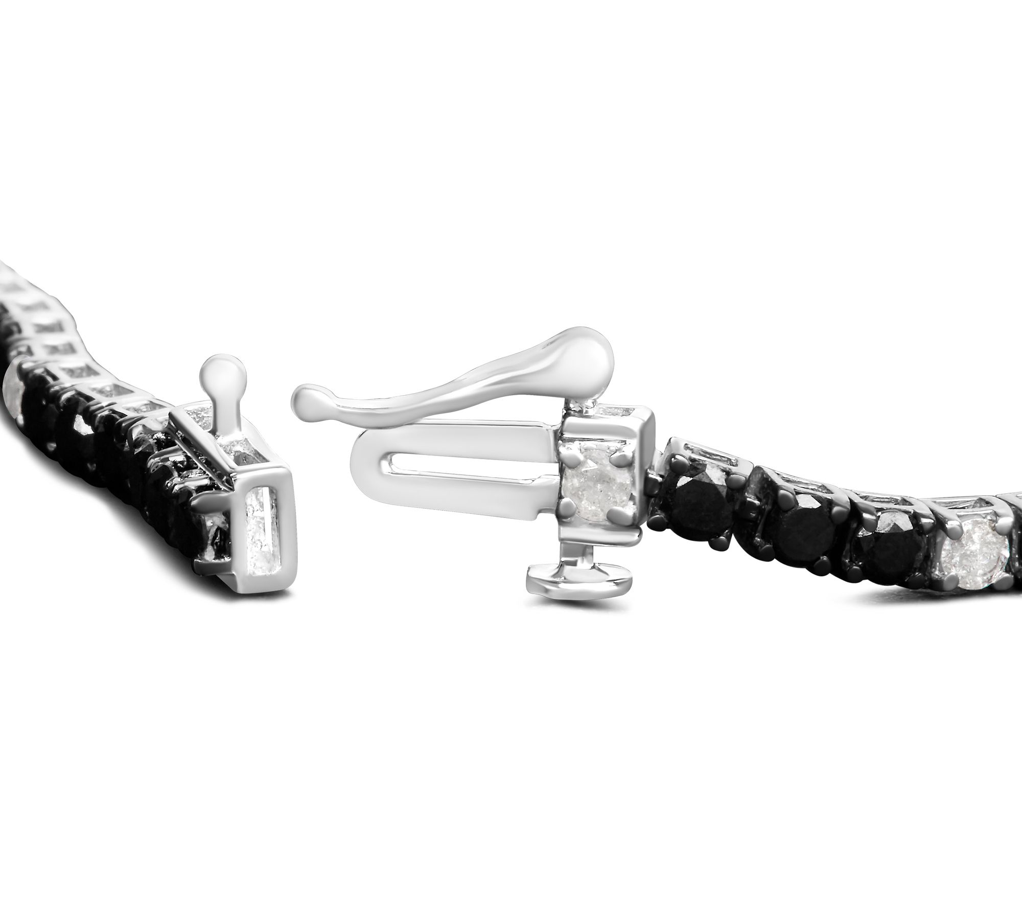 • Tennis bracelet; prong-set, round-cut black diamonds and white diamonds