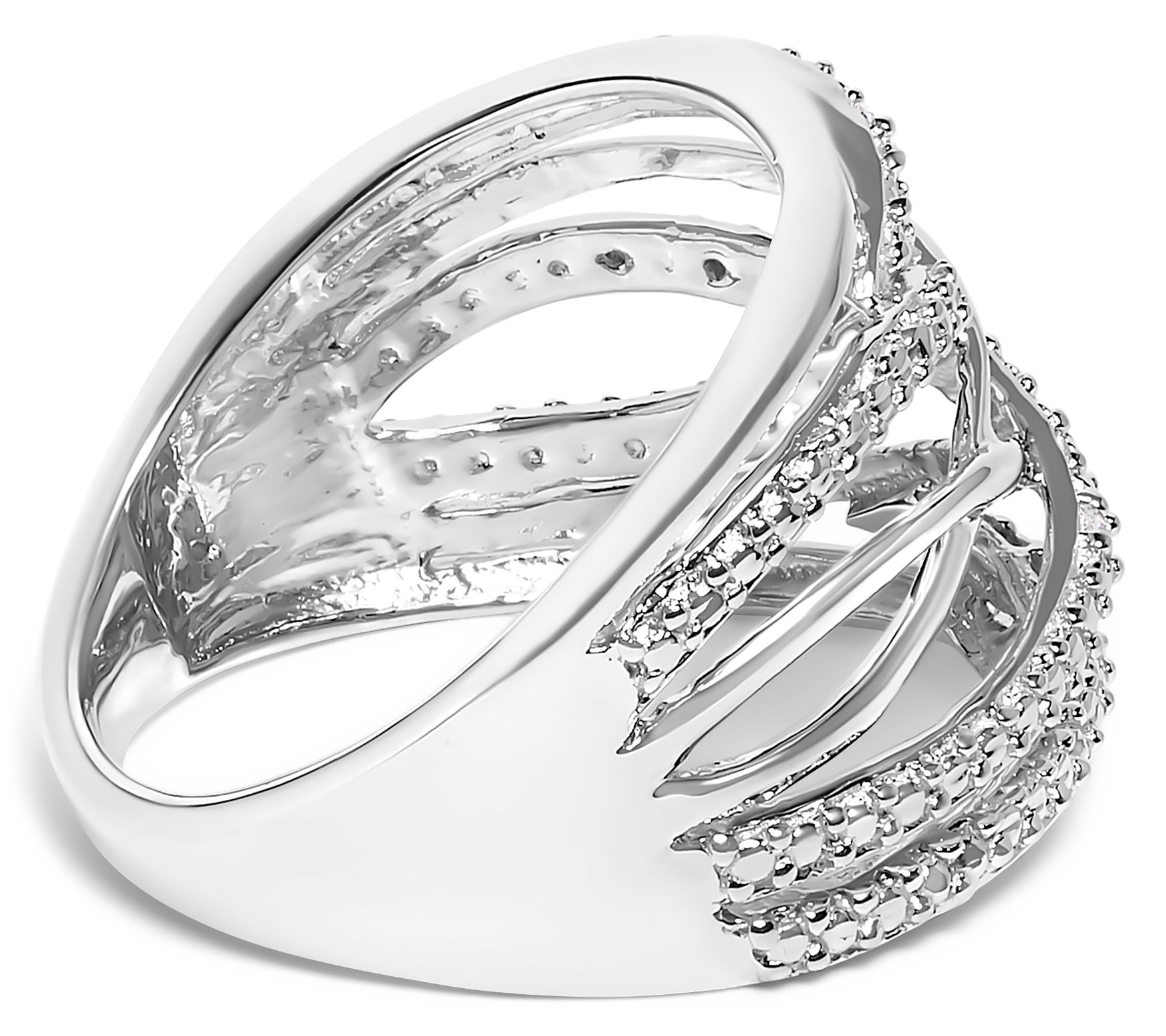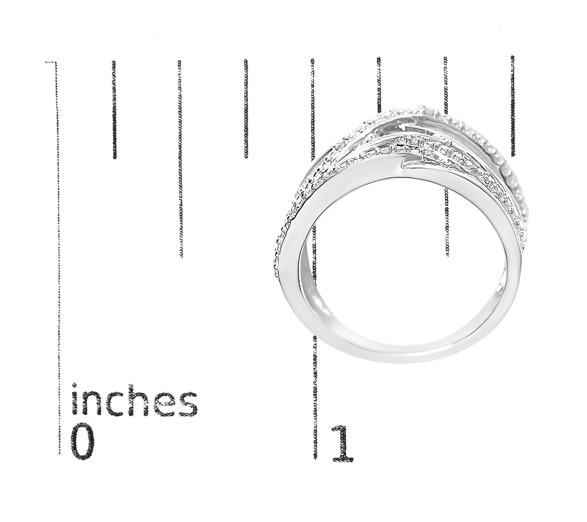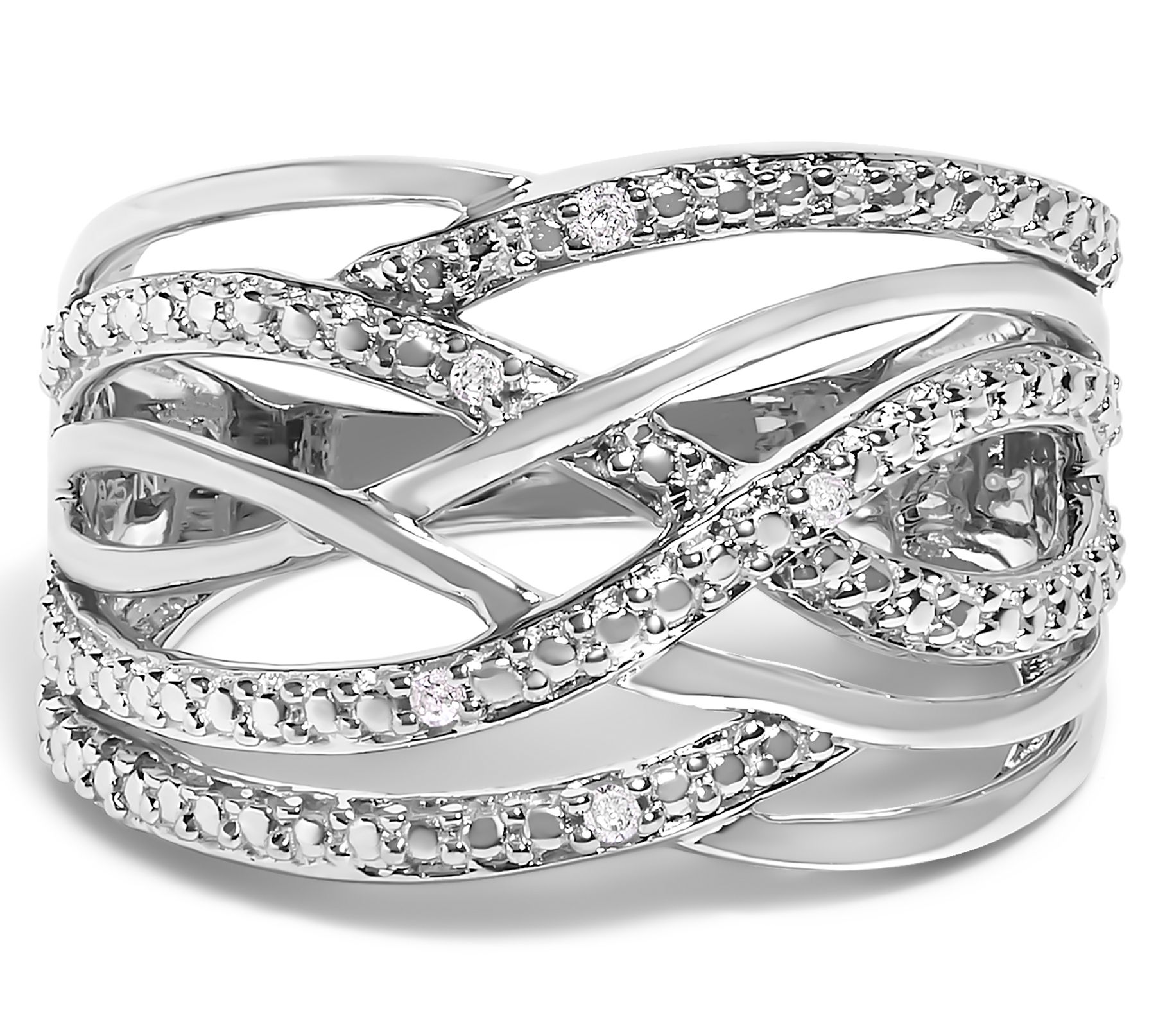 Enhance your everyday elegance with this diamond accent crossover ring. Crafted in sterling silver, it's designed to beautifully crisscross your finger with a touch of sparkle that's perfect for any occasion. Pair it with your favorite accessories to complete your look. From Haus of Brilliance.
