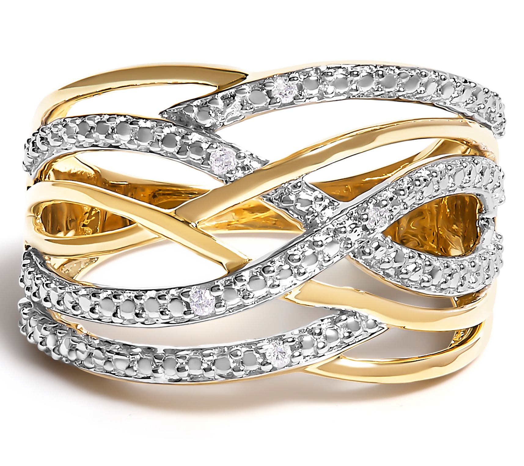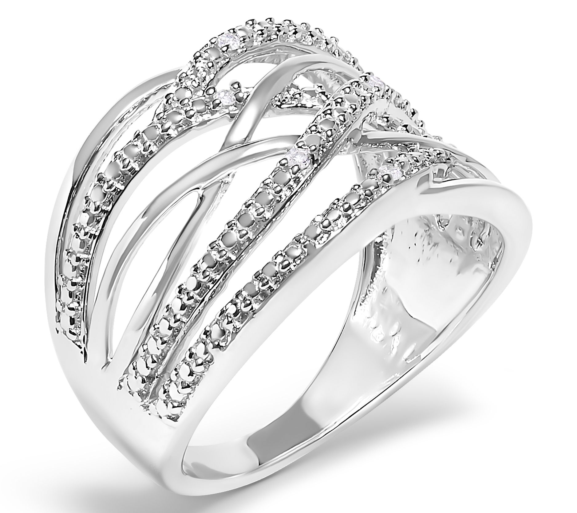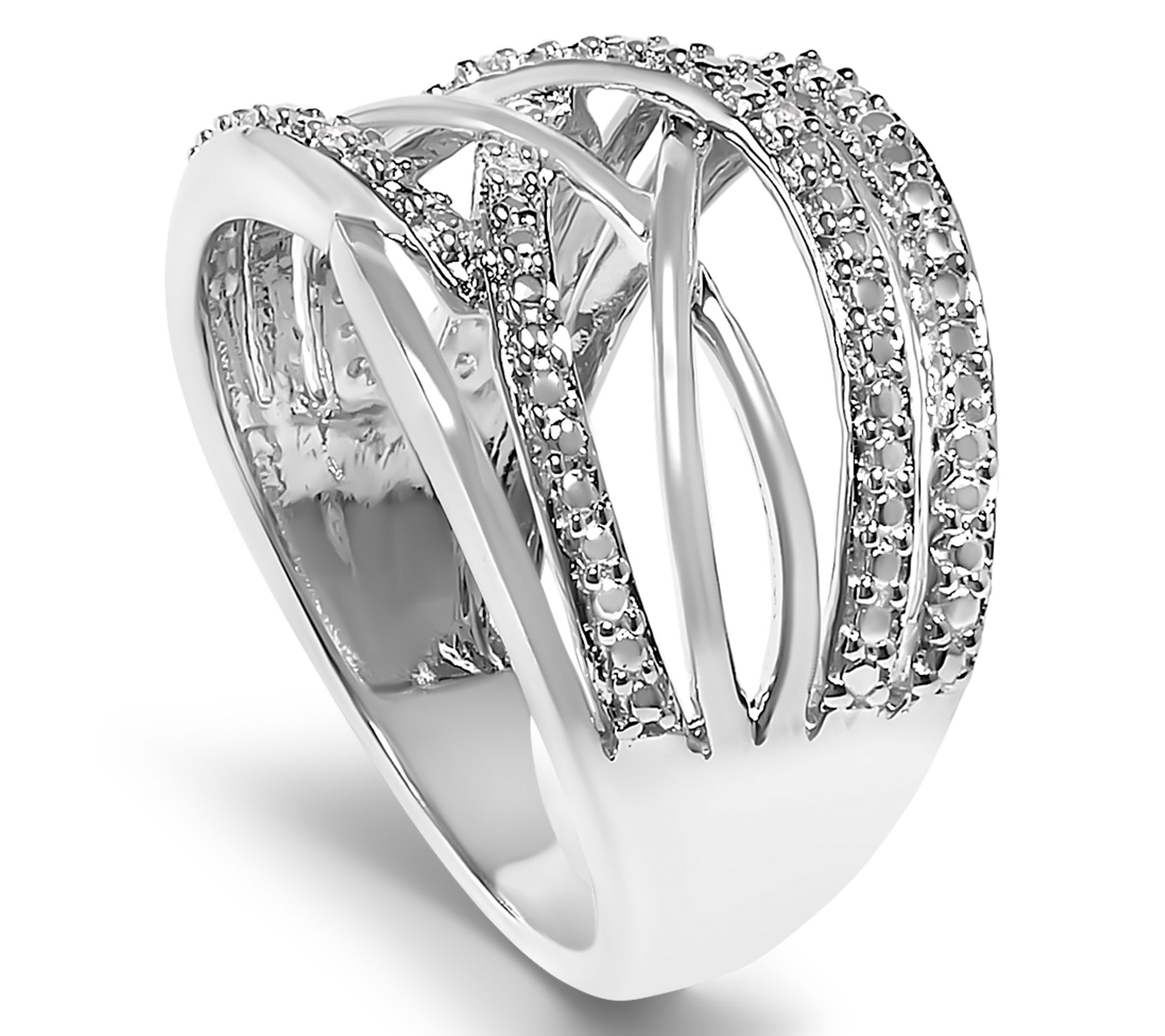 Enhance your everyday elegance with this diamond accent crossover ring. Crafted in sterling silver, it's designed to beautifully crisscross your finger with a touch of sparkle that's perfect for any occasion. Pair it with your favorite accessories to complete your look. From Haus of Brilliance.