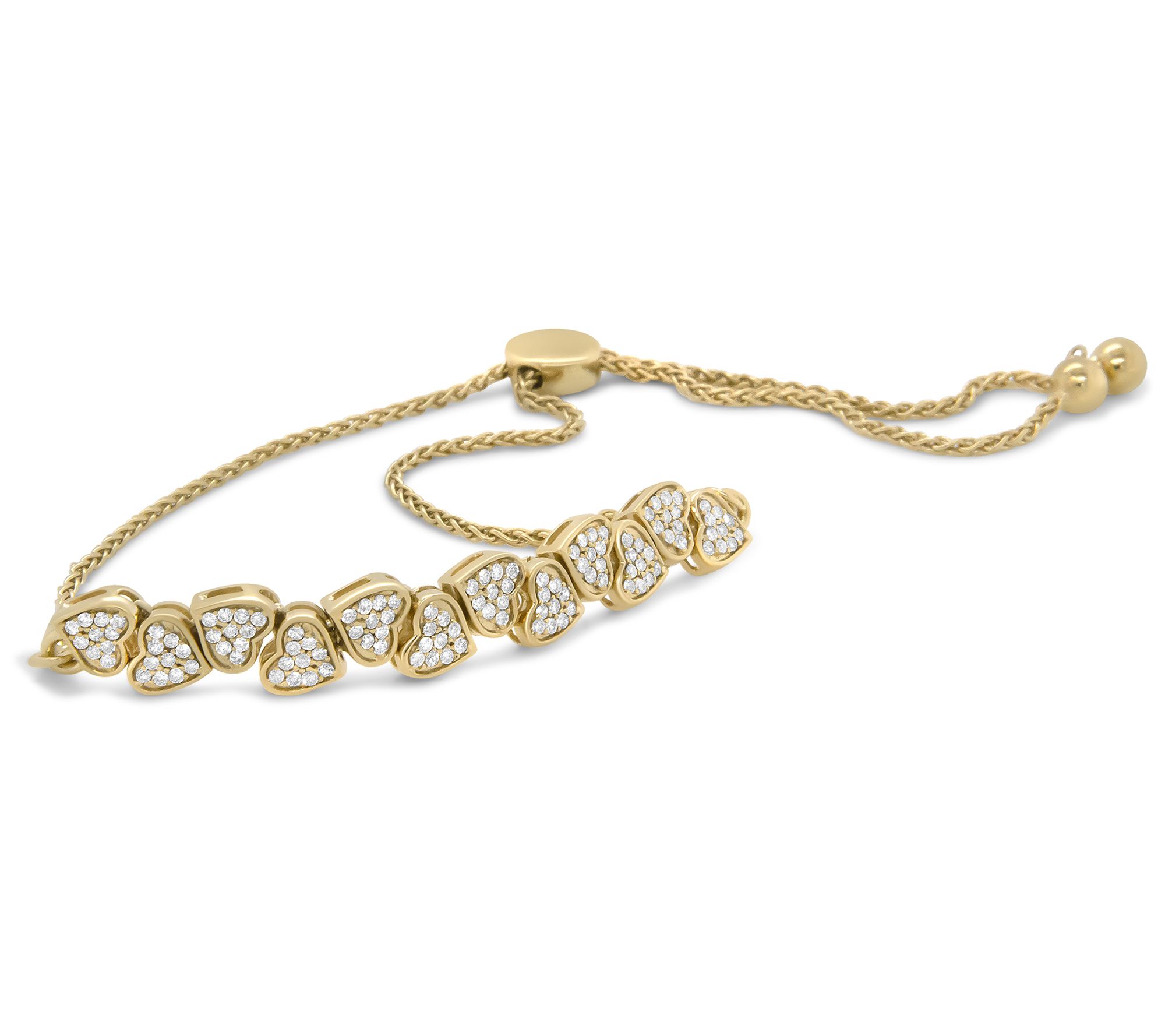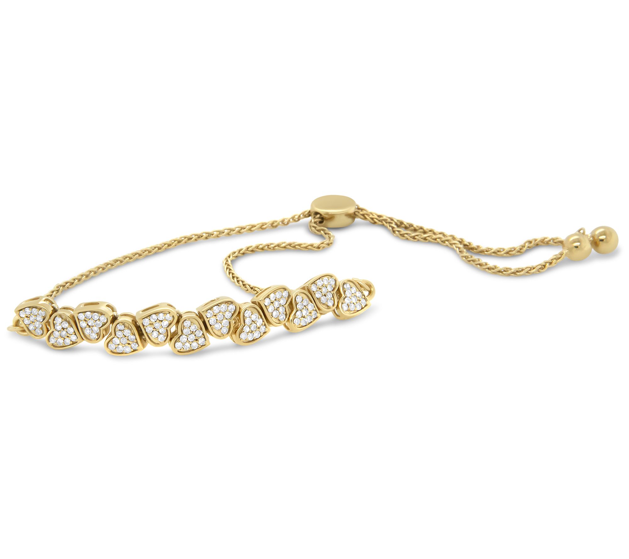 Add a touch of elegance to your wrist with the Haus of Brilliance Diamond Adjustable Bracelet. Crafted in 14K gold-plated sterling silver, this exquisite piece features a dazzling display of round-cut diamonds in a pave setting, designed to catch the light from every angle. Its adjustable sliding bead closure ensures a perfect fit for any wrist size, making it a versatile addition to any jewelry collection. From Haus of Brilliance.