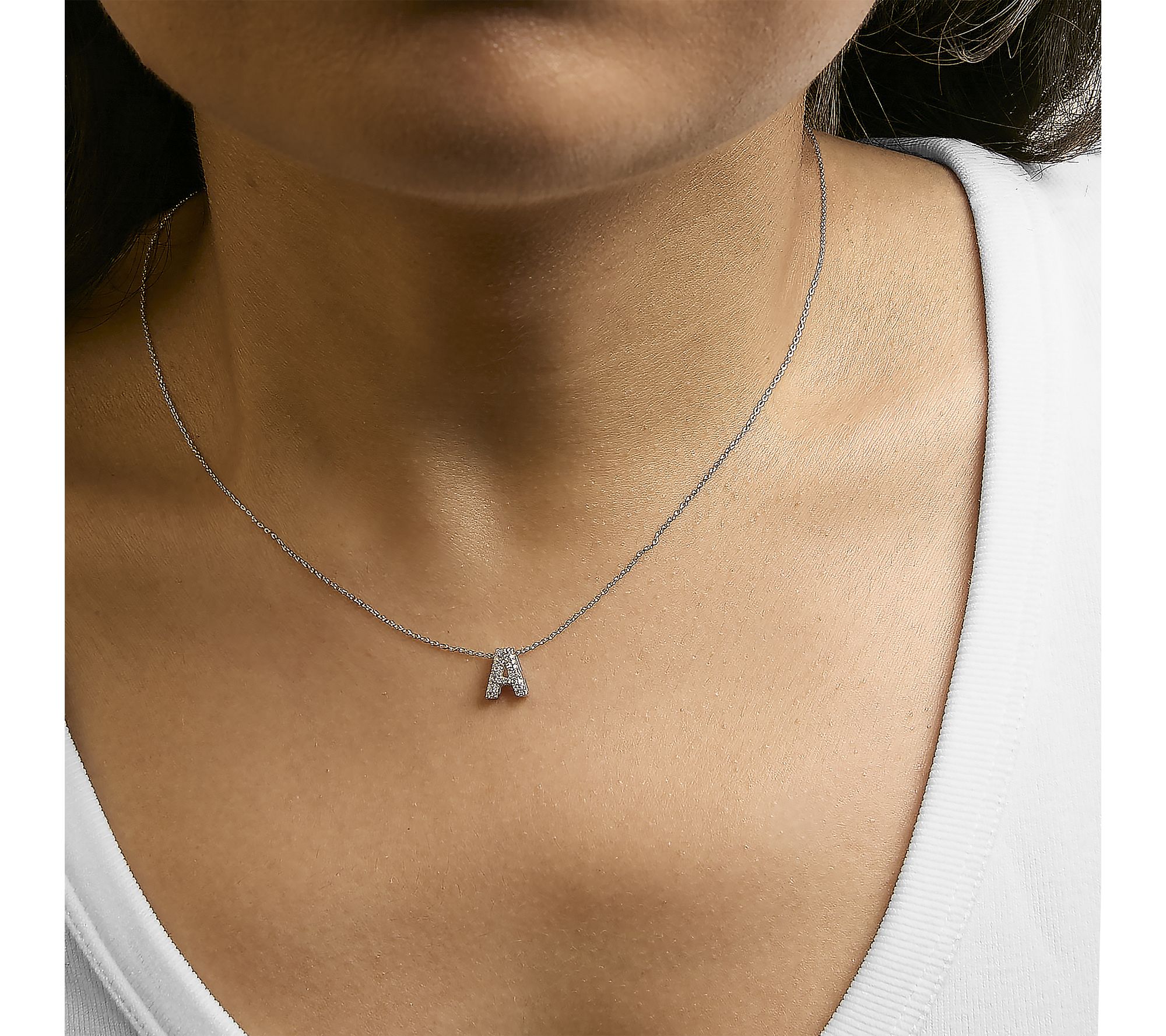 Celebrate someone special or express your own personal style with this initial necklace, gleaming with shimmering diamond accents. Effortlessly chic, it transitions from work to weekend, adding a sparkling, meaningful accent to any look. From Haus of Brilliance.