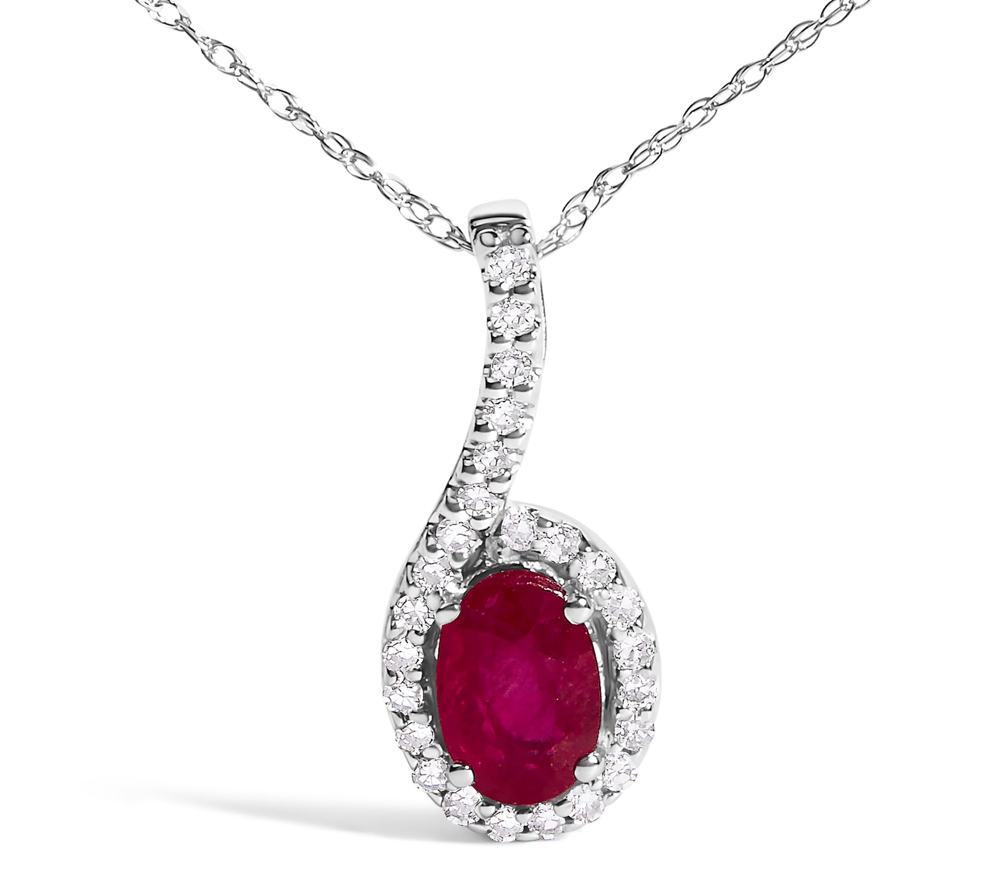 Haus of Brilliance Ruby & Diamond Pendant w/ Chain, 10K Gold