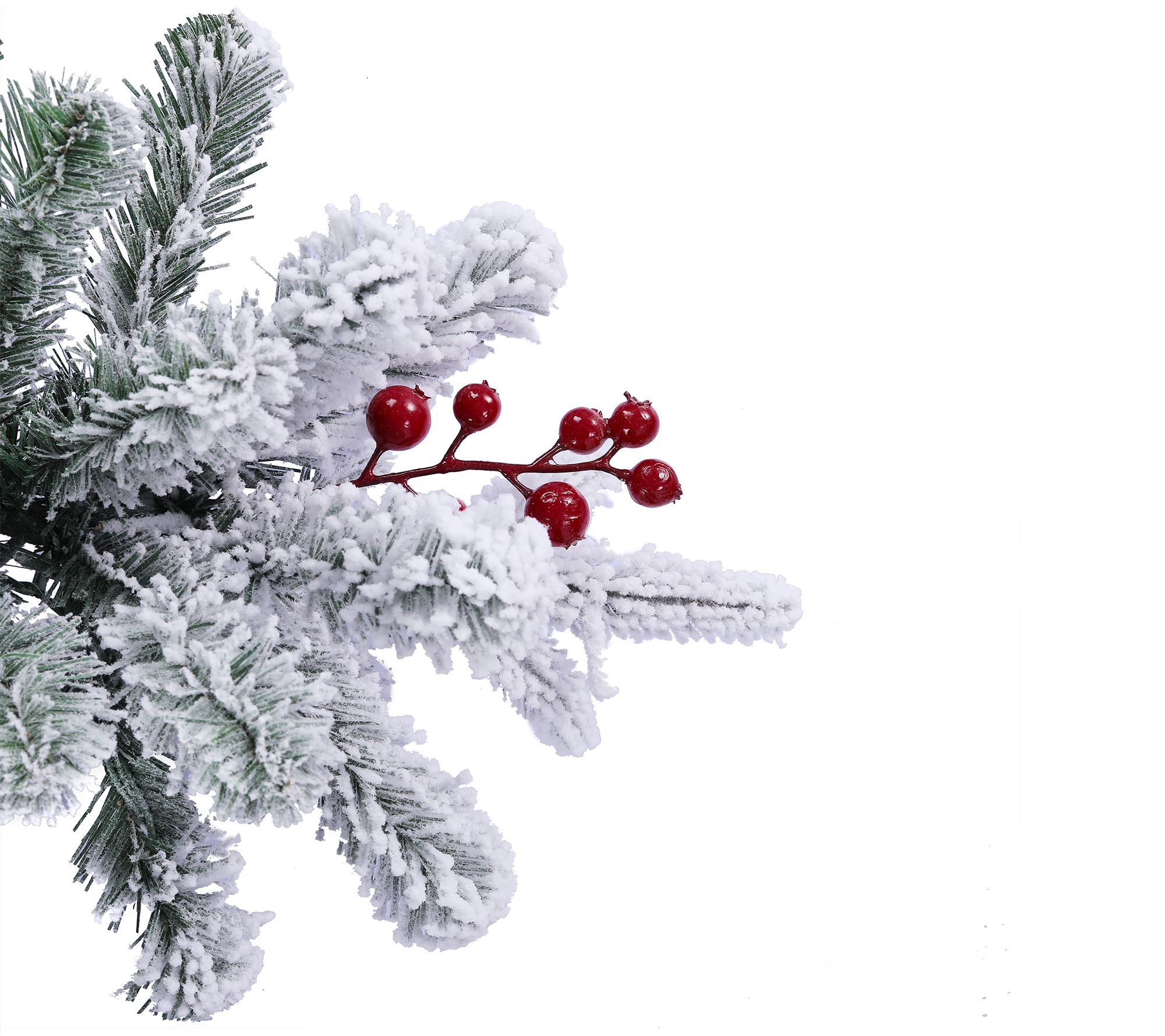 • Flocked fir branches, 34 red berry clusters, folding metal stand, fire-retardant materials