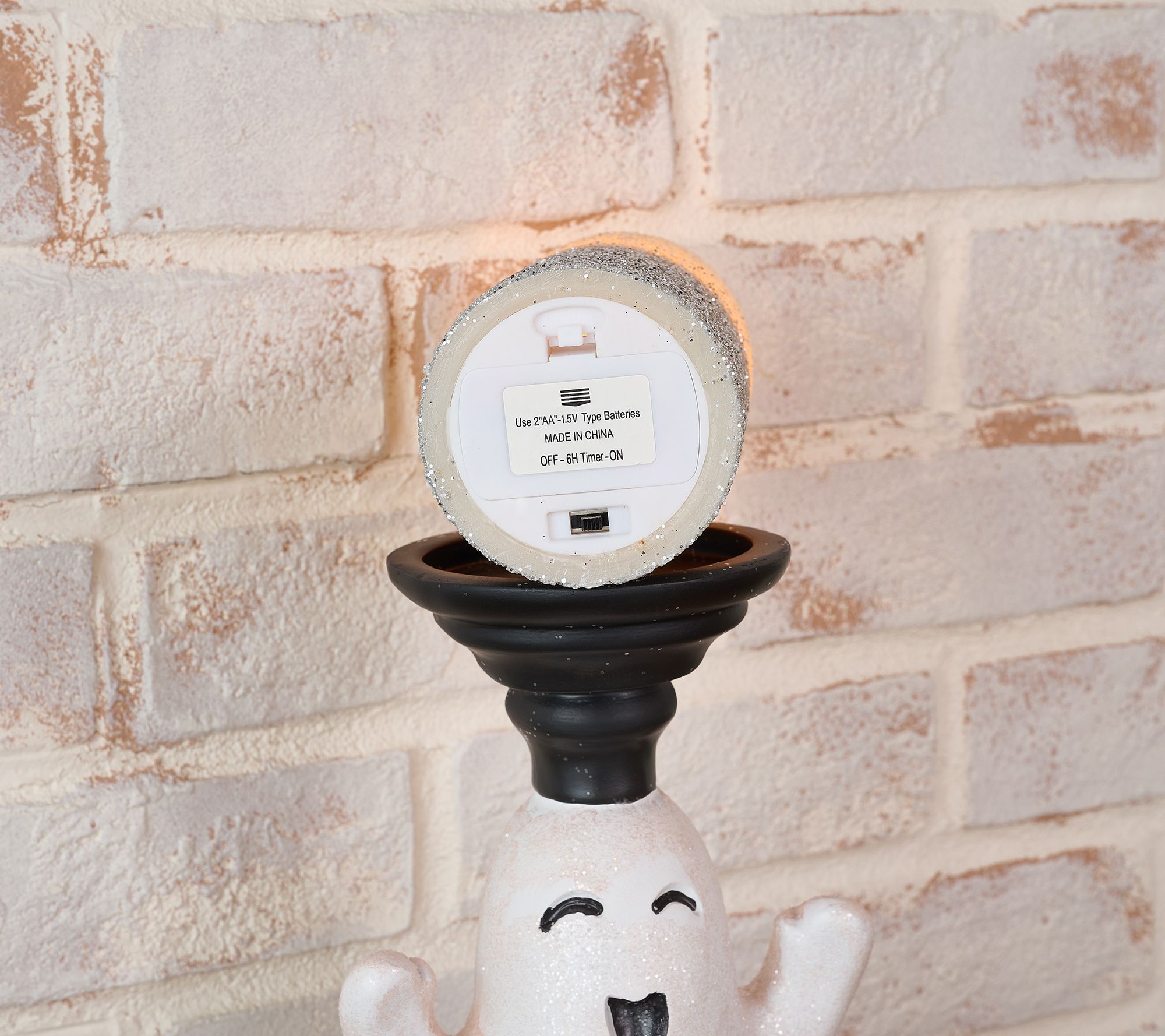 Usher in the Halloween season with this whimsical candle holder. Each beloved character holds a glittery flameless pillar candle, bringing bright sparkle to your seasonal decor. From Hay & Harvest.