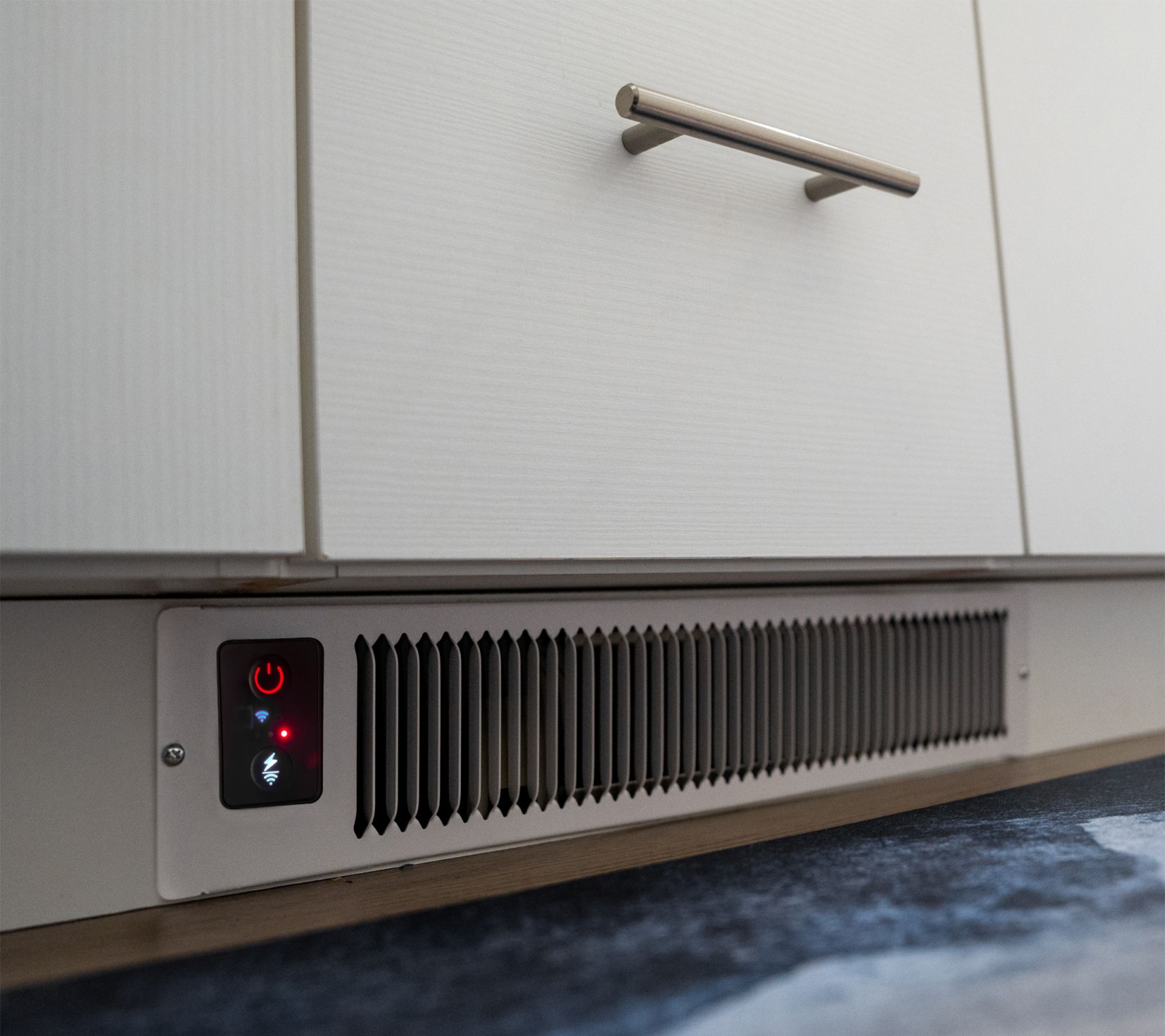 Transform chilly mornings in your kitchen or bathroom with this electric kick space heater, designed to tuck neatly under cabinets while delivering powerful warmth right where you need it. Take control using your phone -- set custom schedules, adjust power settings, and monitor room temperature with effortless Wi-Fi and Bluetooth connectivity. A sleek design and dual grill covers blend seamlessly into your space, making cozy comfort smarter and easier. From Heat Storm.