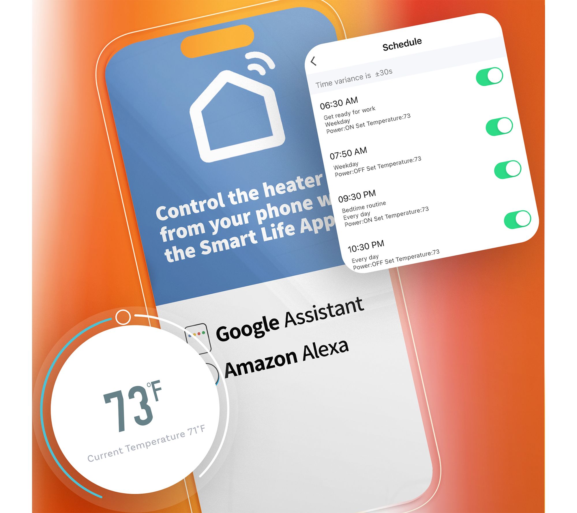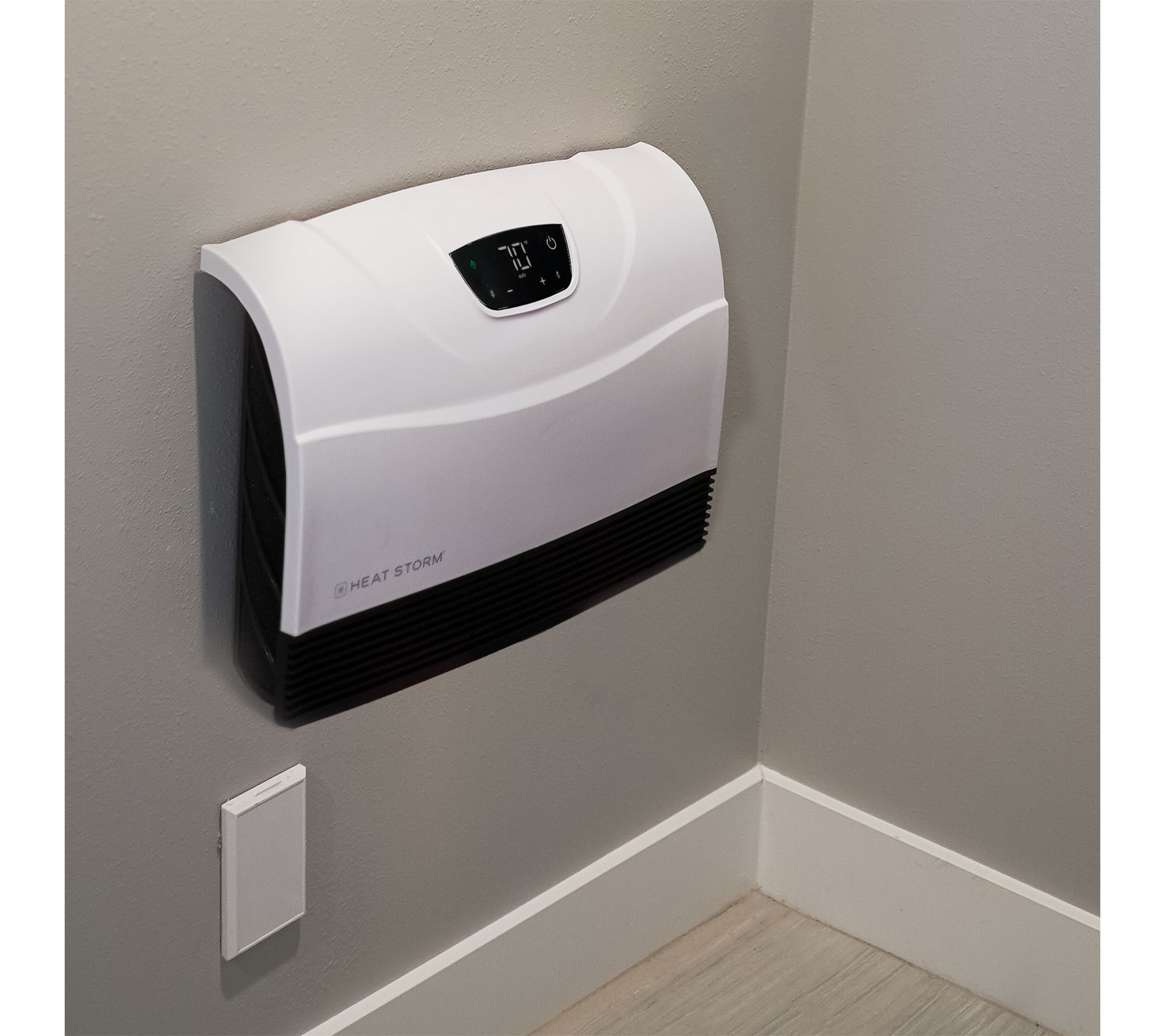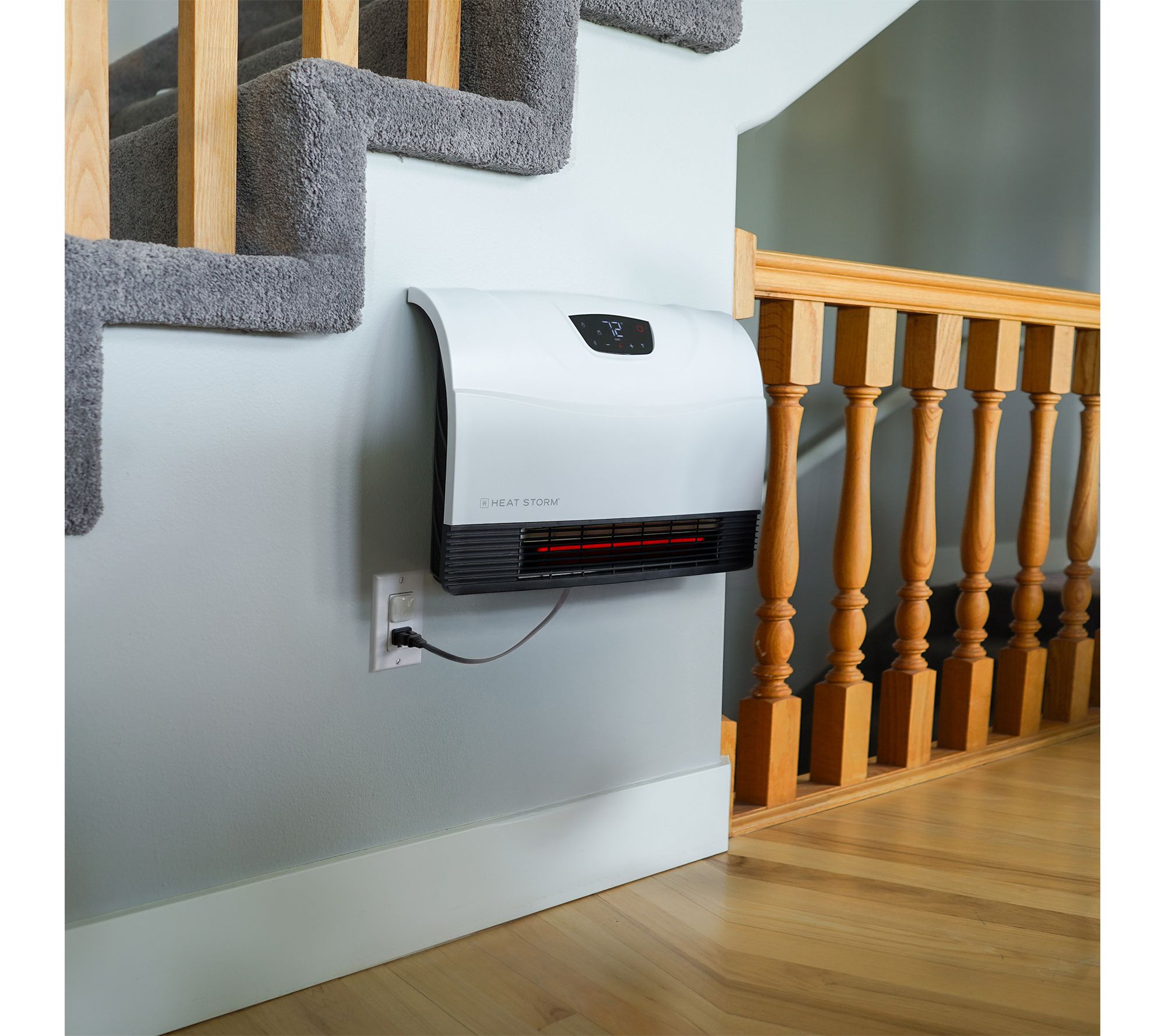 Create a cozy retreat in your bedroom, office, or bathroom with this Wi-Fi enabled infrared heater, designed to save floor space while delivering customizable warmth. Easily control the settings and heating schedules from your phone or the remote, and enjoy peace of mind with child lock mode and a cool-to-the-touch grill for added safety. Three power modes and a dimmable display let you tailor comfort for any moment. From Heat Storm.